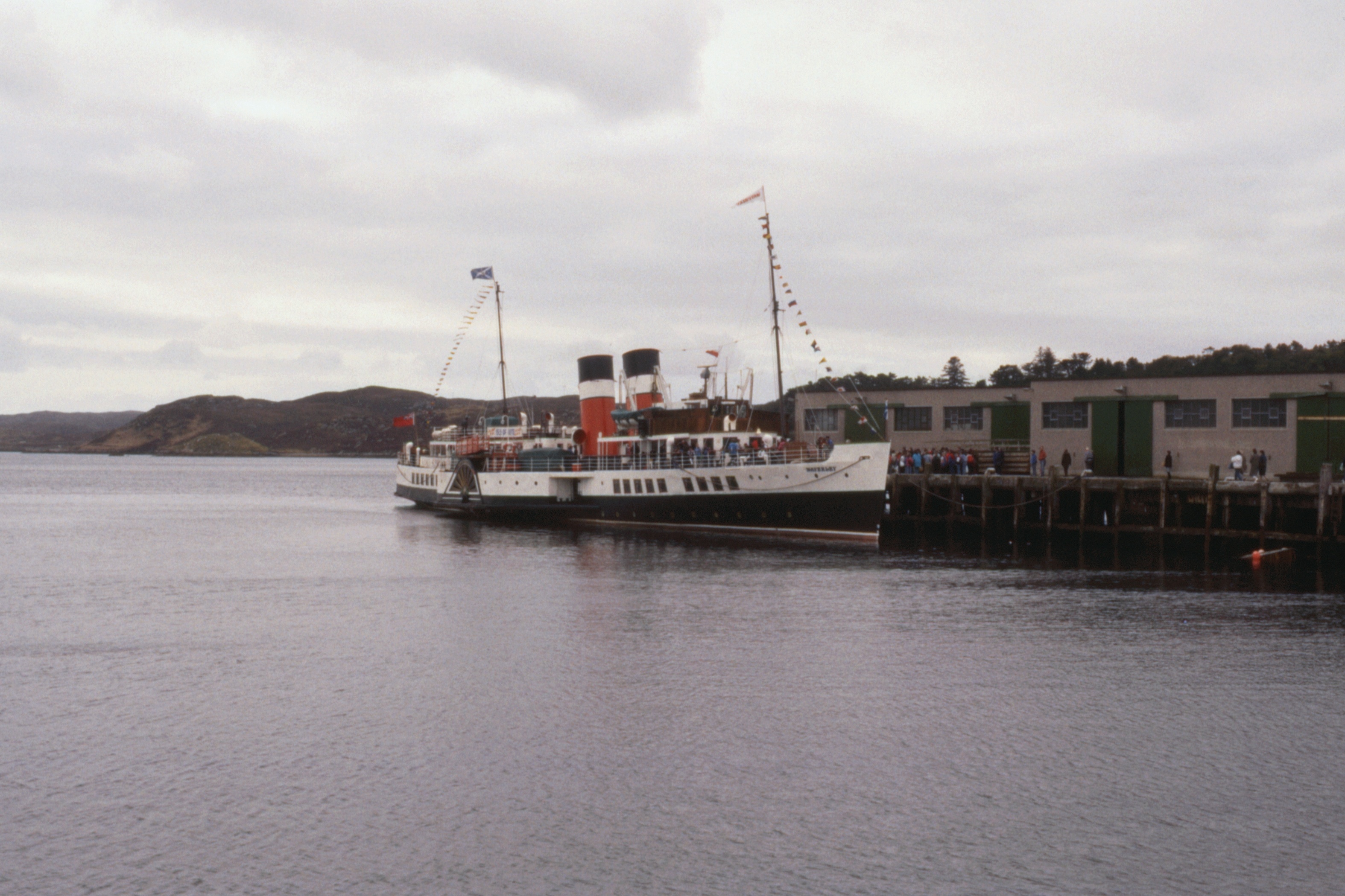 Waverley at Tobermory Pier, from the esplanade | PS Waverley at the pier at Tobermory |