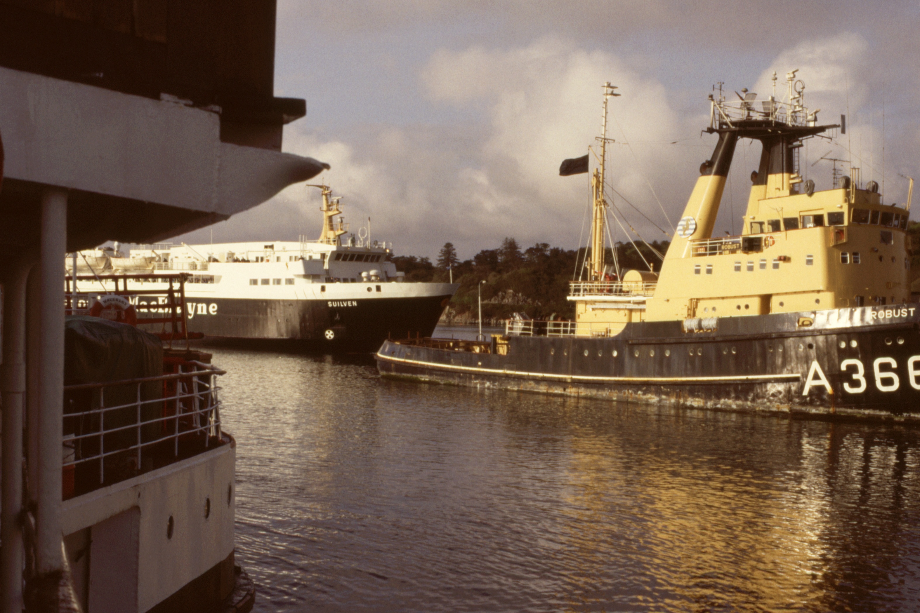 Bits of Waverley, Suilven and A366 "Robust" | Suilven turning in Stornoway Bay | Leaving Stornoway aboard Waverley, fleet auxiliary A366 "Robust" at the pier |