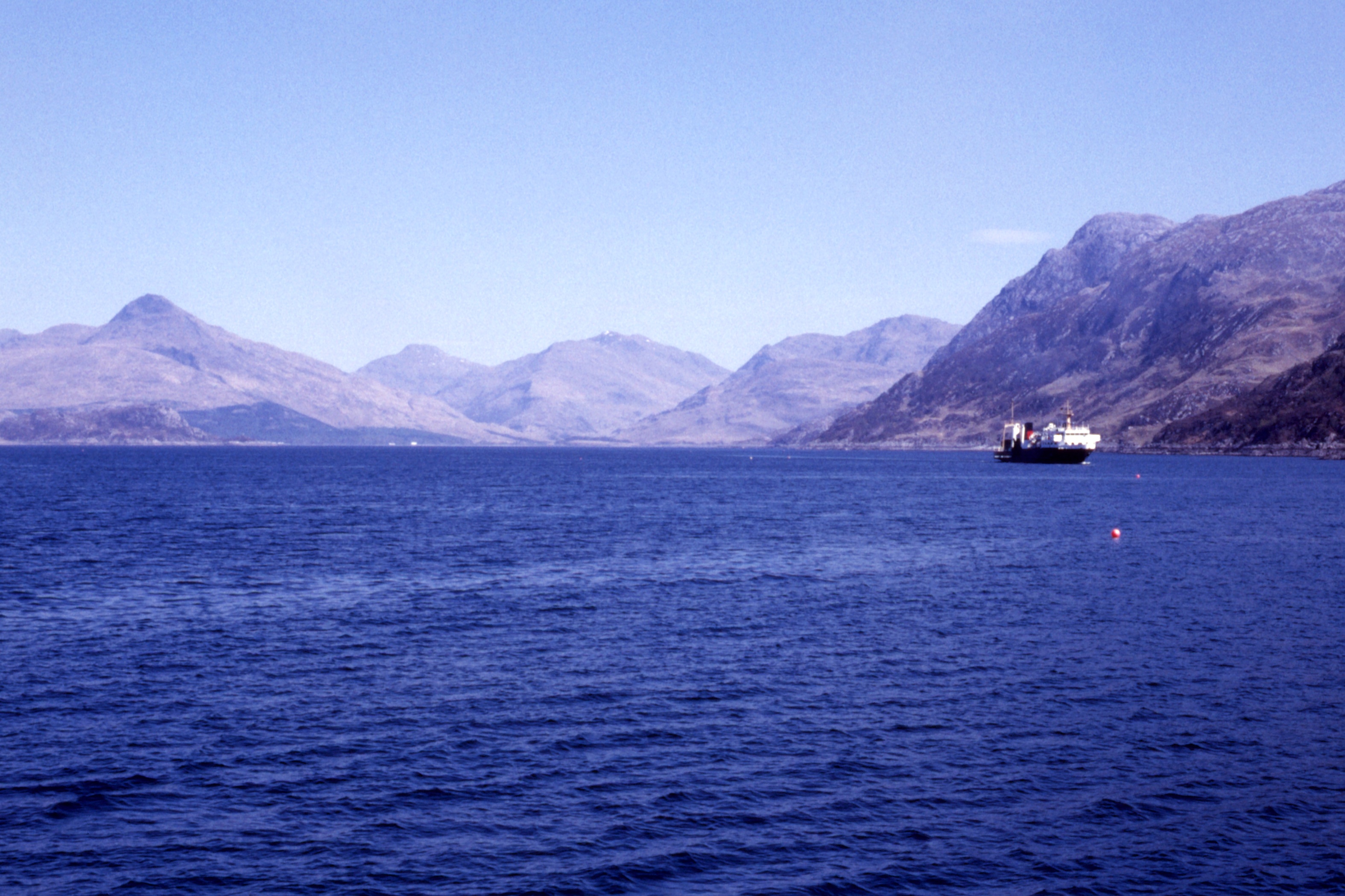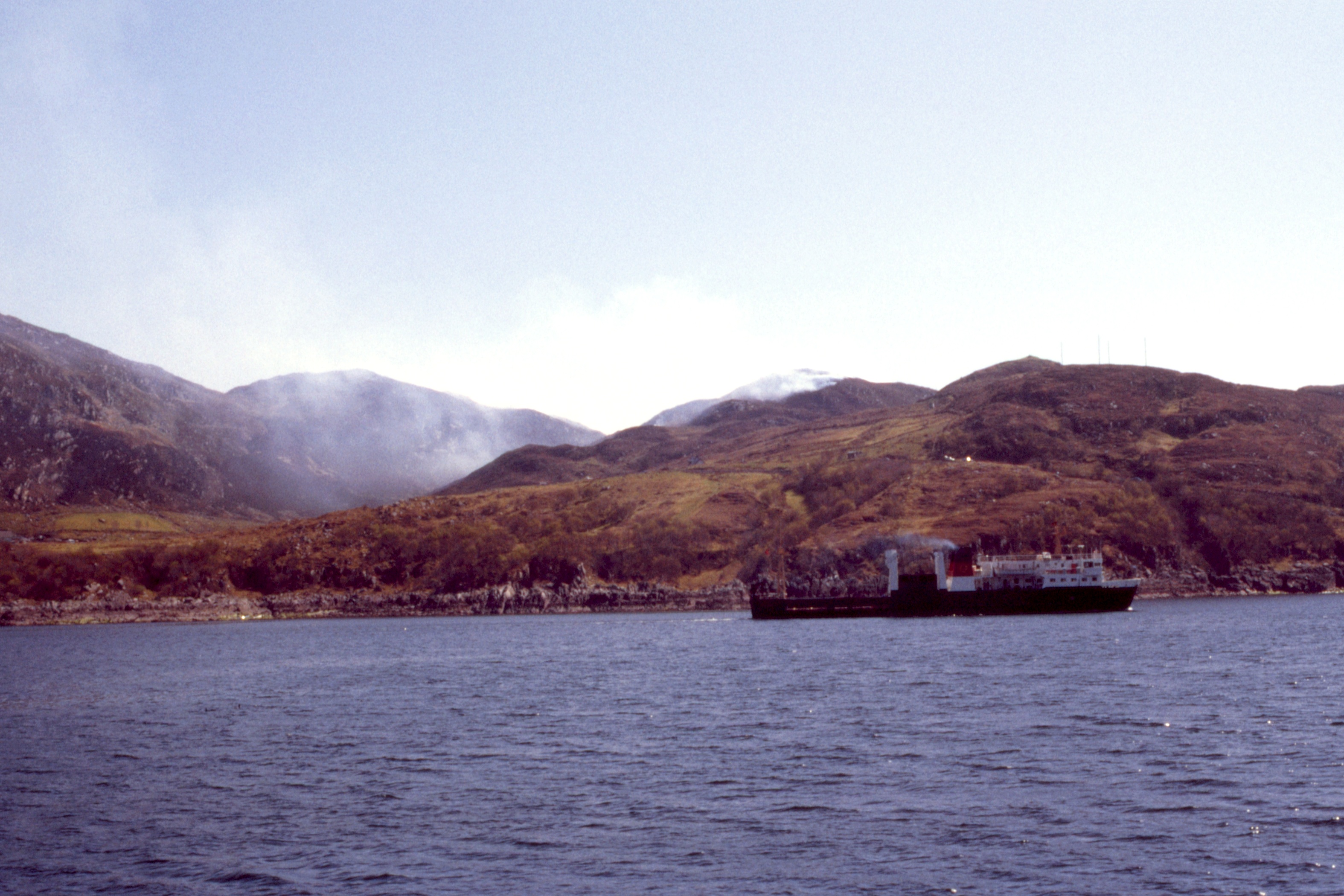 Mouth of Loch Nevis, Knoydart left and centre, mv Pioneer on the right |