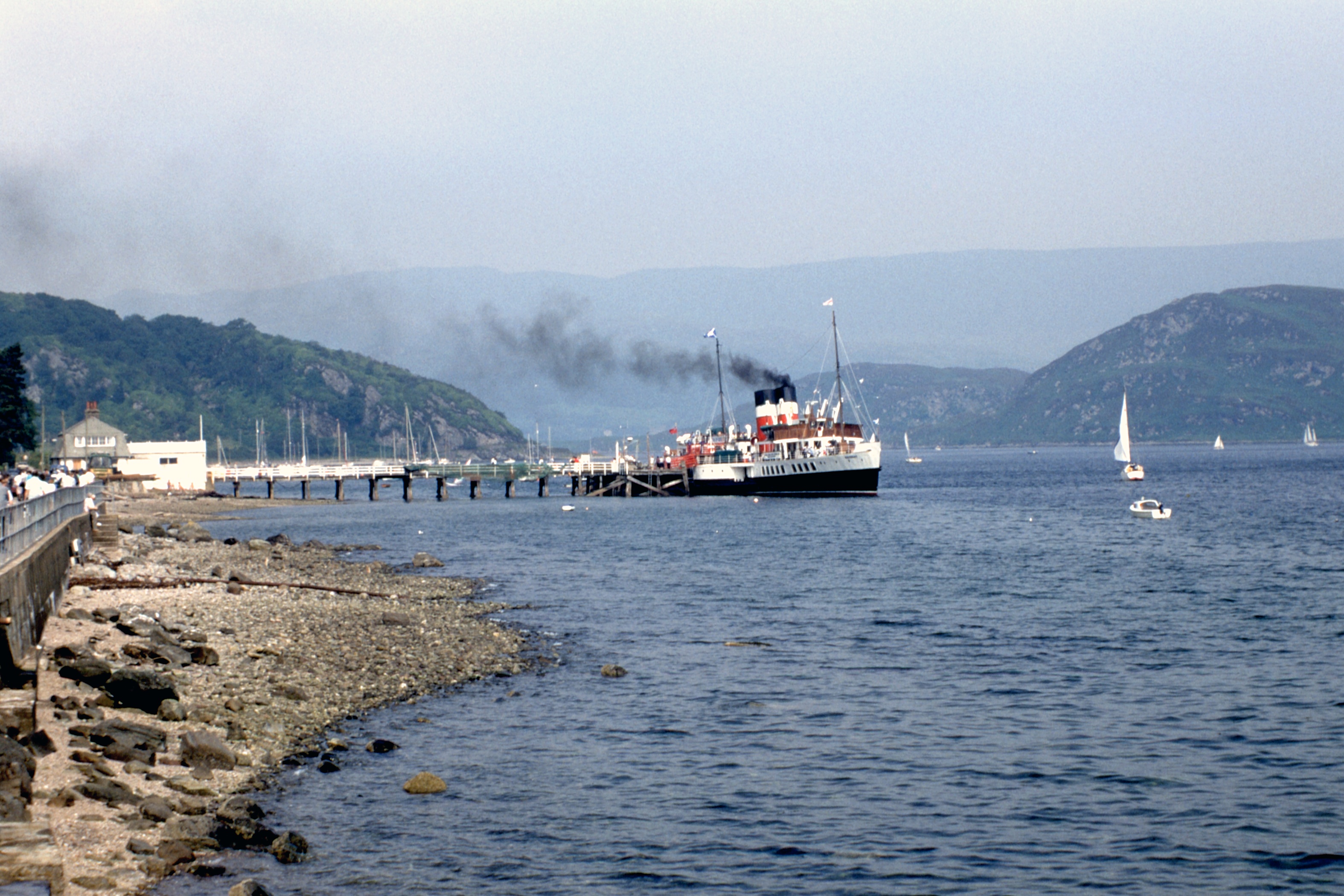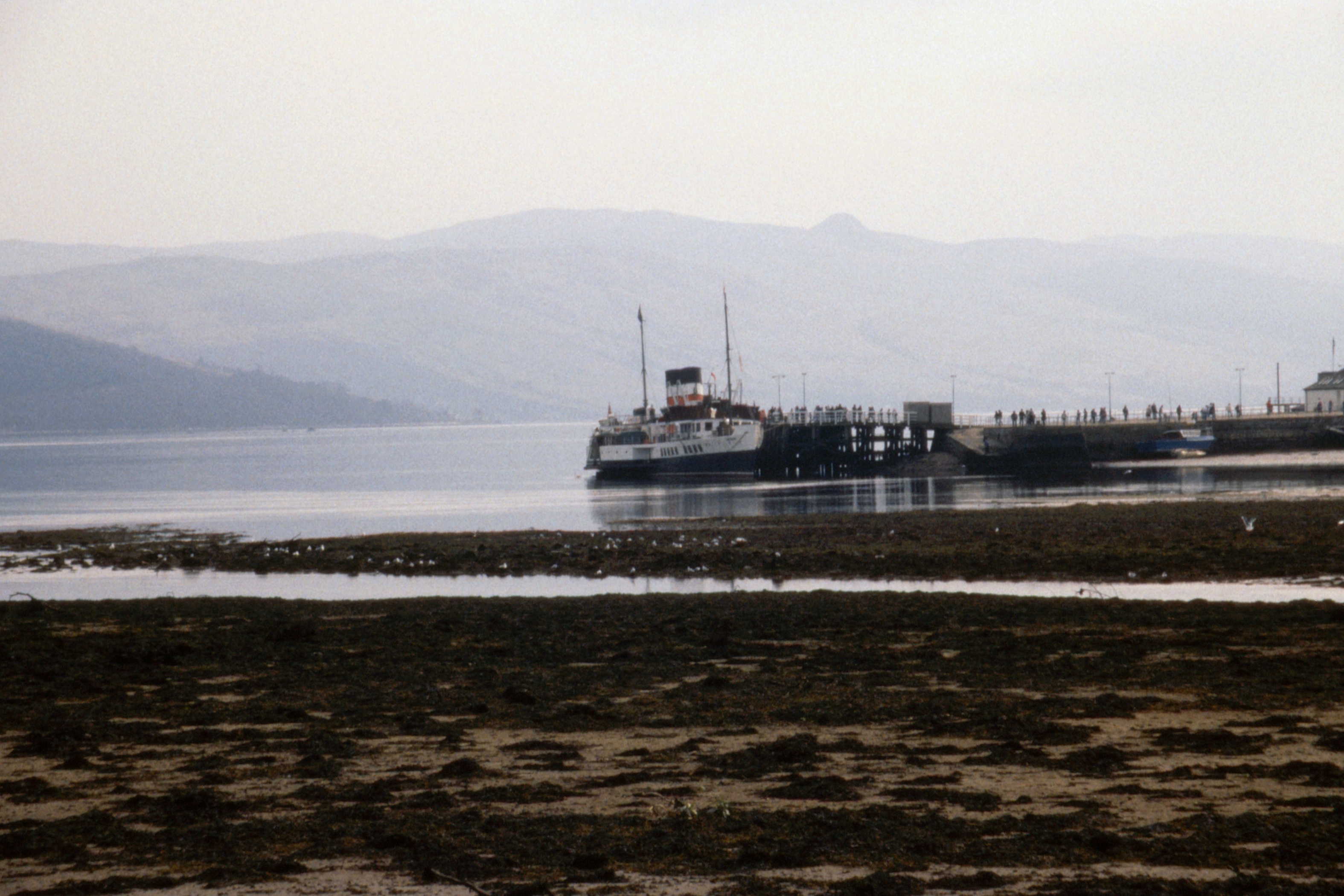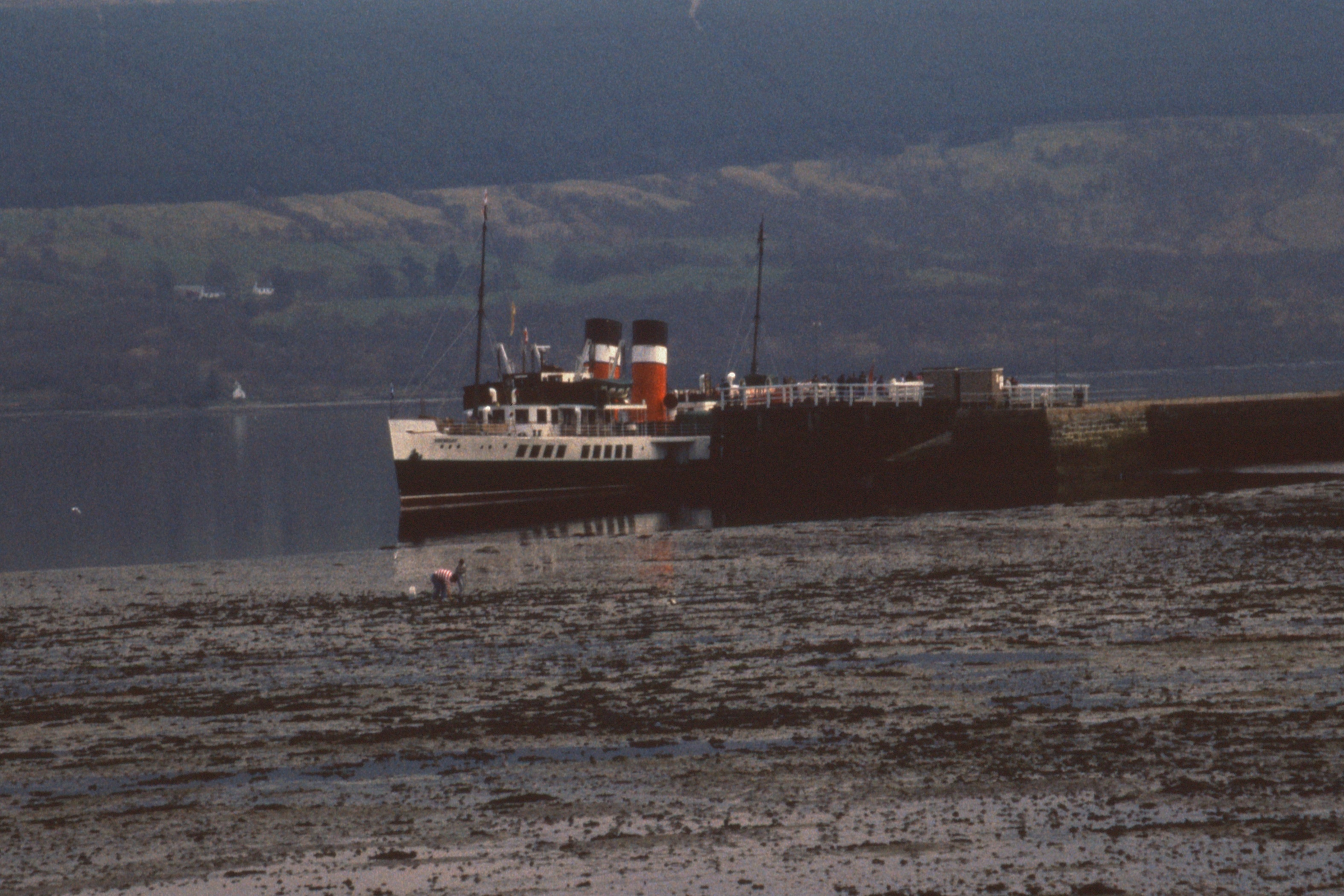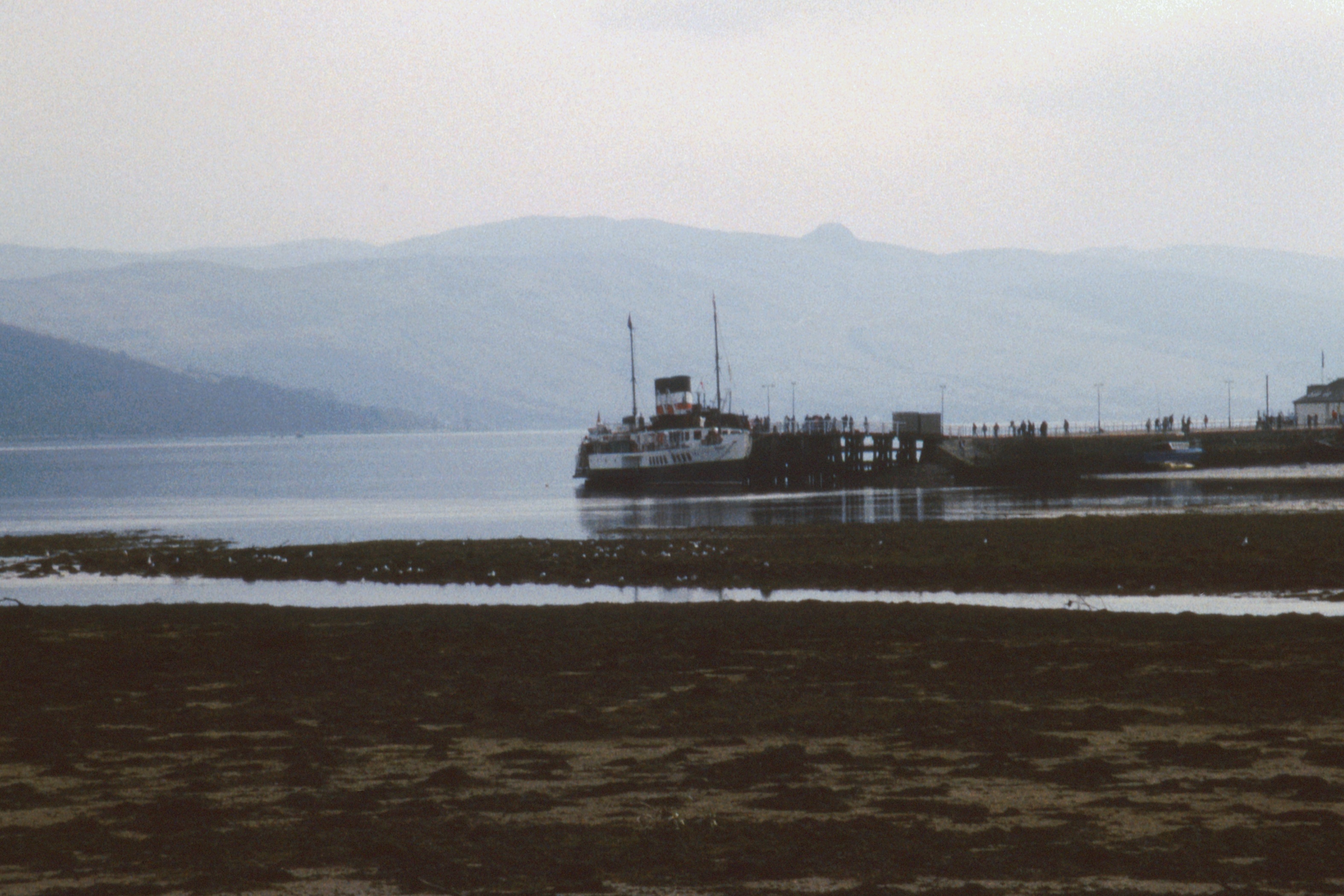 Depart Gourock at 09:20, calling at Dunoon (09:45), Largs (10:35), Rothesay (11:15), Tighnabruaich (12:05) and Ardrishaig (13:40) before spending time at Inveraray. The return sailing departed at 16:40, calling at Ardrishaig (18:20), Tighnabruaich (20:00), Rothesay (20:50) before reaching Largs at 21:30 for a coach return to Gourock for 22:30 (according to the timetable). The fare was �15.95. From Largs, Balmoral continued to Dunoon, arriving at 22:20 before returning light up the river. I found a diary note for Glasgow - Gourock �2.15 single, presumably to get there, I've no idea how I got home, perhaps I got a lift from someone (from Largs?).