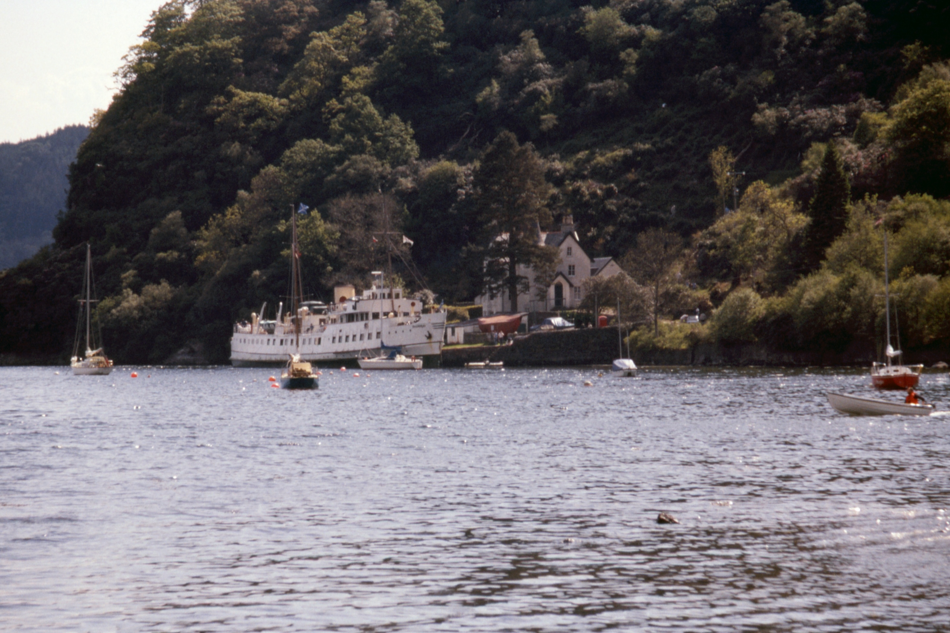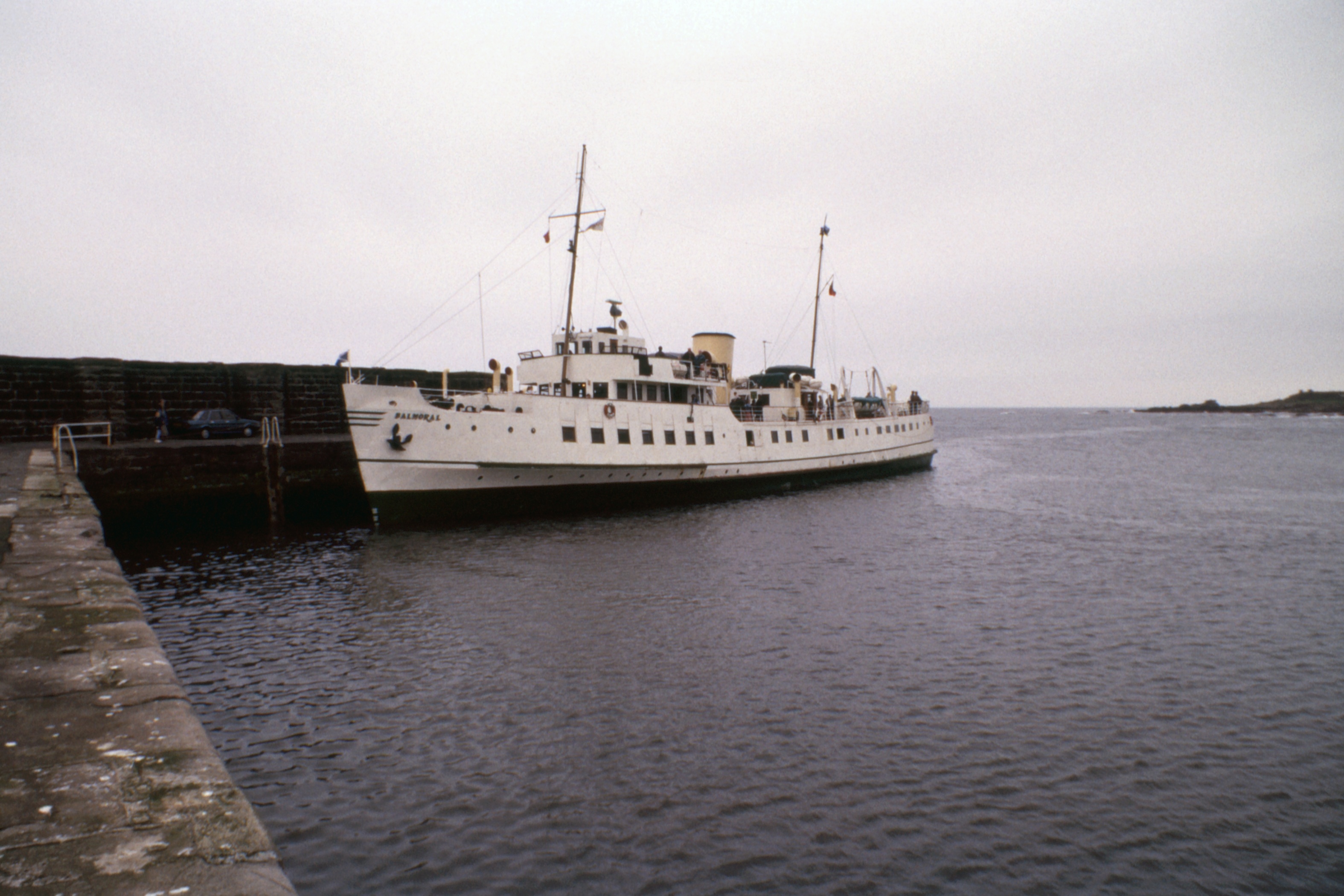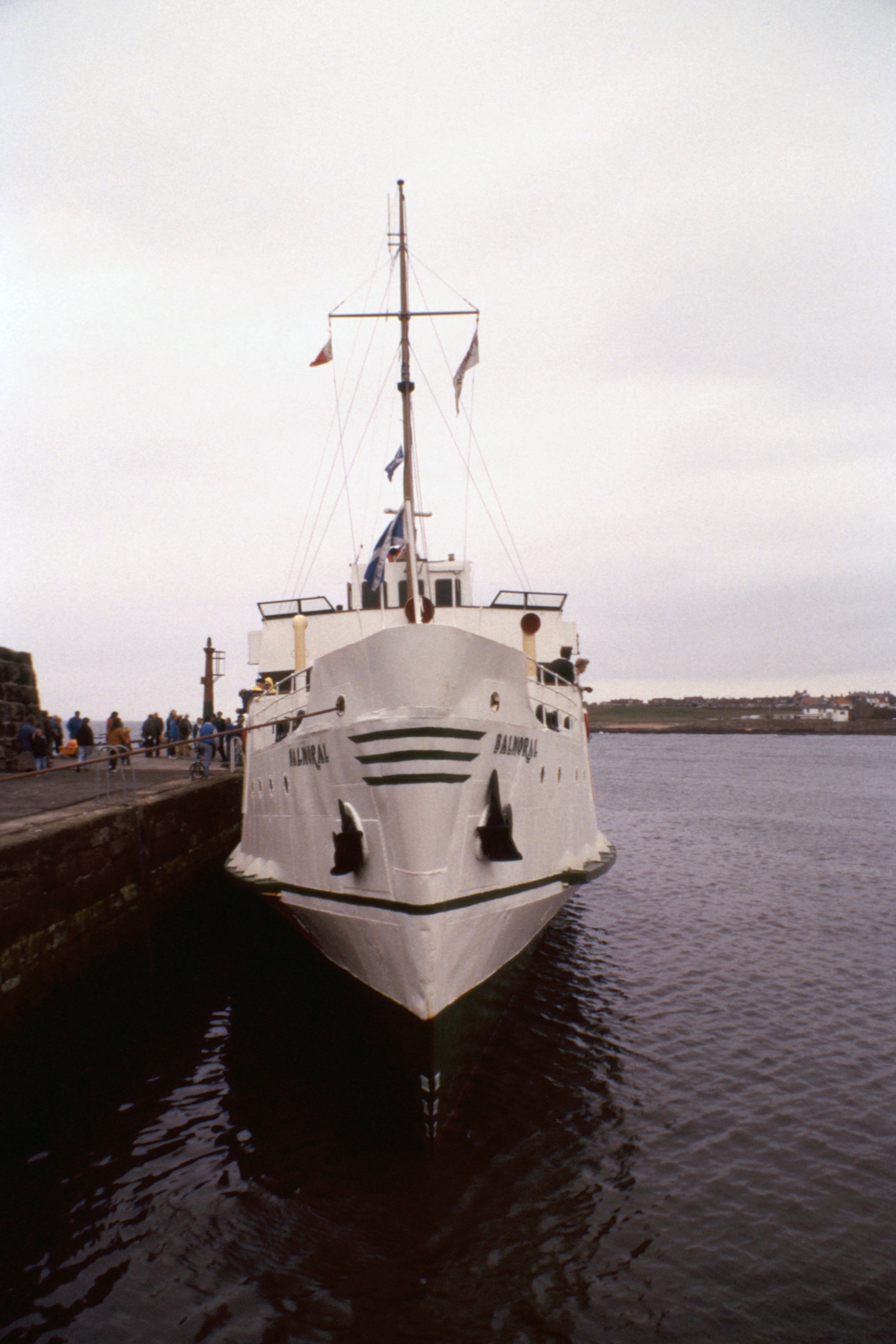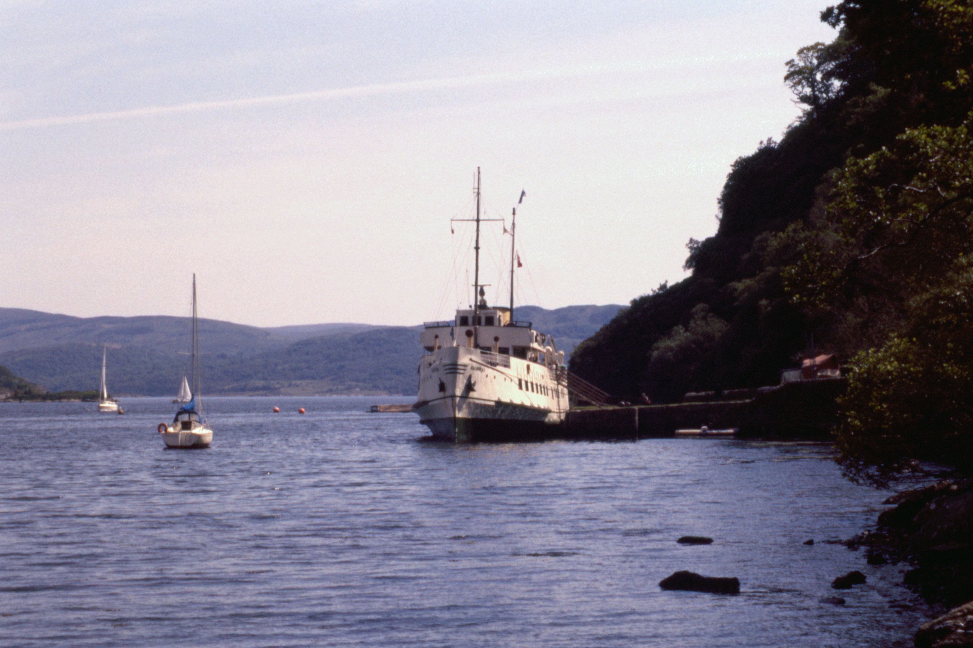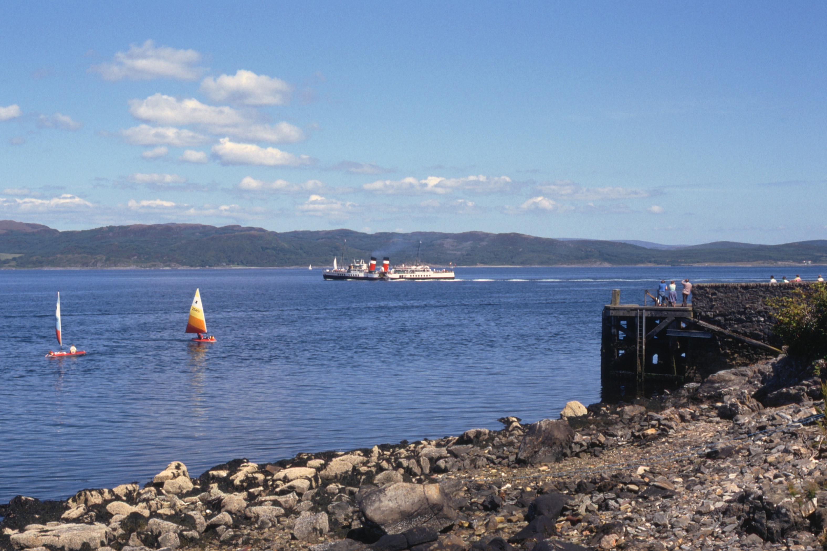 Depart Gourock at 09:20, calling at Dunoon (09:45), Largs (10:35), Rothesay (11:15), Tighnabruaich (12:05) and Ardrishaig (13:40) before spending time at Inveraray. The return sailing departed at 16:40, calling at Ardrishaig (18:20), Tighnabruaich (20:00), Rothesay (20:50) before reaching Largs at 21:30 for a coach return to Gourock for 22:30 (according to the timetable). The fare was �15.95. From Largs, Balmoral continued to Dunoon, arriving at 22:20 before returning light up the river. I found a diary note for Glasgow - Gourock �2.15 single, presumably to get there, I've no idea how I got home, perhaps I got a lift from someone (from Largs?).