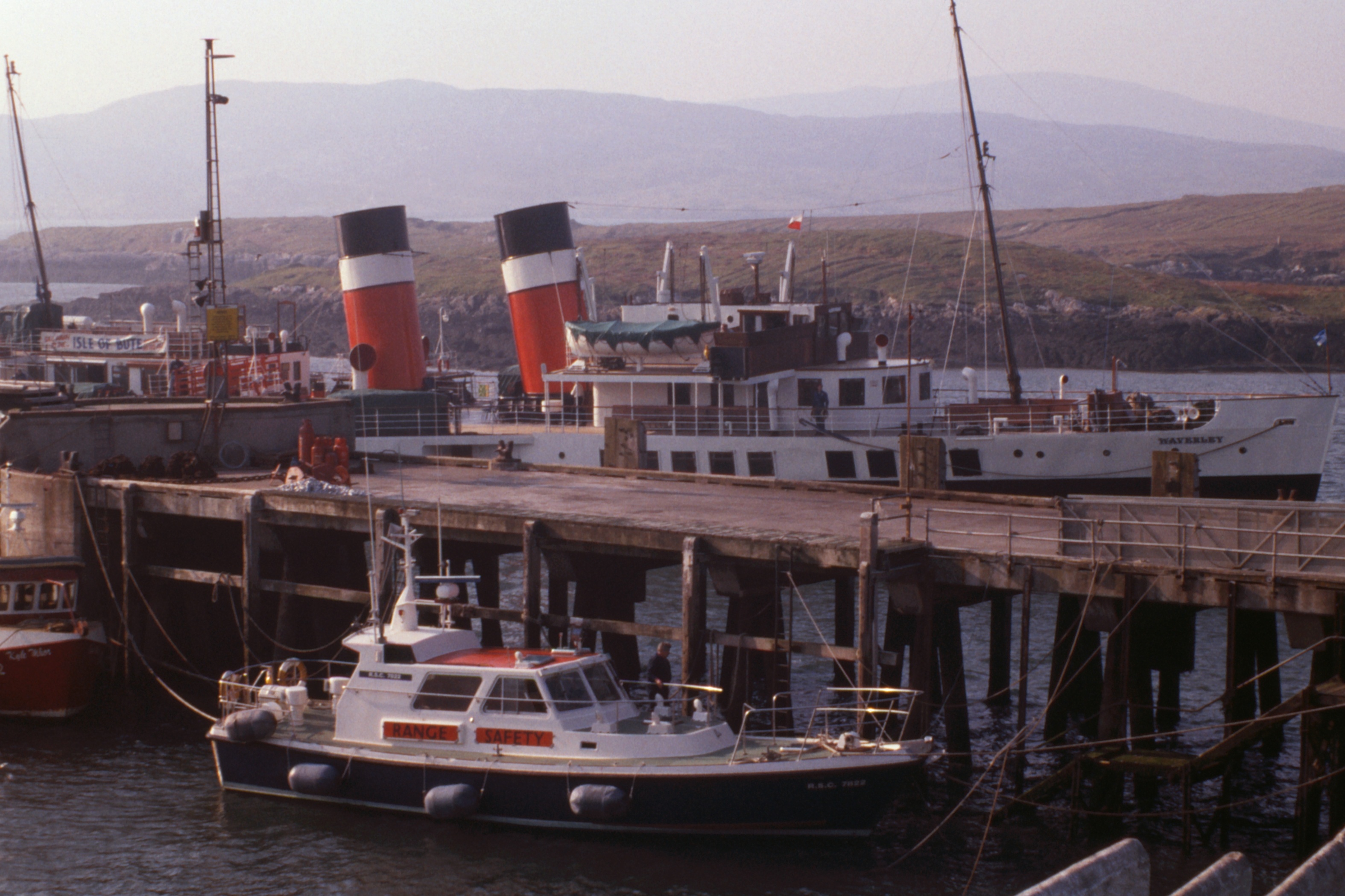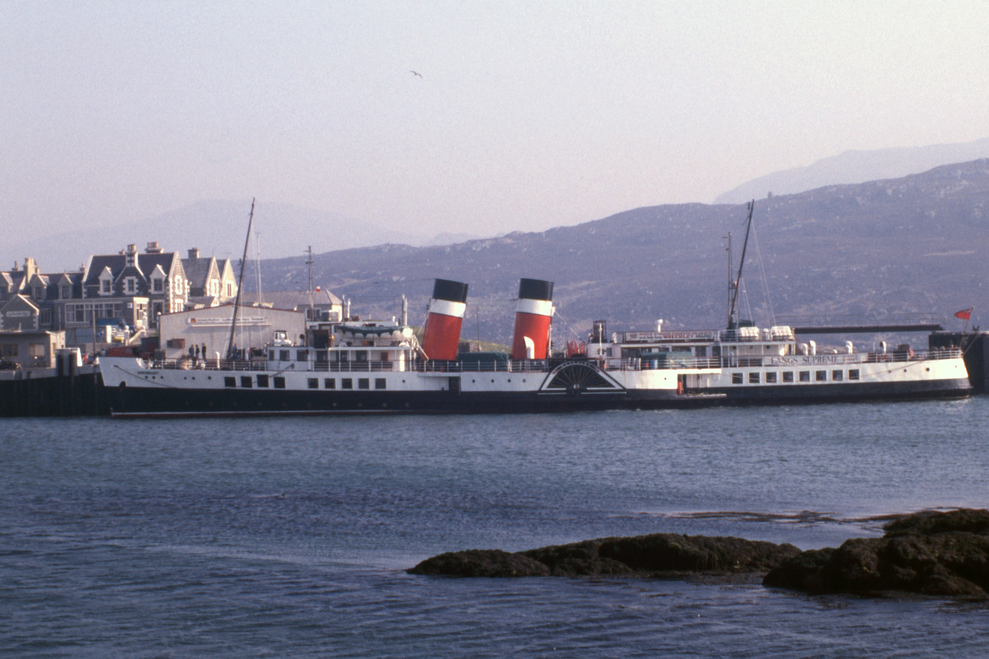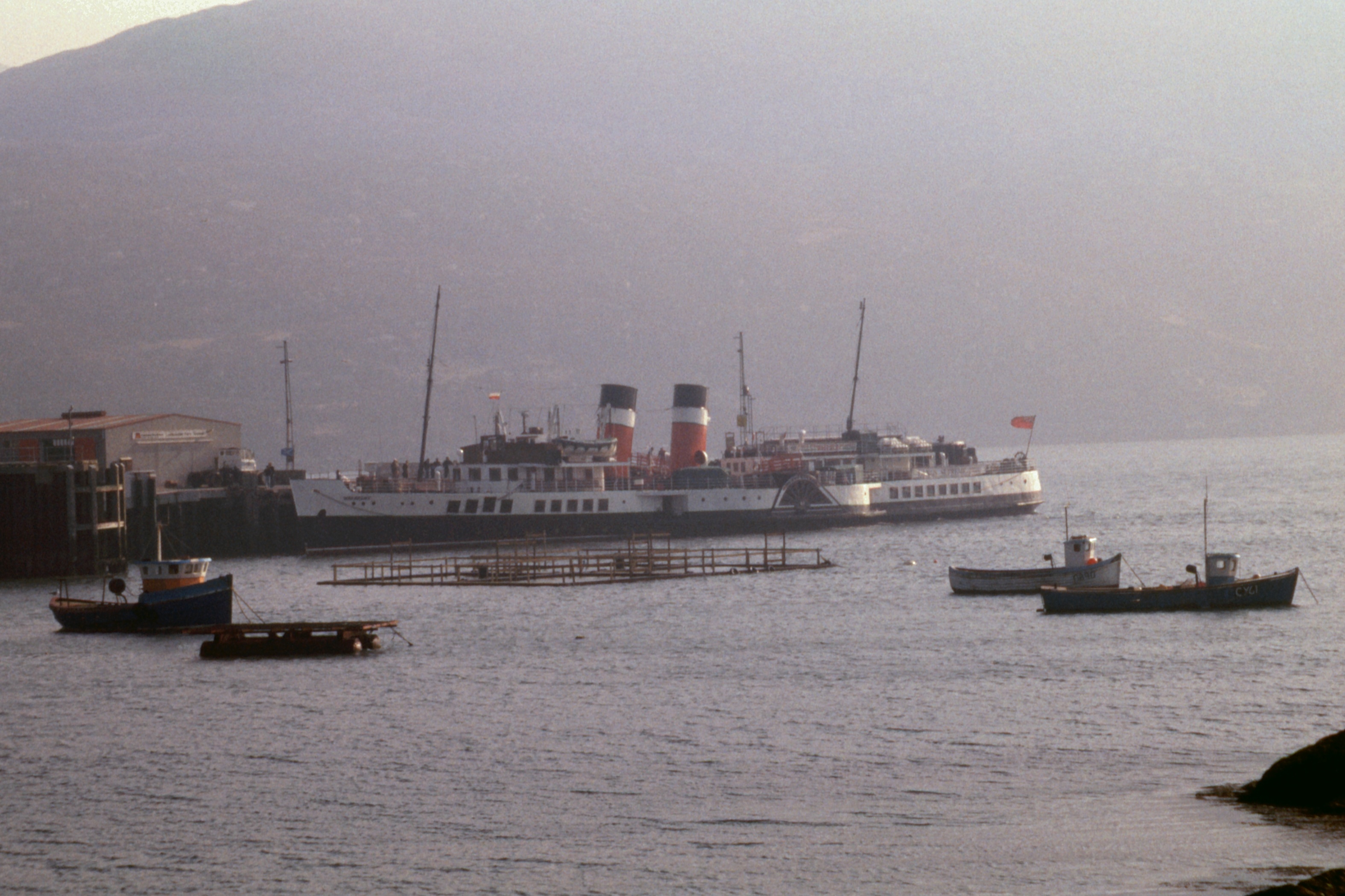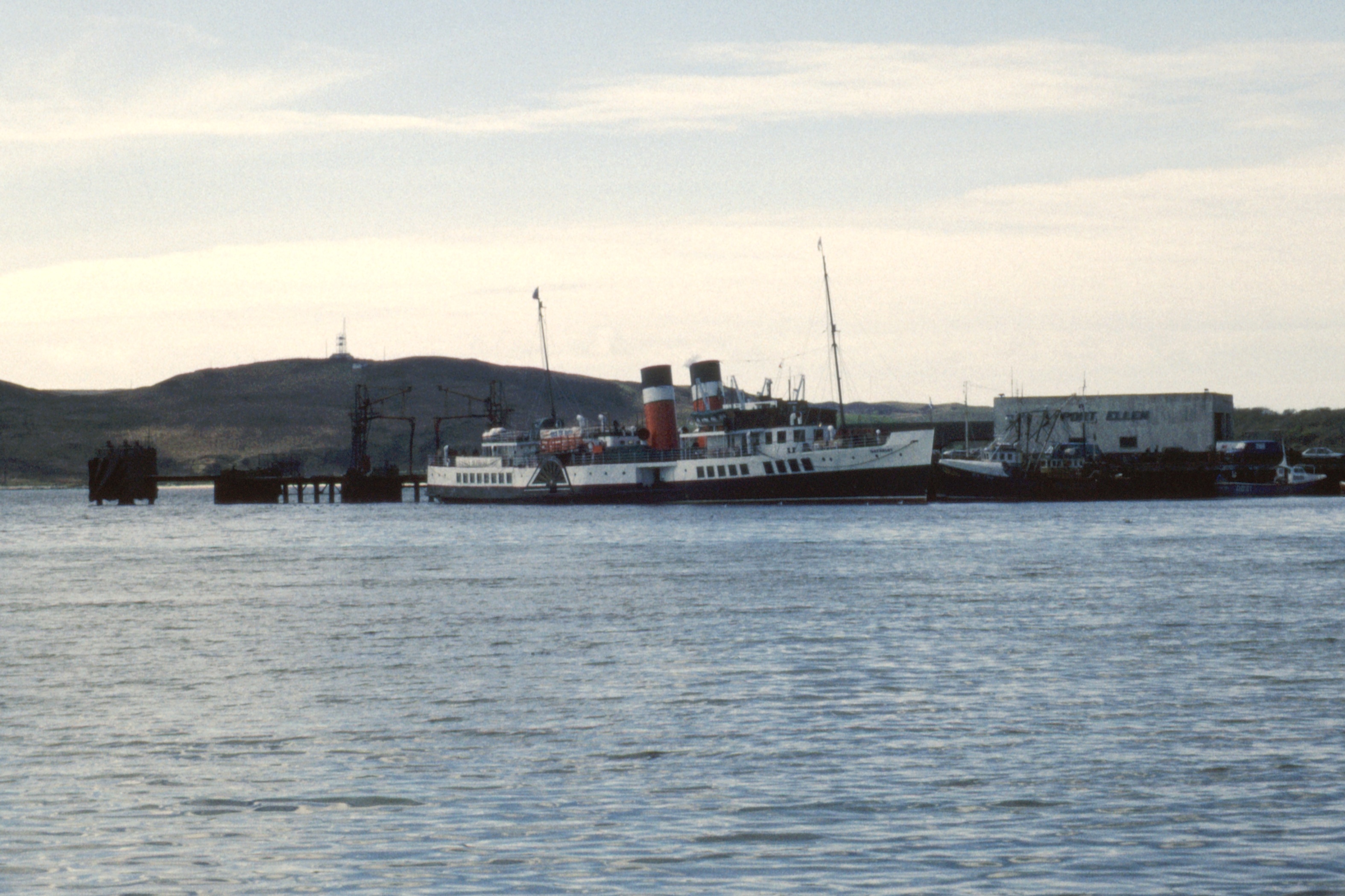 on the North Pier at Oban with mv Isle of Mull above and mv Lord of the Isles behind Waverley's funnel |