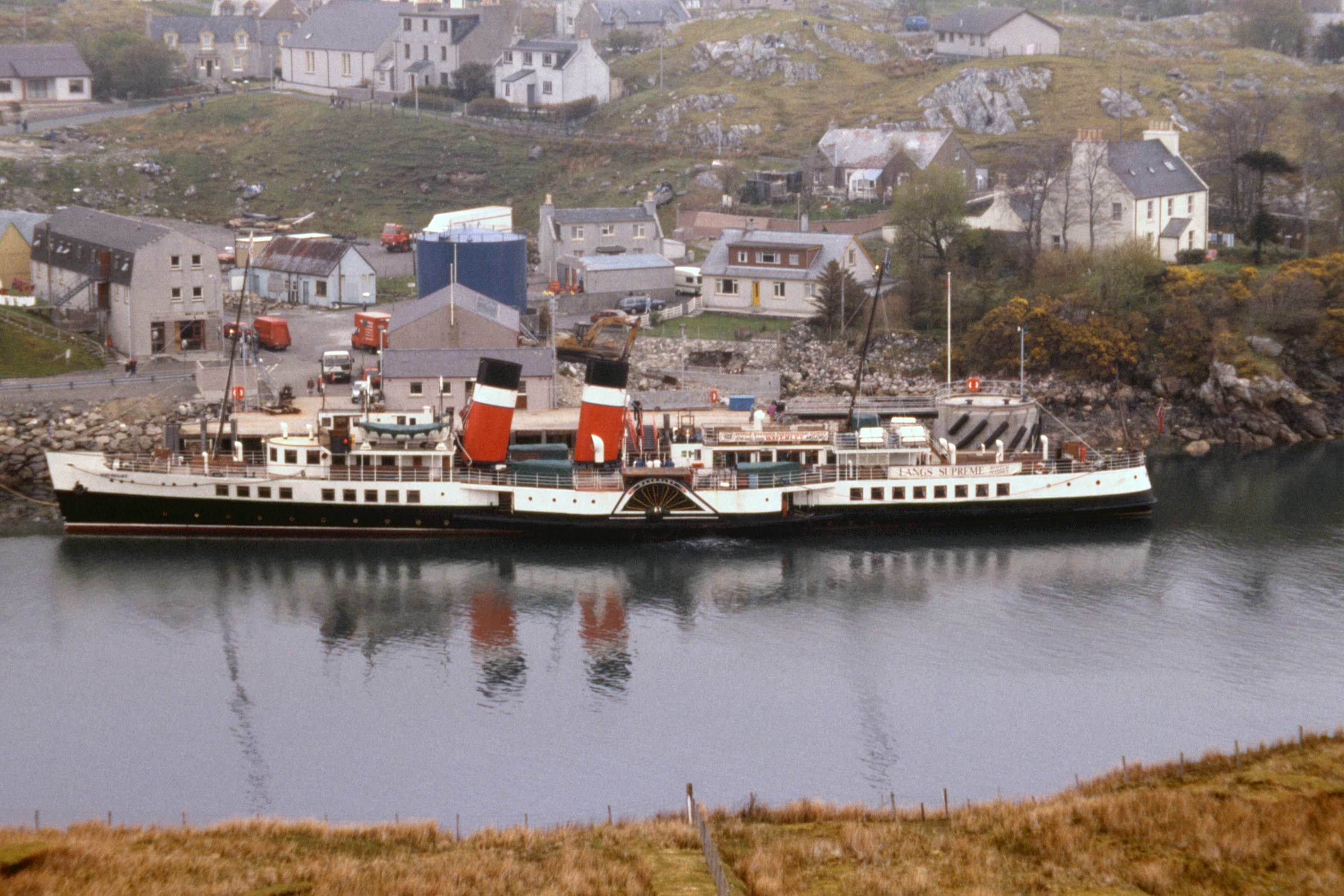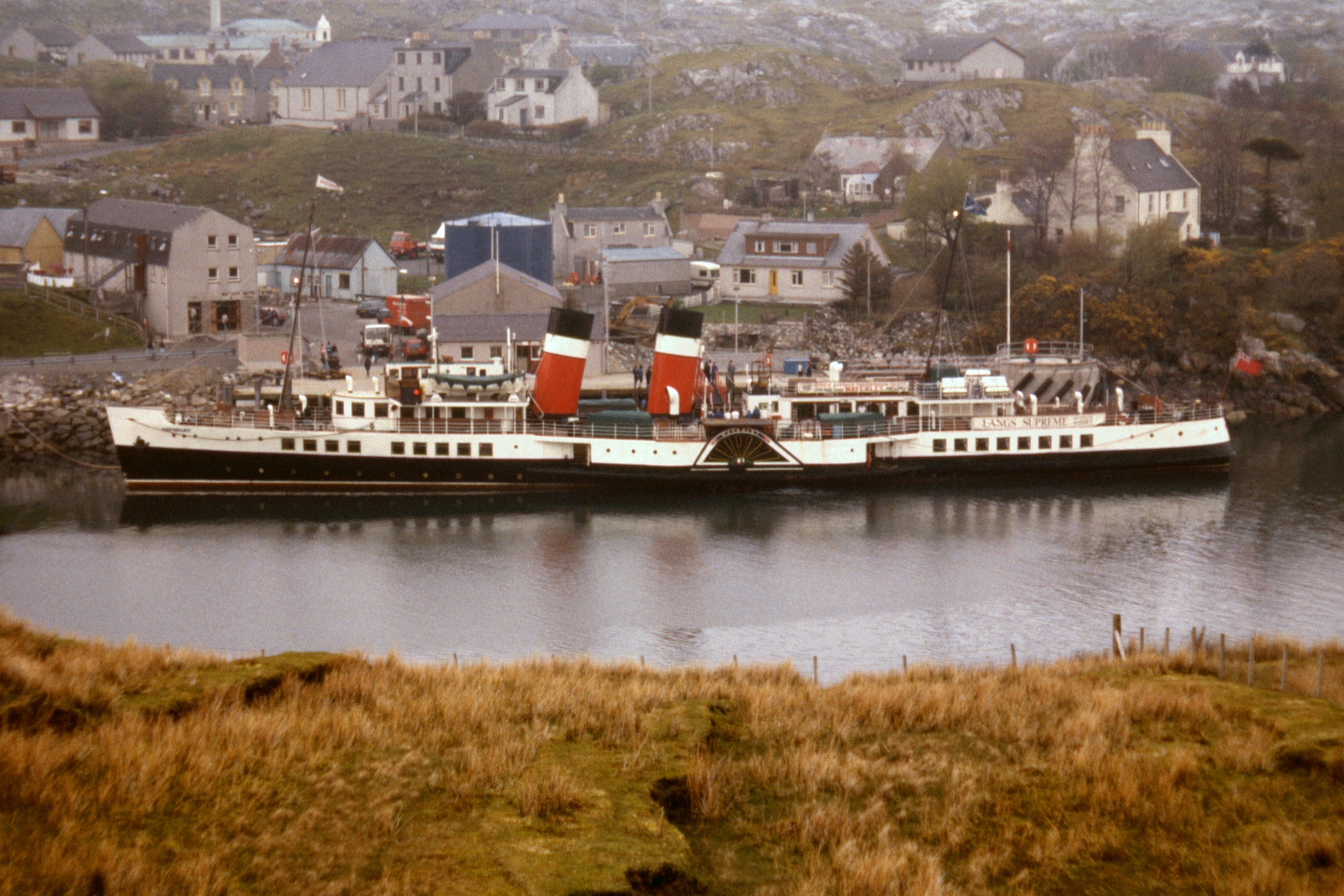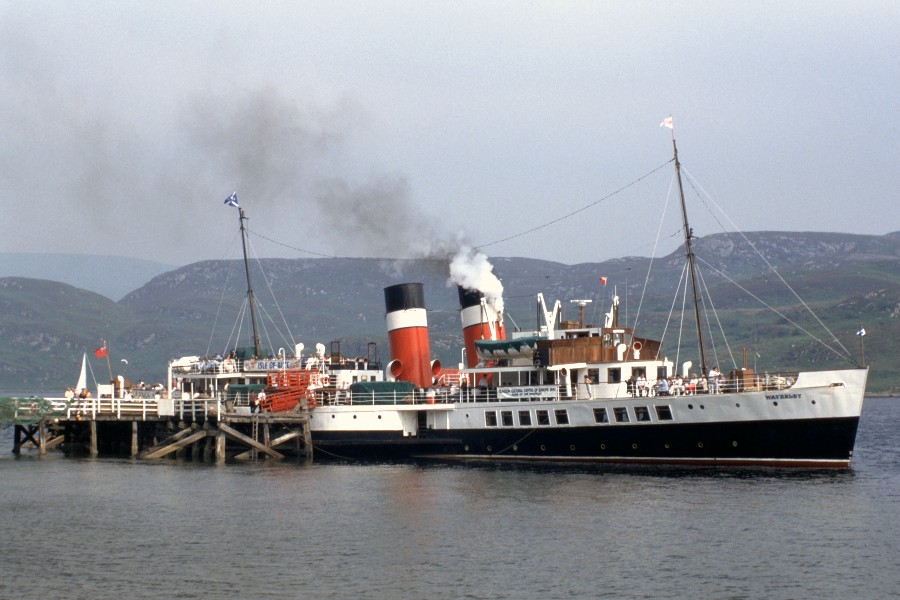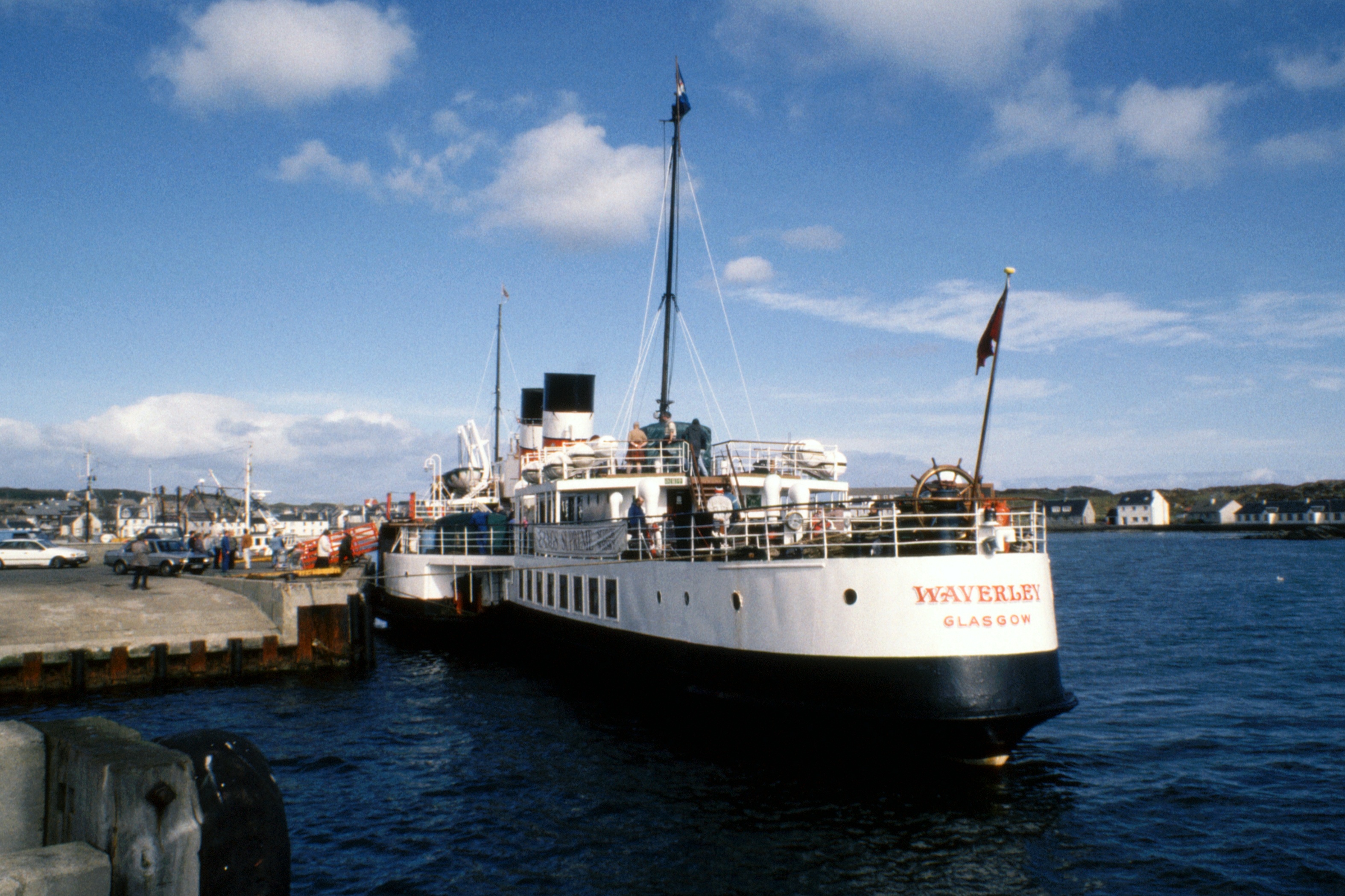 on the North Pier at Oban with mv Isle of Mull above and mv Lord of the Isles behind Waverley's funnel |