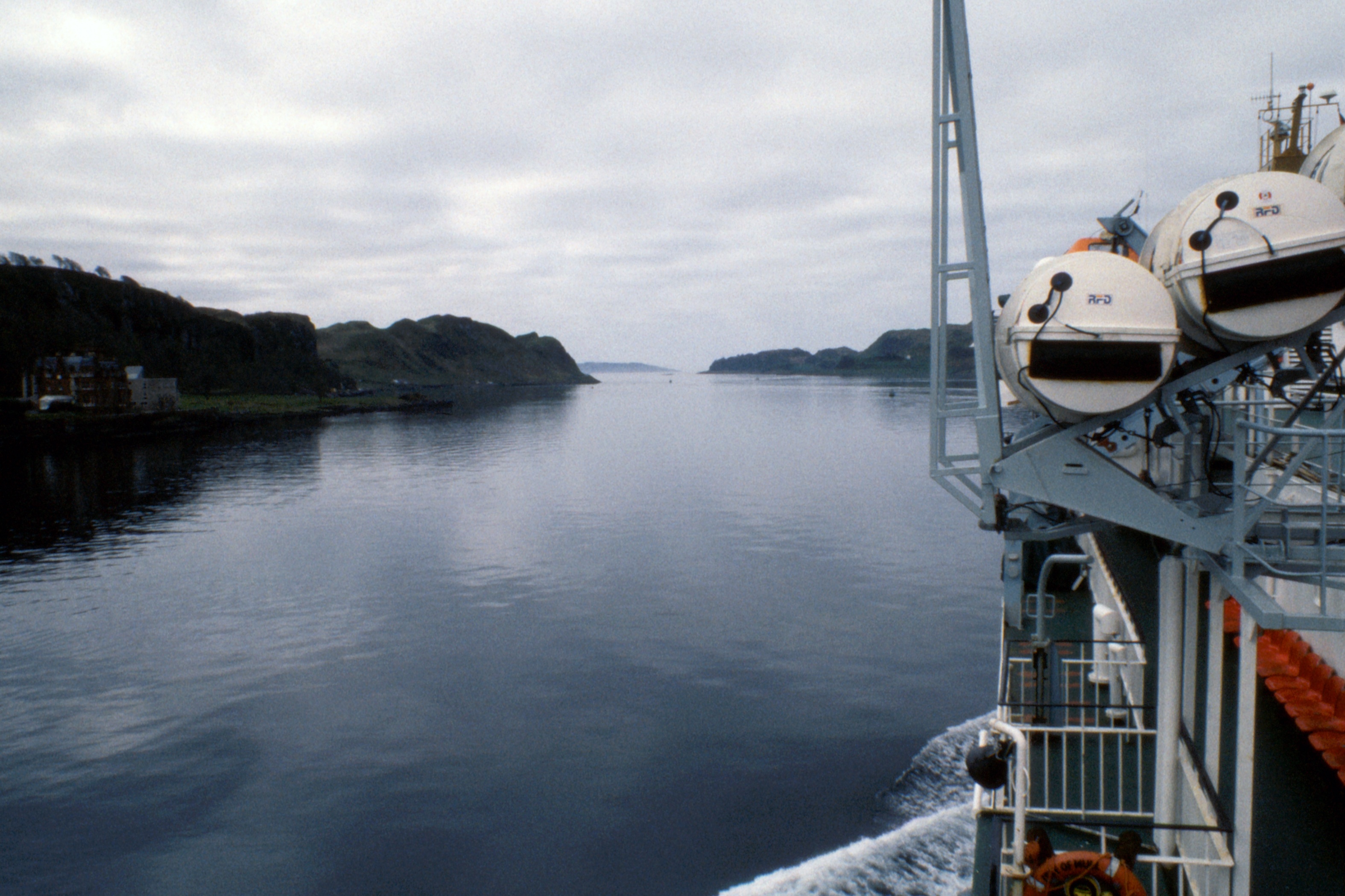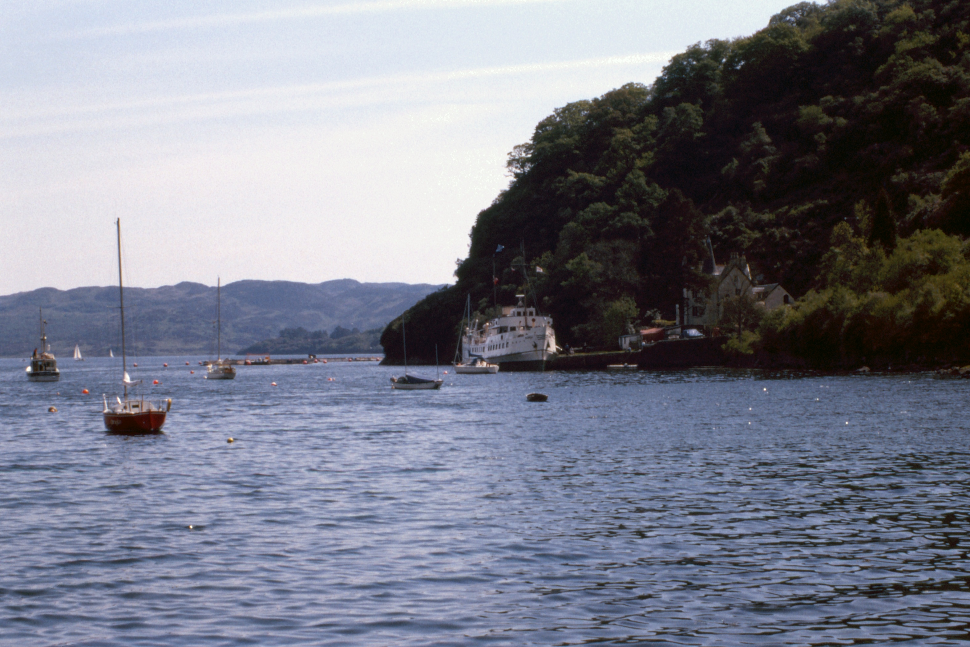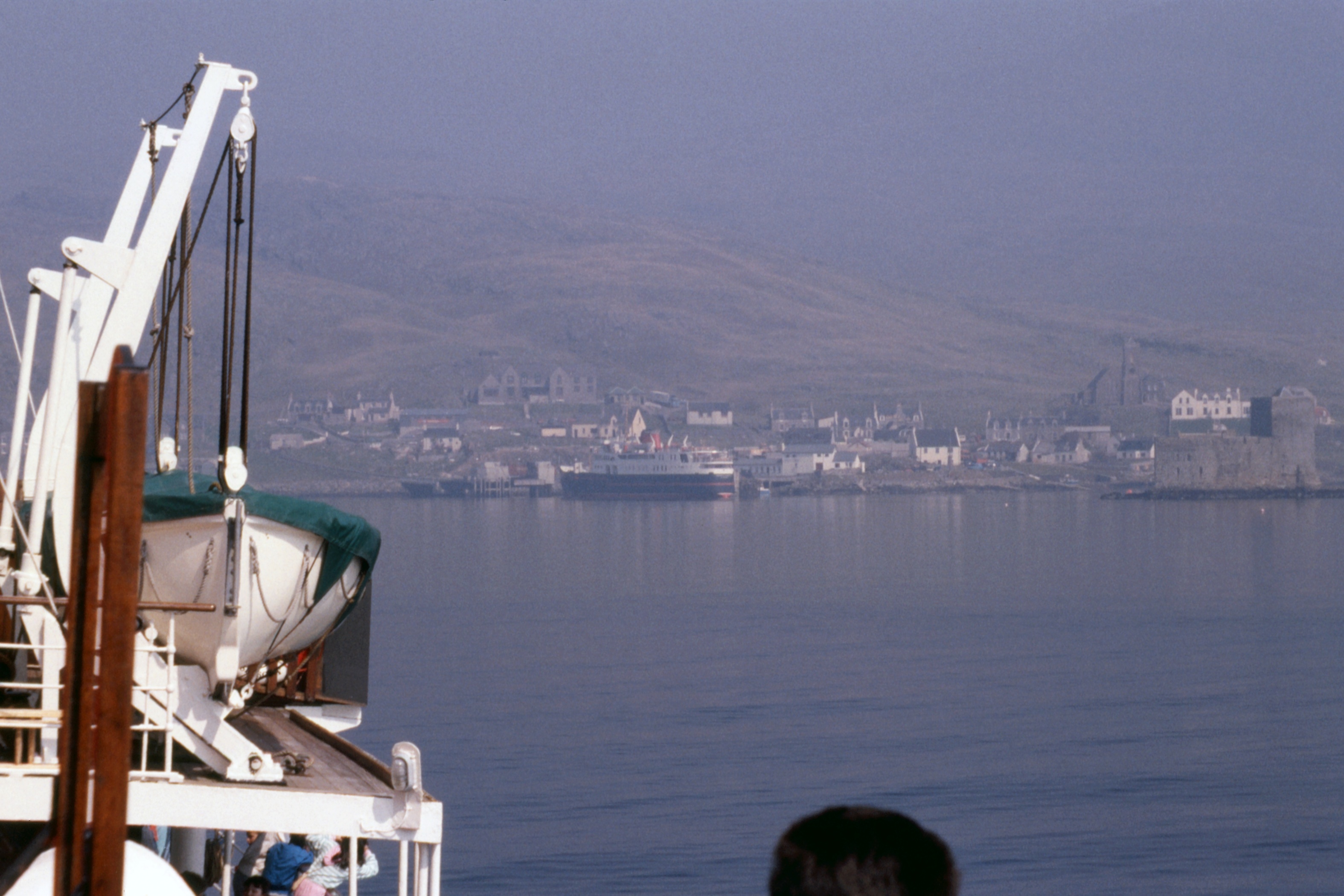 Day 2 - Saturday, April 28 Depart Oban at 10:00, calling at Tobermory before proceeding to Armadale (Skye) for time ashore. (I stayed aboard, Kermit fell in a rock pool to the considerable amusement of his companions.) Back at Oban at 21:00. Fare �14.95. Miserable weather with very poor visibility so there was nothing to photograph.
