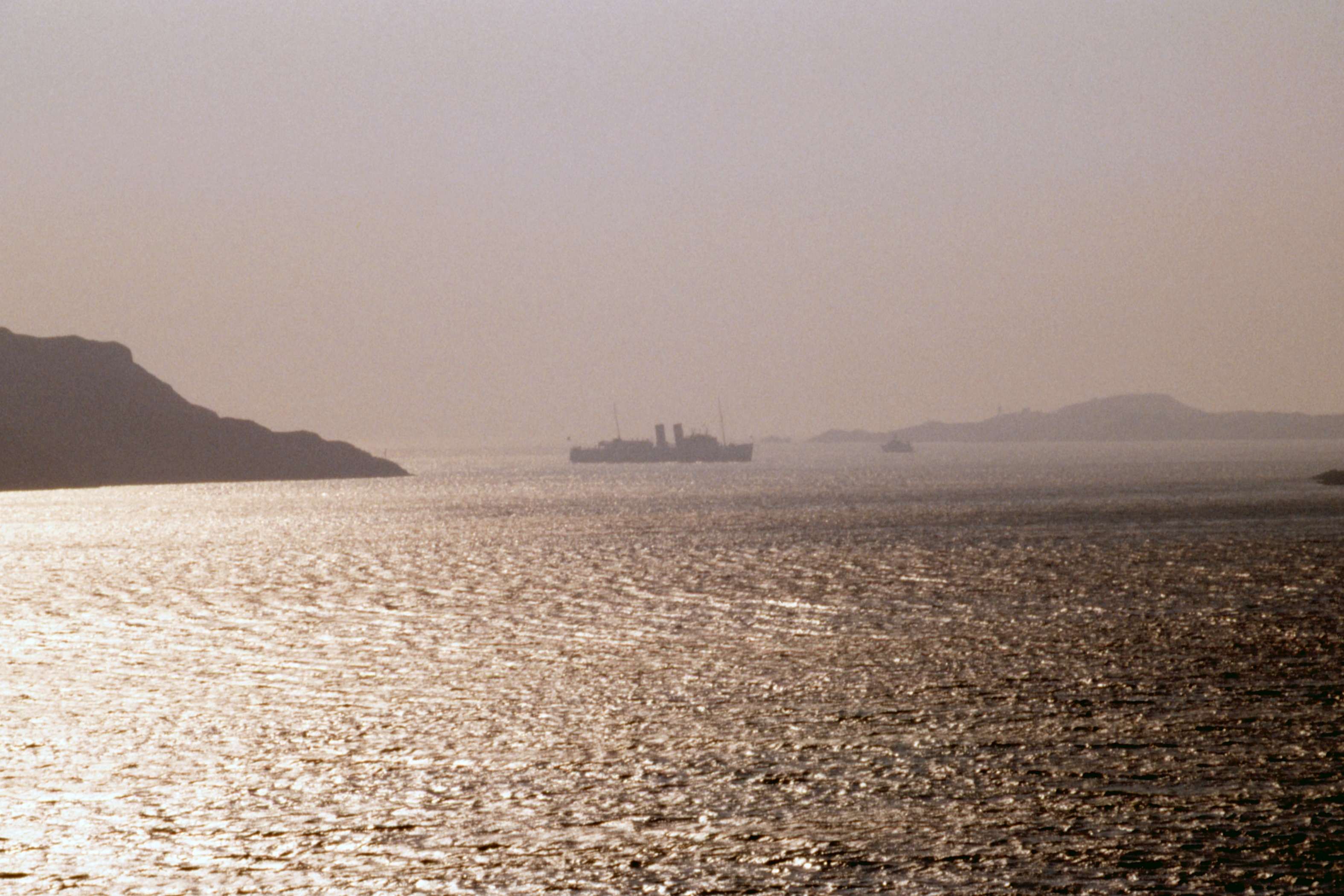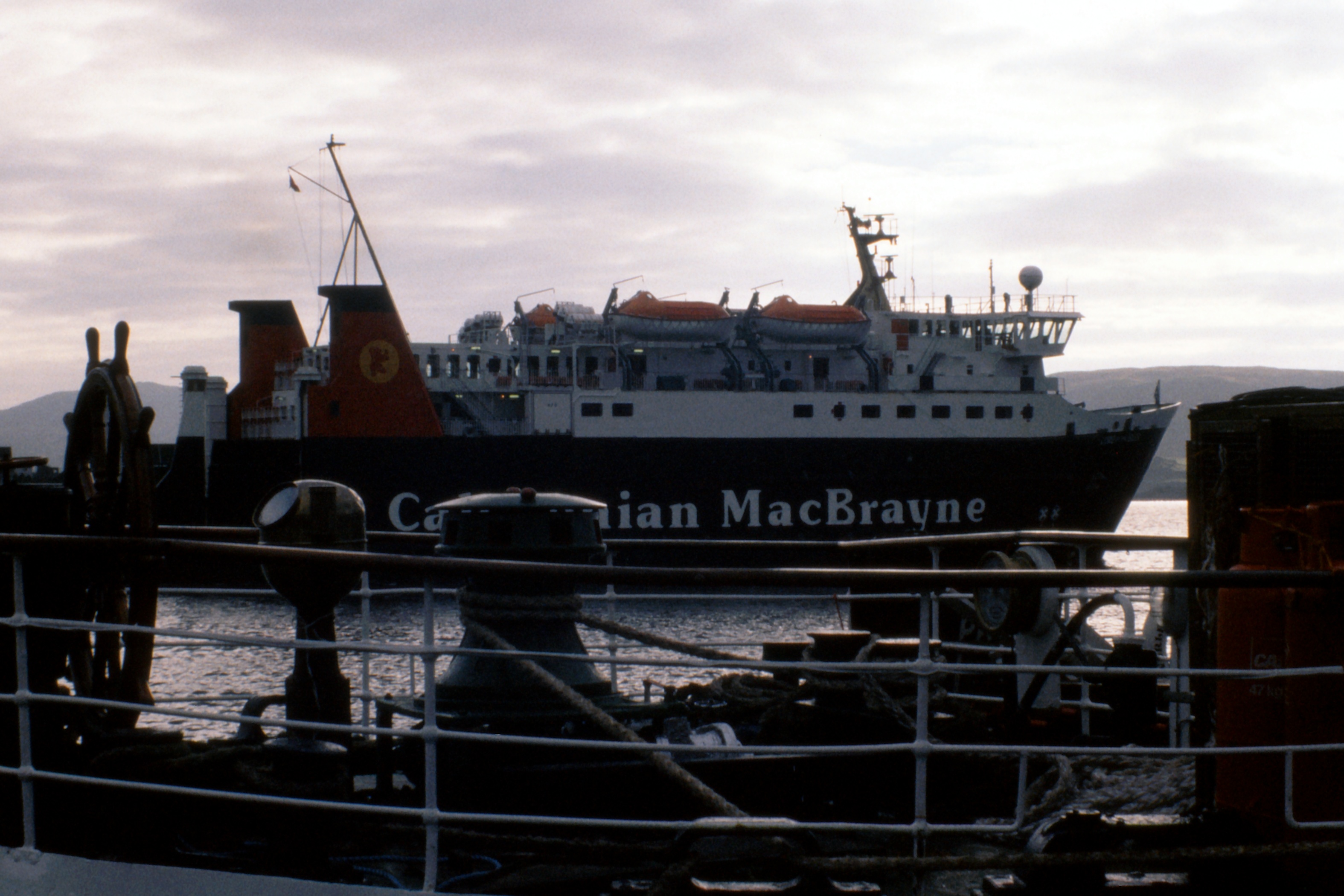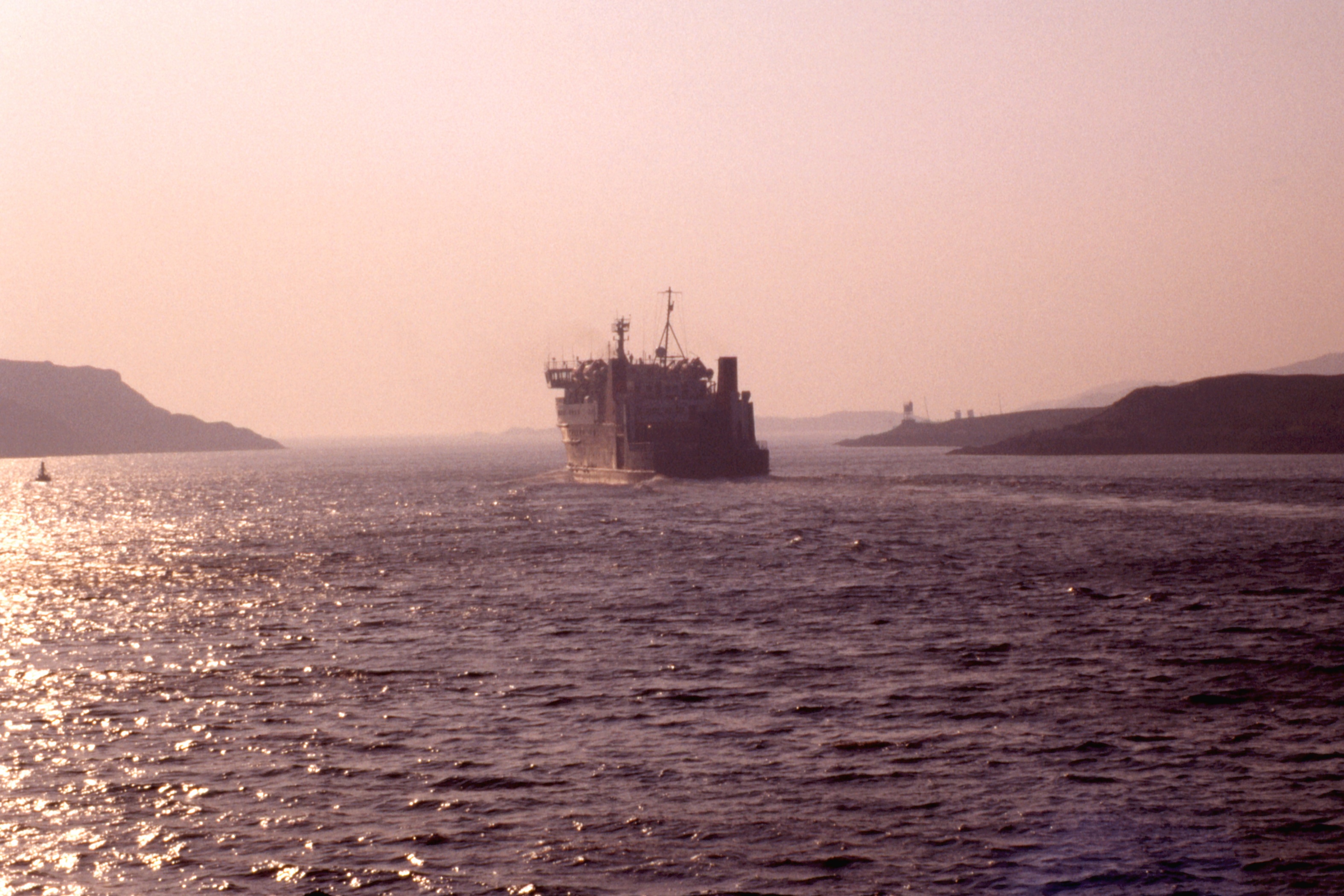 Day 2 - Saturday, April 28 Depart Oban at 10:00, calling at Tobermory before proceeding to Armadale (Skye) for time ashore. (I stayed aboard, Kermit fell in a rock pool to the considerable amusement of his companions.) Back at Oban at 21:00. Fare �14.95. Miserable weather with very poor visibility so there was nothing to photograph.
