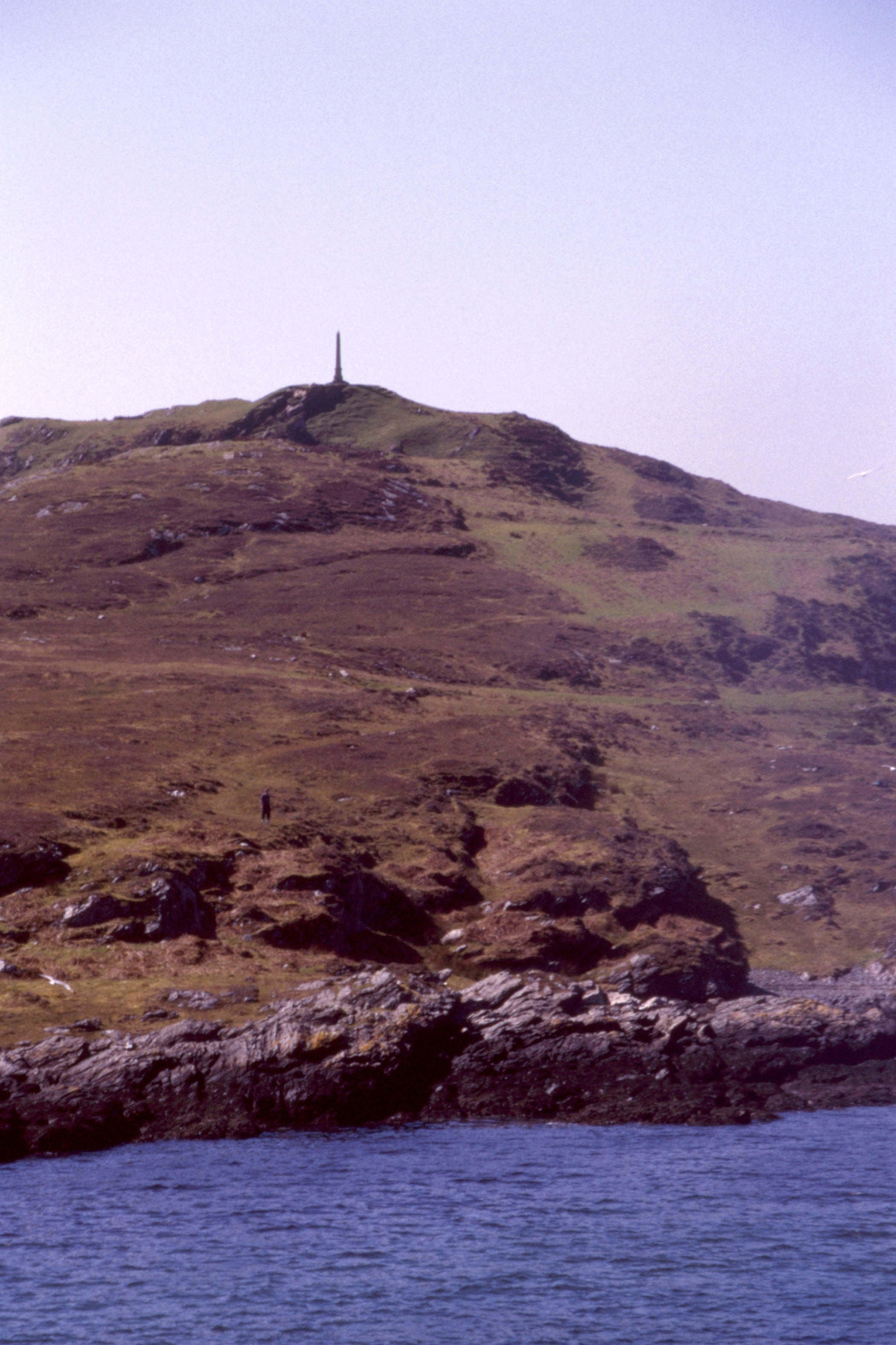 The other Richard got off at Colonsay | Richard below the Lord Colonsay Memorial on top of Cnoc na Faire M�r |