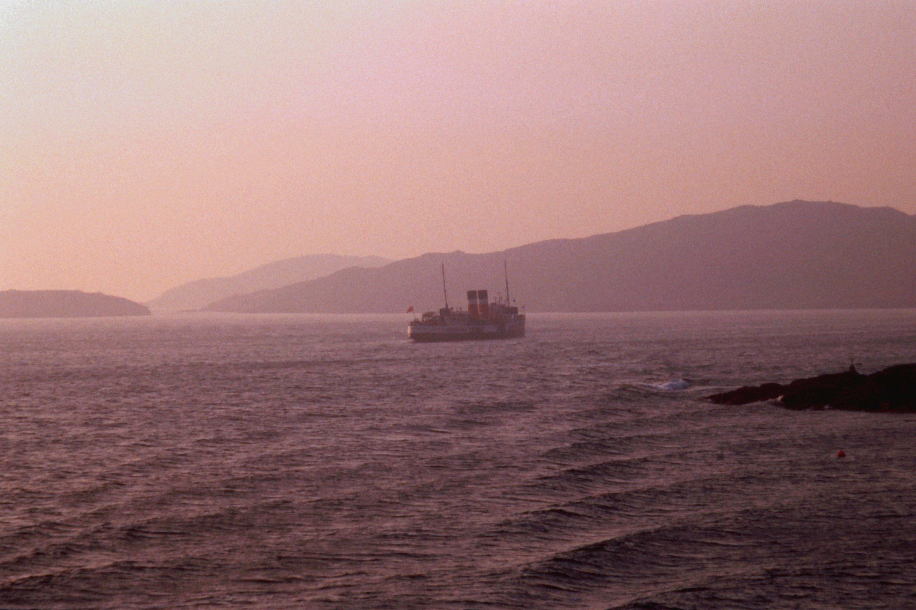 Day 10 Sunday, May 6 Waverley sailed from Fort William at 11:00, Oban at 13:15 and 16:45, returning to Fort William at 19:00 and Oban at 21:15. As far as I can see, I skipped the first leg from Fort William and just did the short cruise on the Firth of Lorne from Oban (13:15 - 16:45, fare �7.95) followed by the evening cruise to Fort William and back (16:45 - 21:15, fare �5.95).