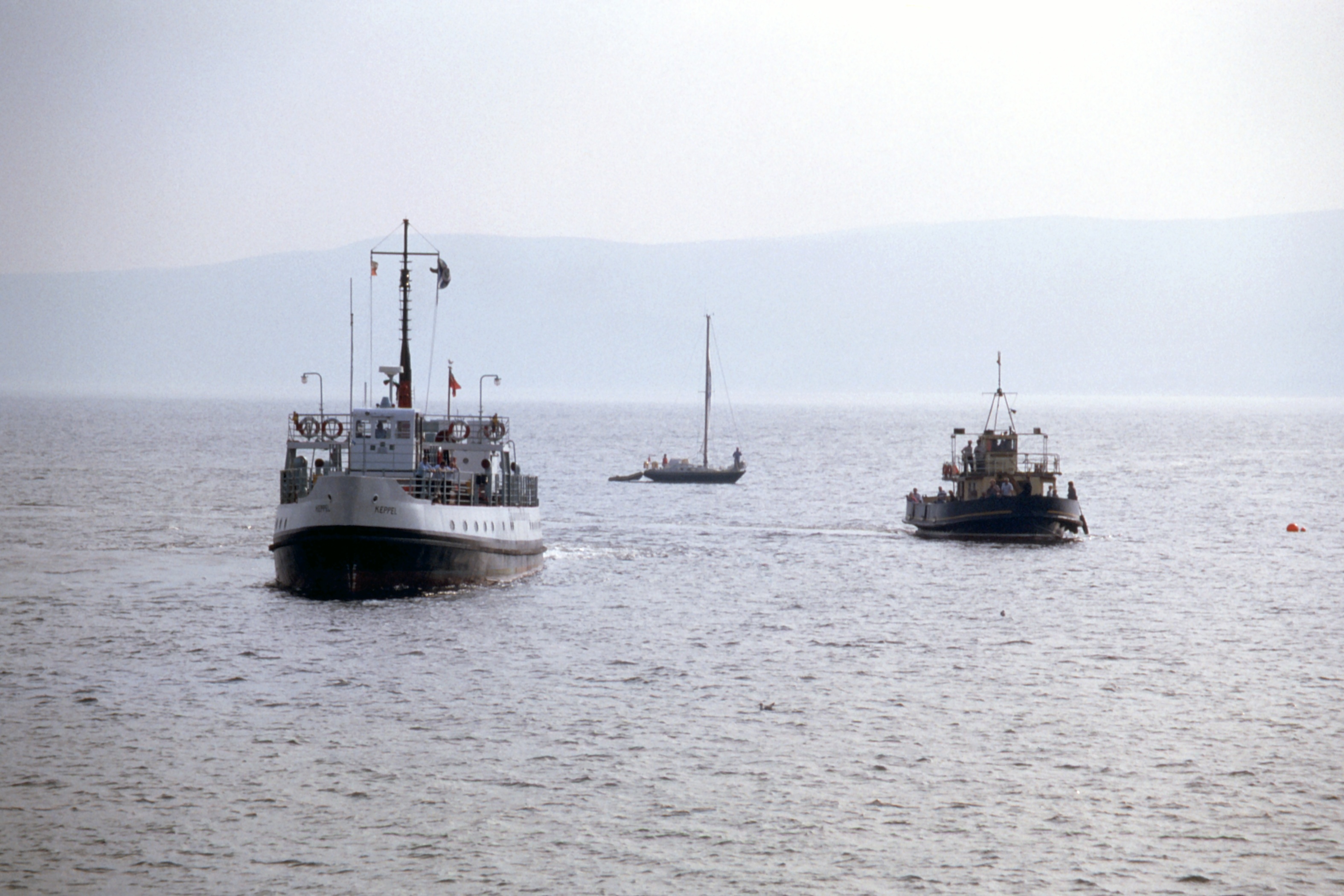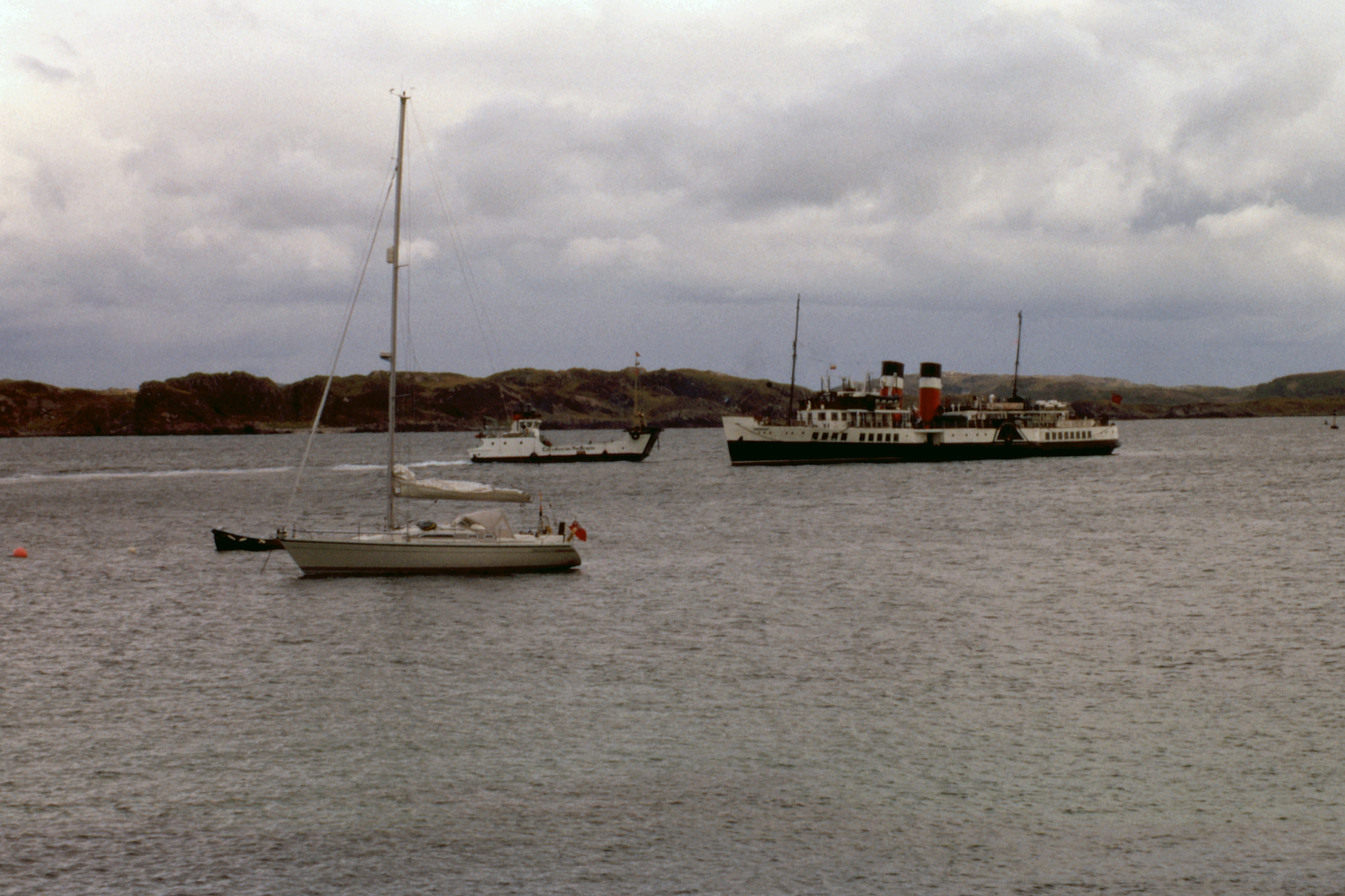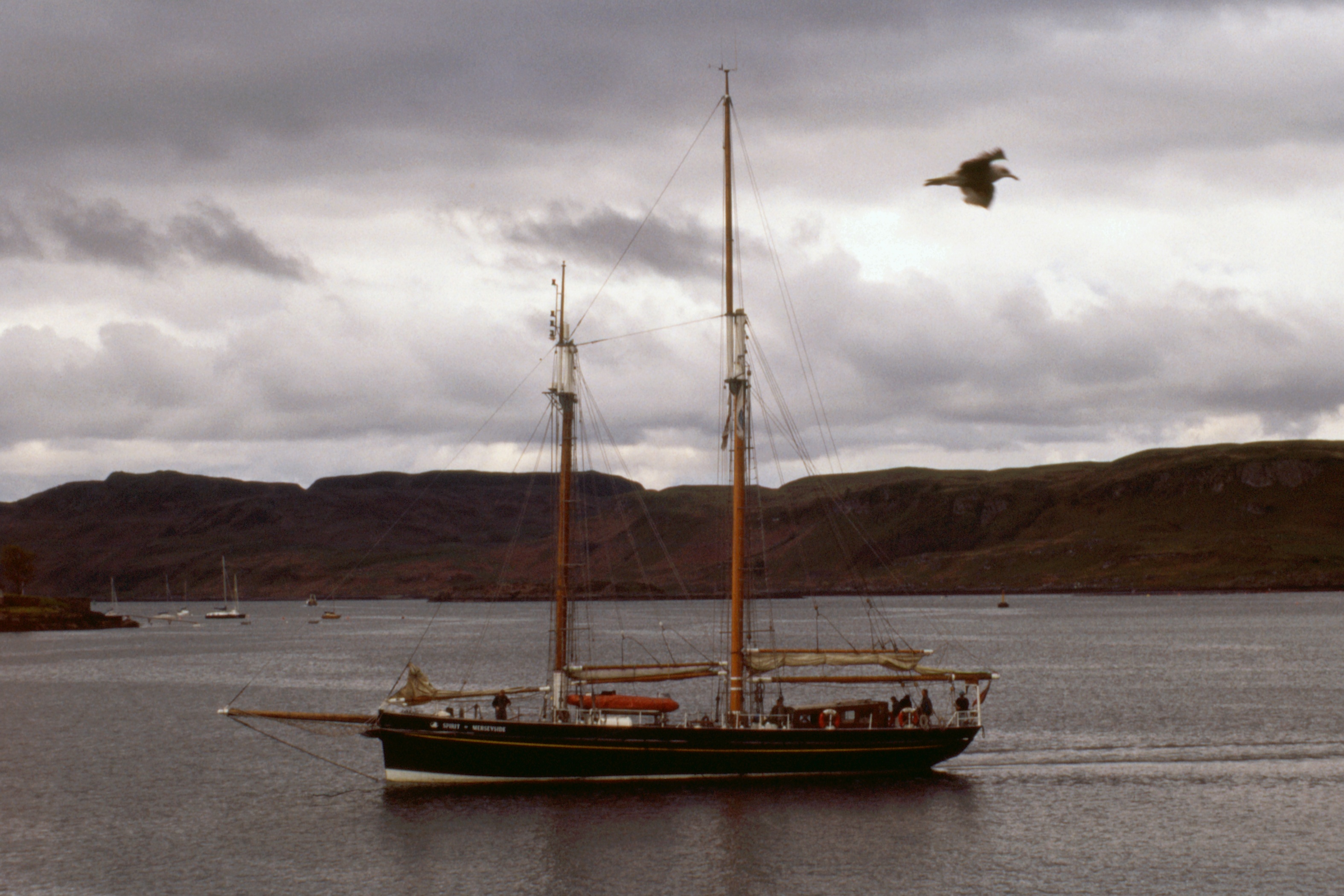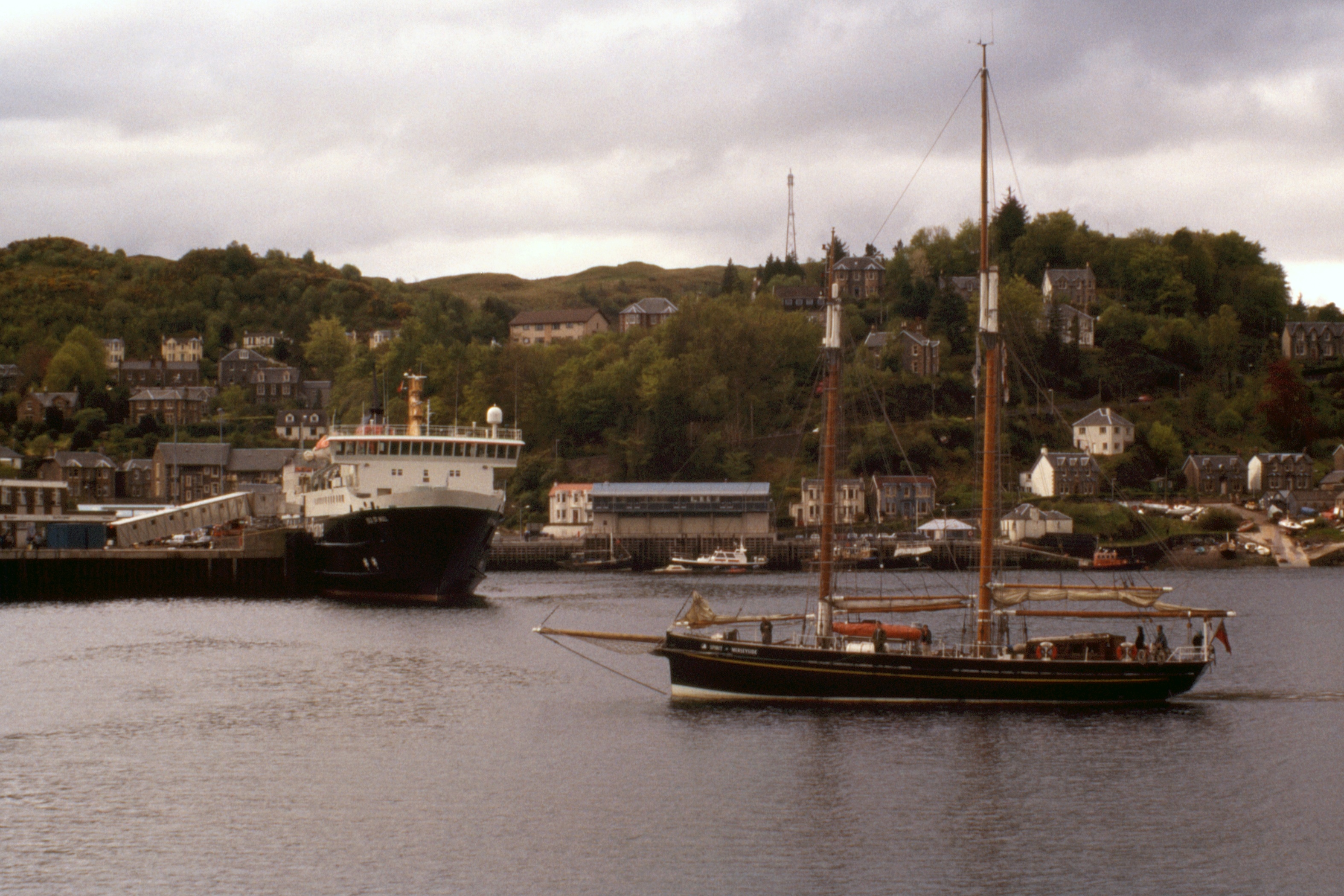 The schooner "Spirit of Merseyside" in Oban Bay | "Spirit of Merseyside" and Isle of Mull | Lord of the Isles heads for Oban as Waverley leaves Tobermory |