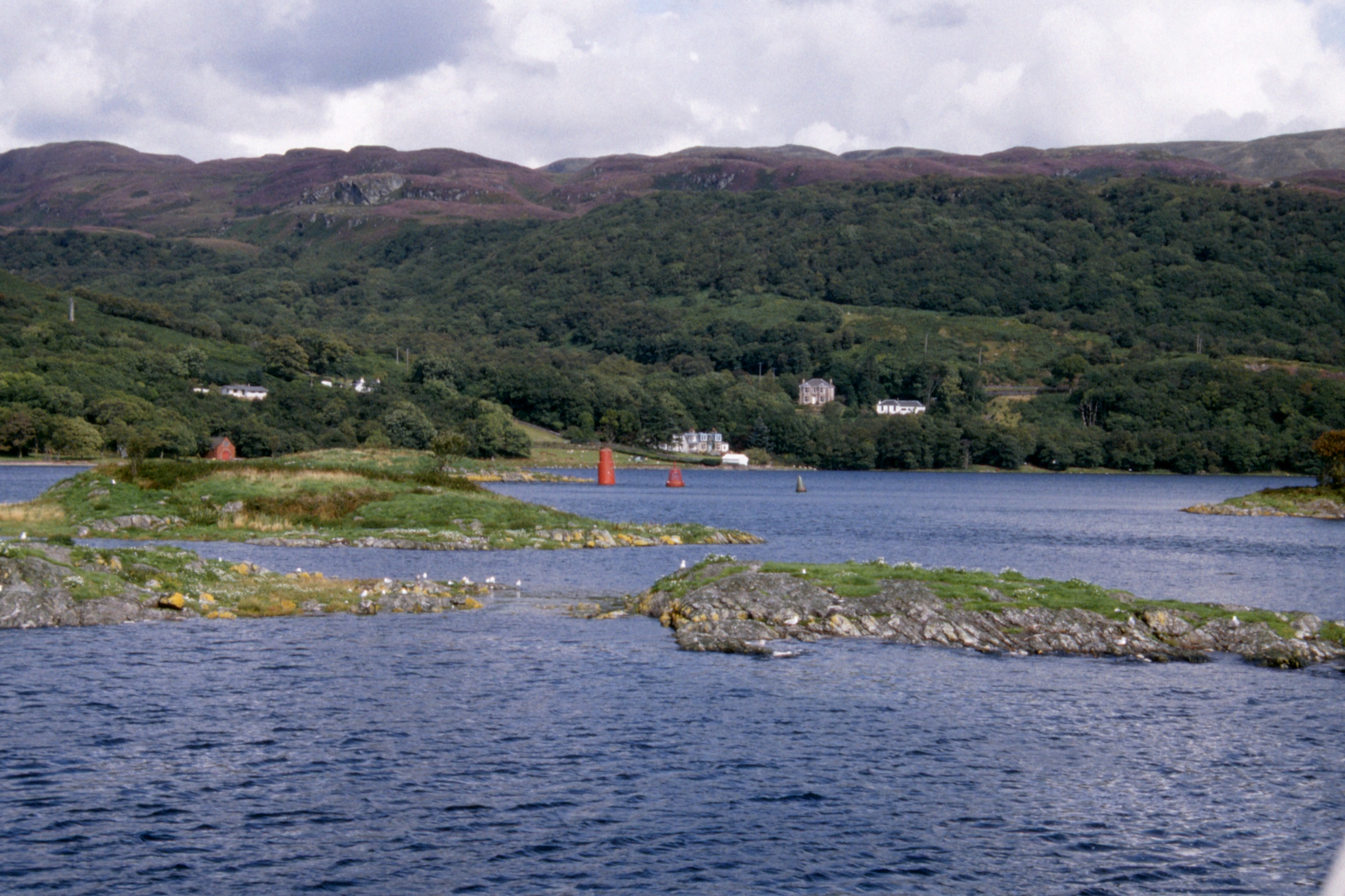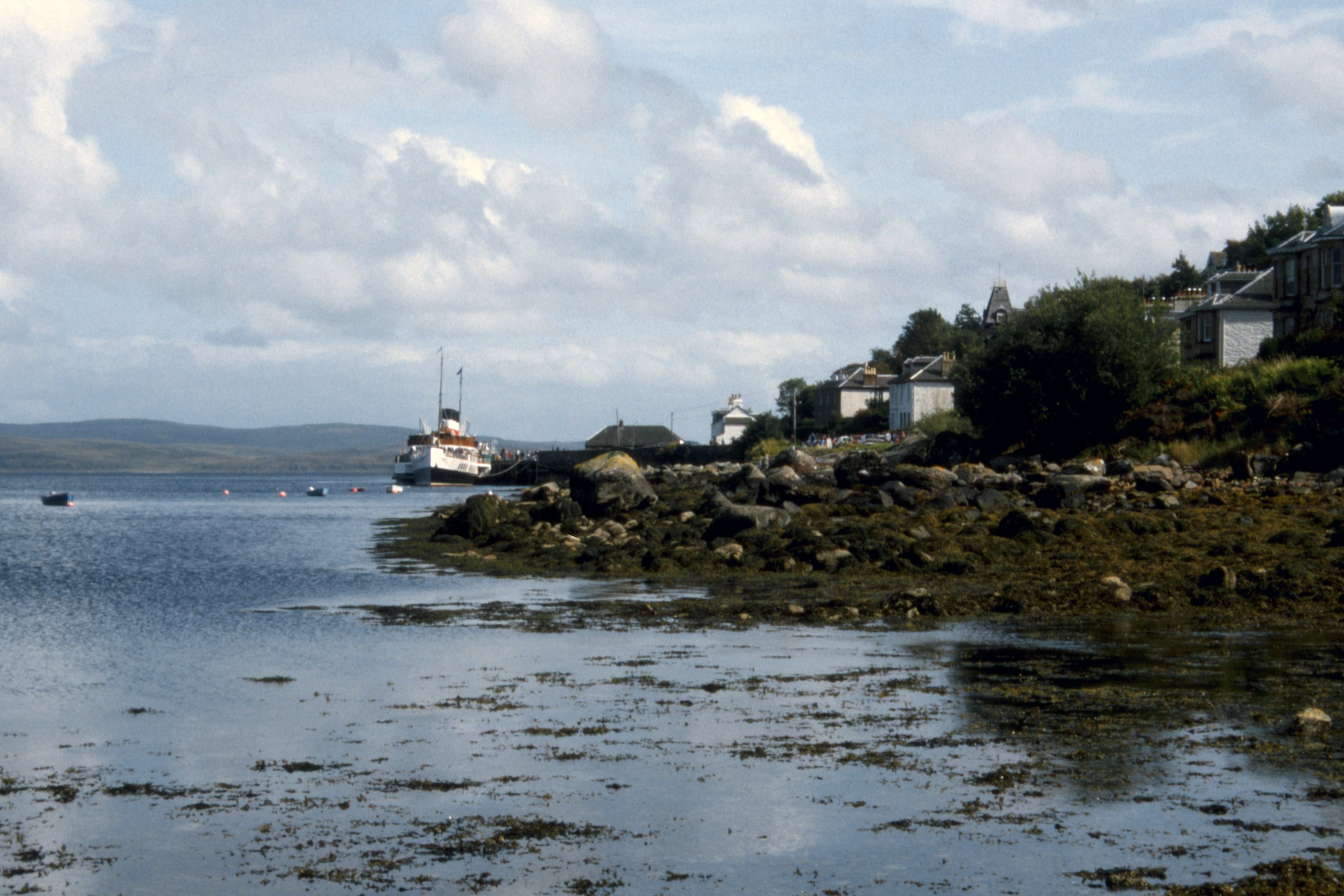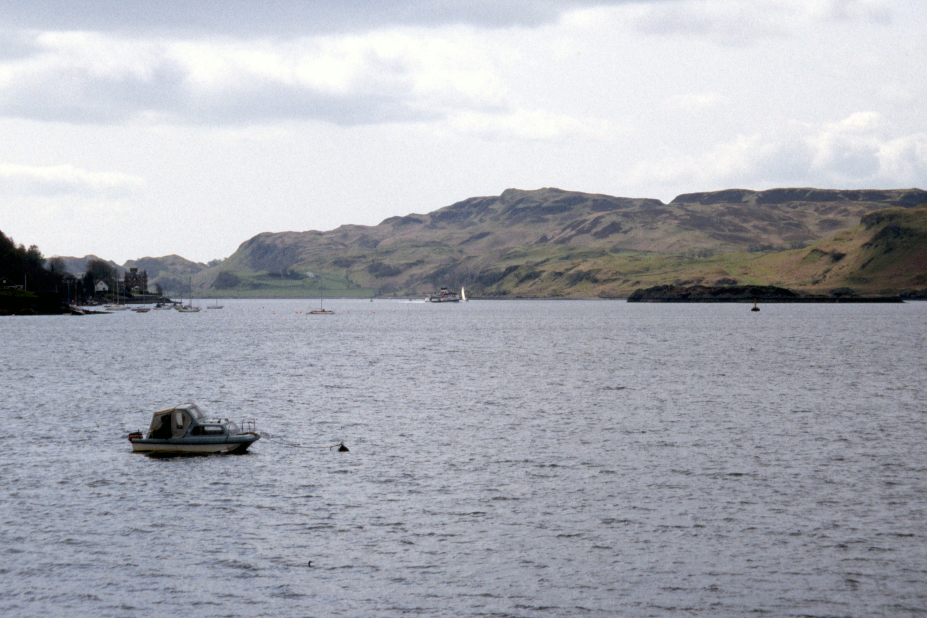 Day 1 - Friday, May 1 Waverley sailed at 10:00 for Port Ellen and Oban. The day was sunny but there was a strong wind and a fair swell. There was some speculation as to whether we could round the Mull, or would we be deposited at Campbeltown. Hopes rose when it was clear that we were not heading for Campbeltown but after we passed the Sanda Islands and approached the Mull, the swell increased and Captain Neill decided that to continue would be too uncomfortable both for the passengers and for the ship. So we had a few exciting minutes as we turned back but then a fairly smooth passage to Campbeltown where we arrived at 16:00. We had to wait until the school buses returned before we could continue by coach at 16:40 and after a brief stop at the public toilets in Lochgilphead (17:55 - 18:05), we arrived at Oban at 19:00 where some of us booked in to the Rowan Tree Hotel for 4 nights (�104).