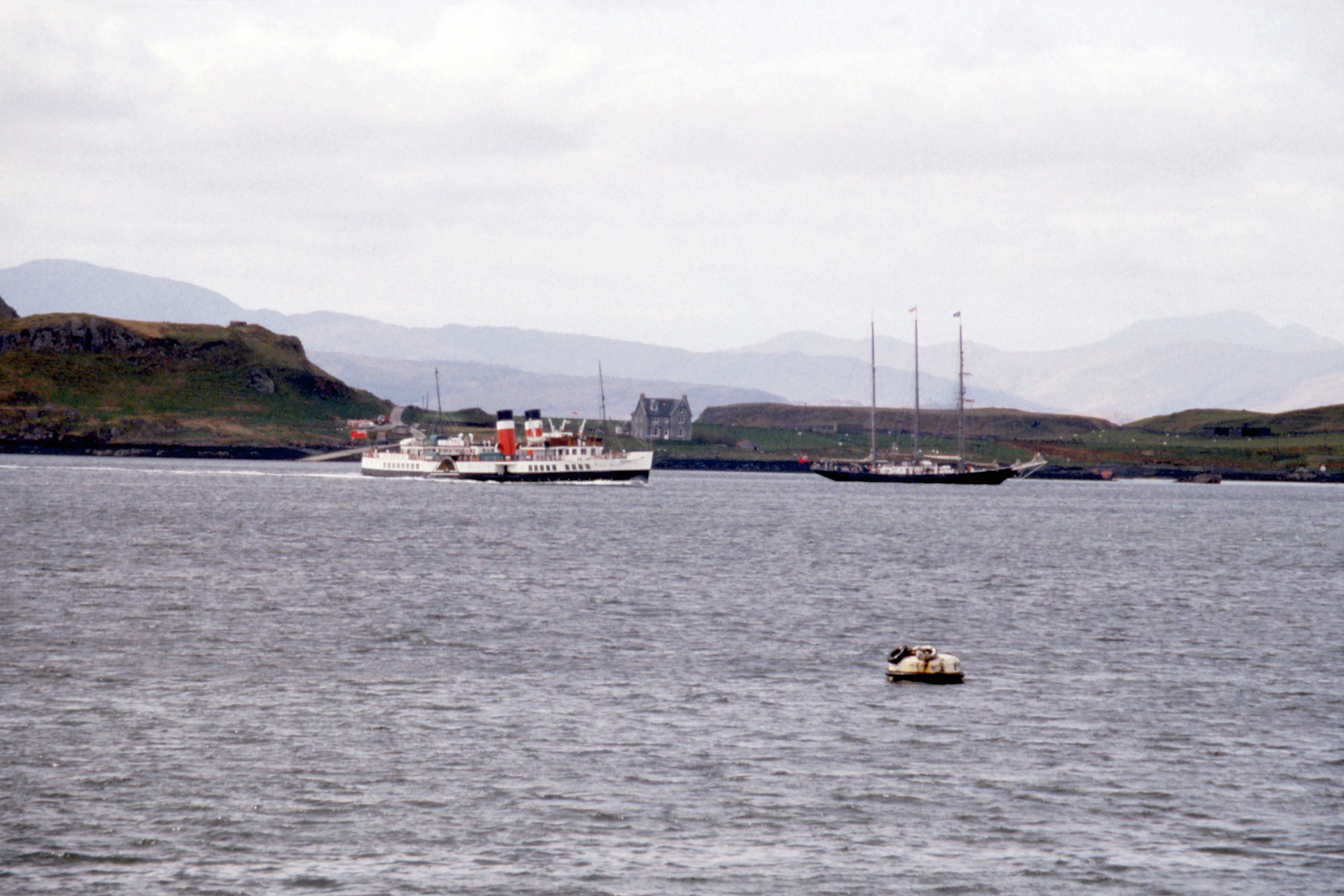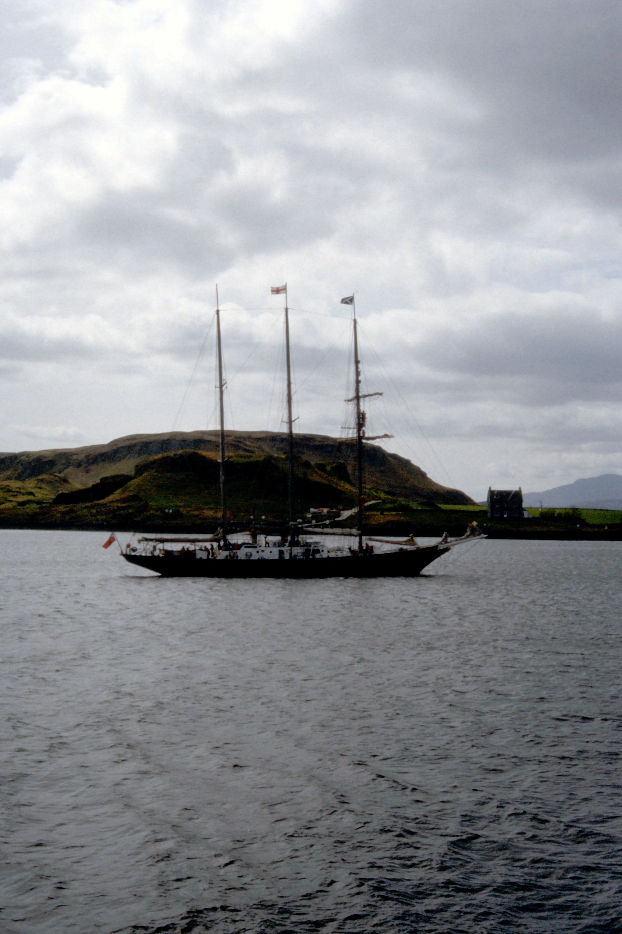 Isle of Mull passing the end of Kerrera | Sail Training Ship Malcolm Millar leaving the North Pier |