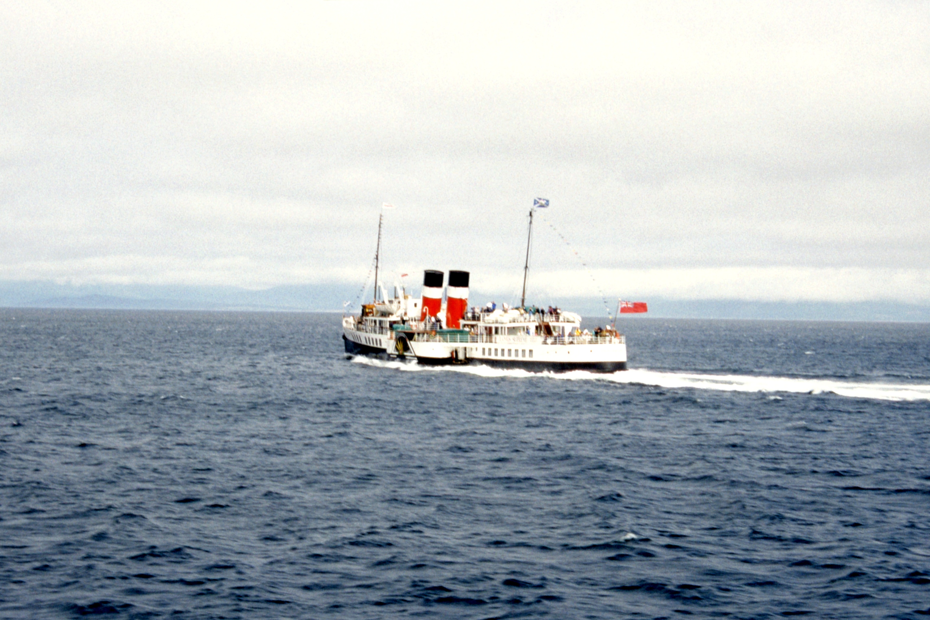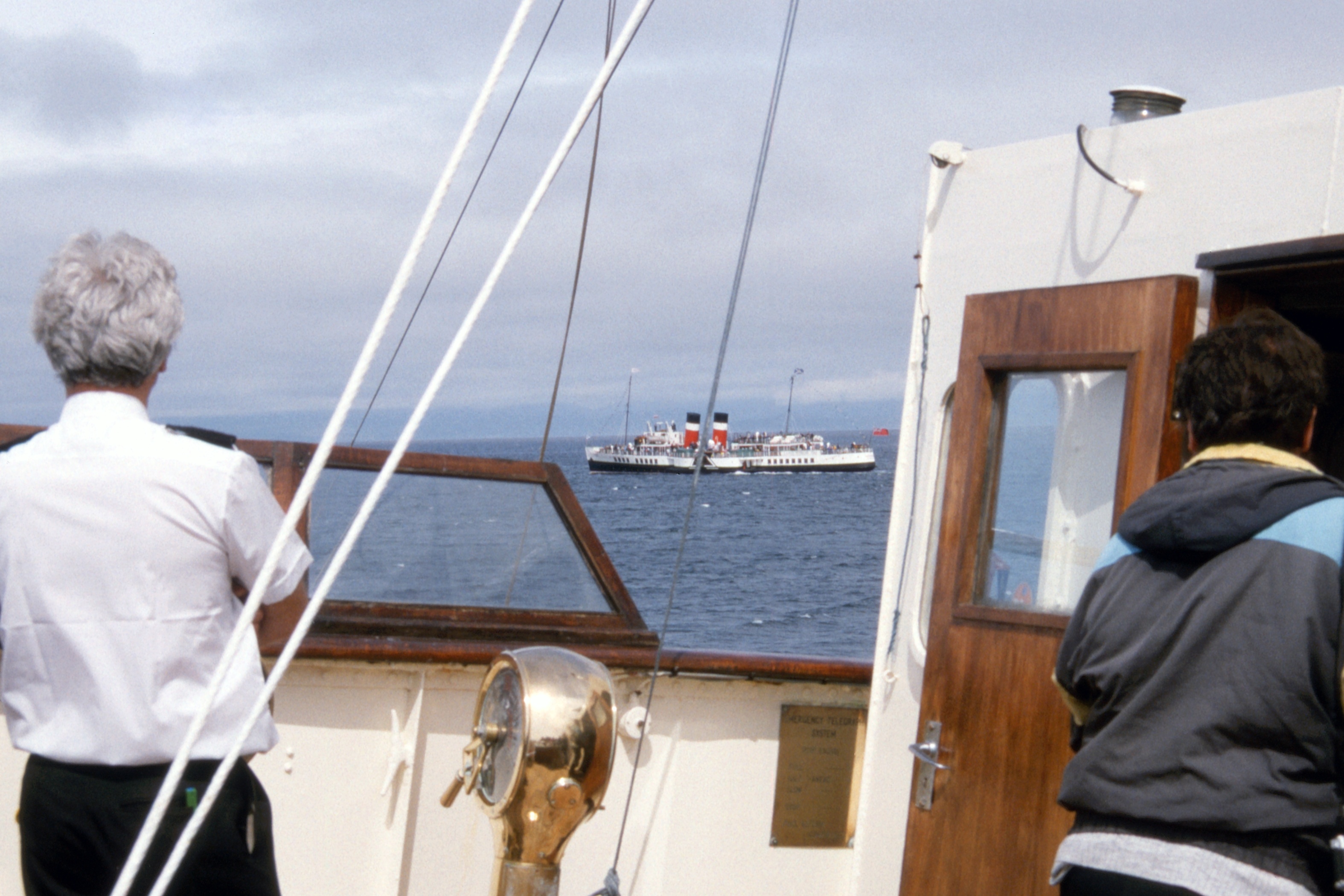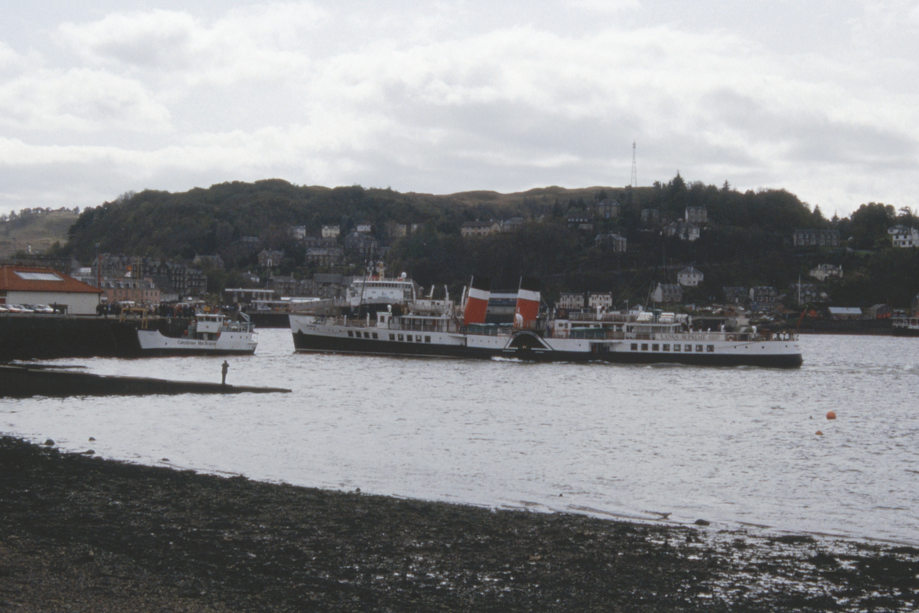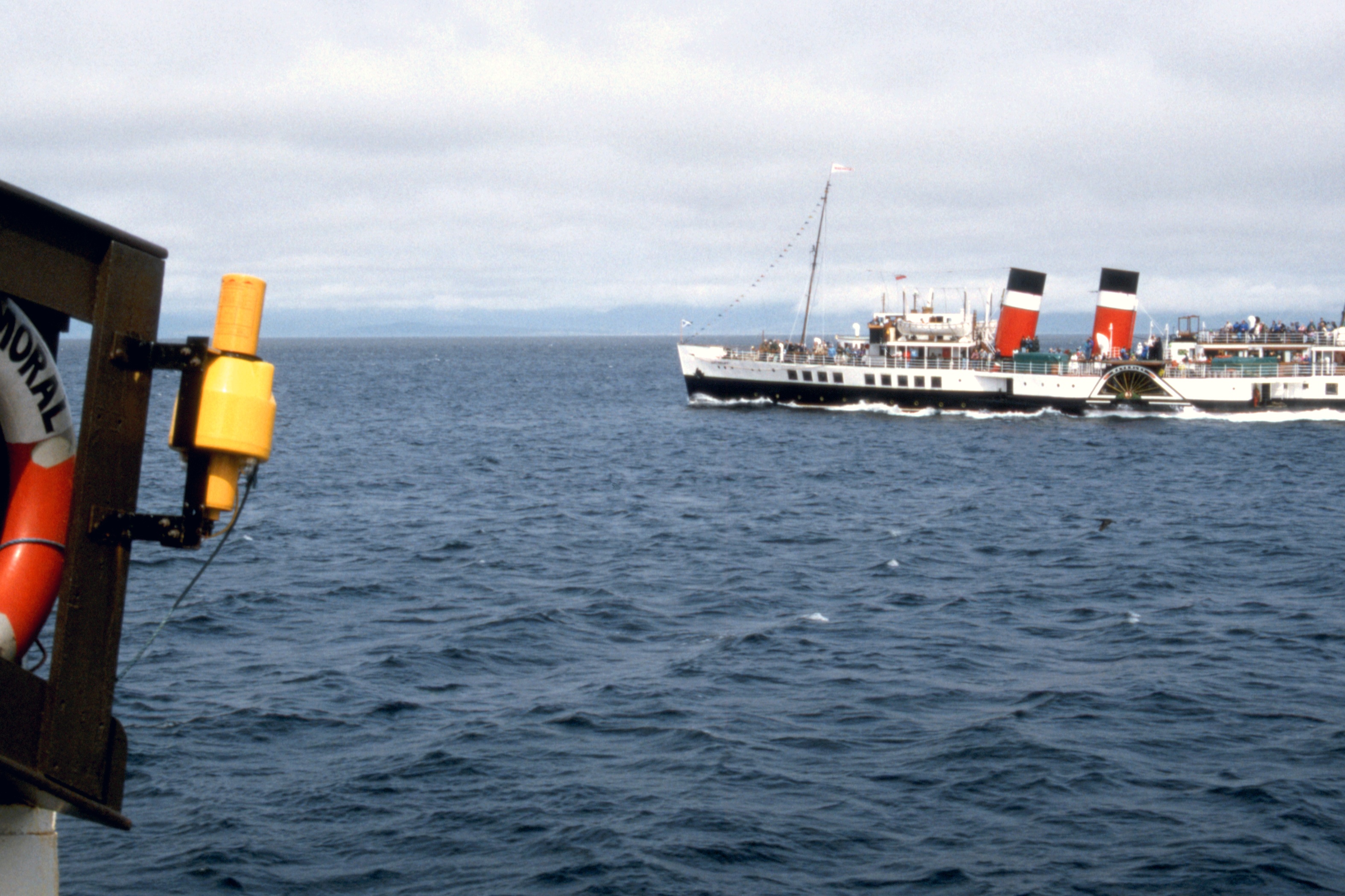 Waverley sailed at 10:30 for Dunoon (12:40), Rothesay (13:30), Largs (14:10) and Millport (14:40) for a cruise round Bute returning to Rothesay (16:45), Millport (17:45), Largs (18:15), Dunoon (19:00) and arriving back at Glasgow on time at 21:15. I stayed aboard all day and there can't have been much of interest if all I've got is these two.