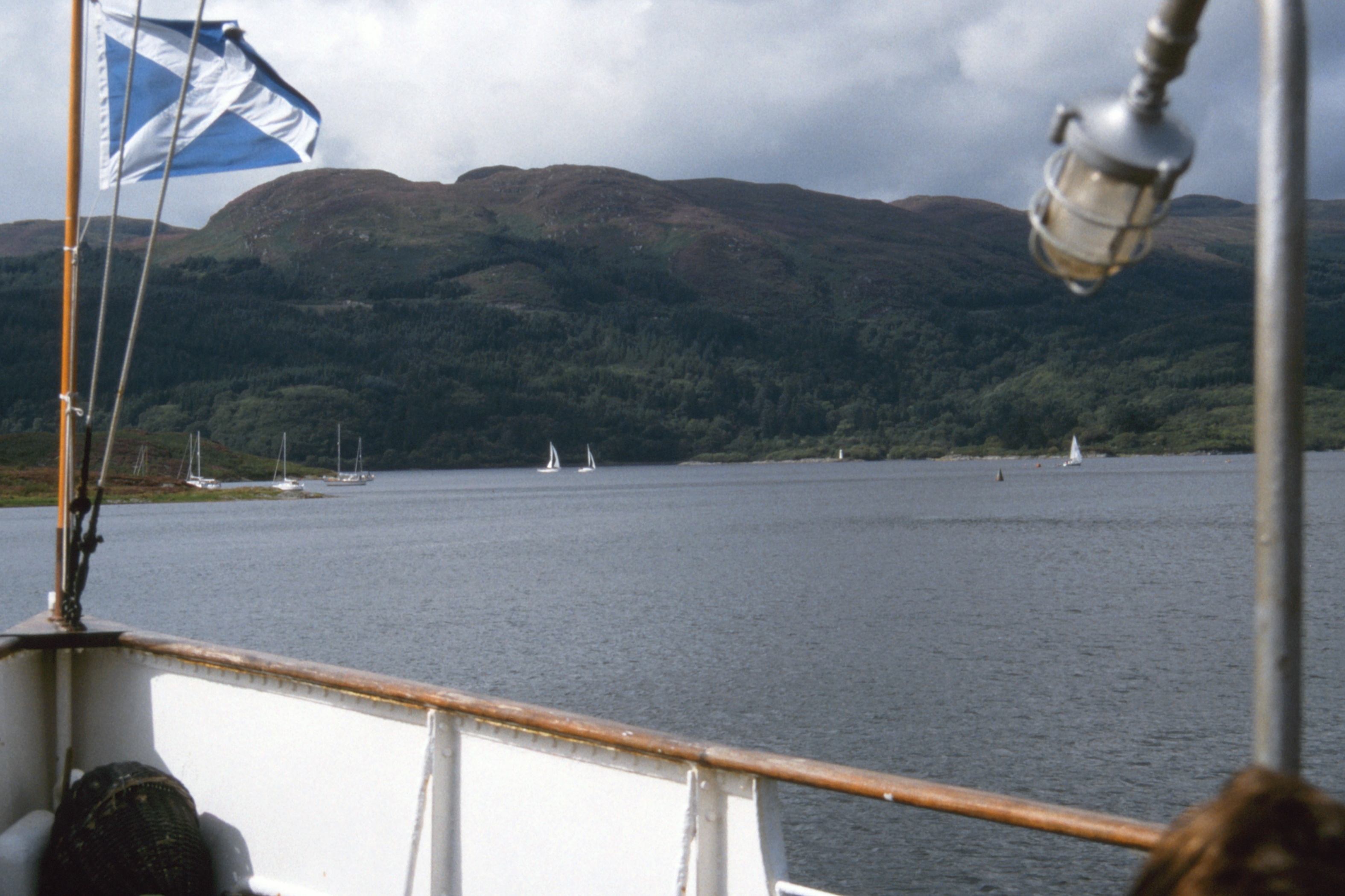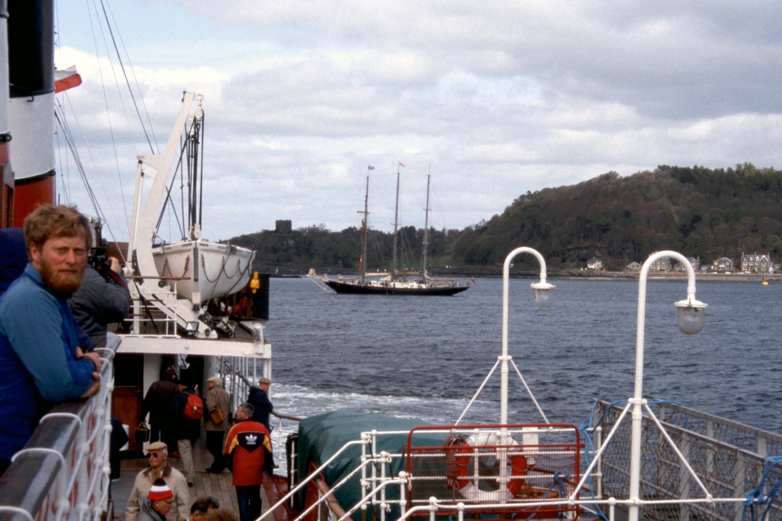 Day 2 - Saturday, May 2 There was no sign of Waverley in the morning, there would be no cruise to Tobermory and Mallaig so the most acceptable alternative to pass the time was a non-landing cruise on CalMac's Isle of Mull at 10:00 to Craignure (10:40 - 11:05) returning at 11:50 (�4.25). By which time the word was out that Waverley had sailed from Campbeltown in the early hours, had rounded the Mull and was well on her way. In due course she appeared and we enjoyed a shortened cruise leaving Oban at 14:10 for Tobermory, Ardnamurchan and Loch Sunart, returning to Oban at 21:30.