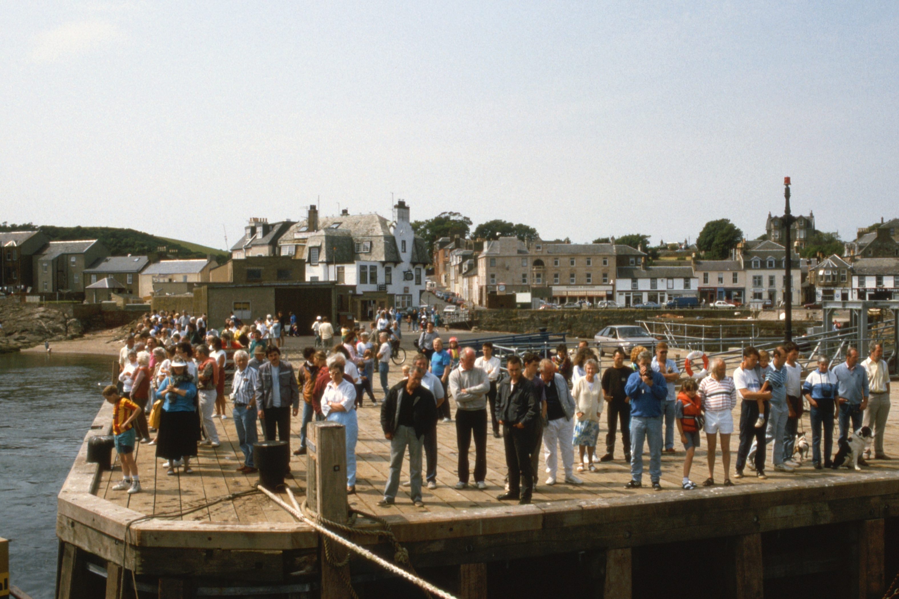 The crowd on Millport Pier as Waverley departs | Millport astern of the Waverley |