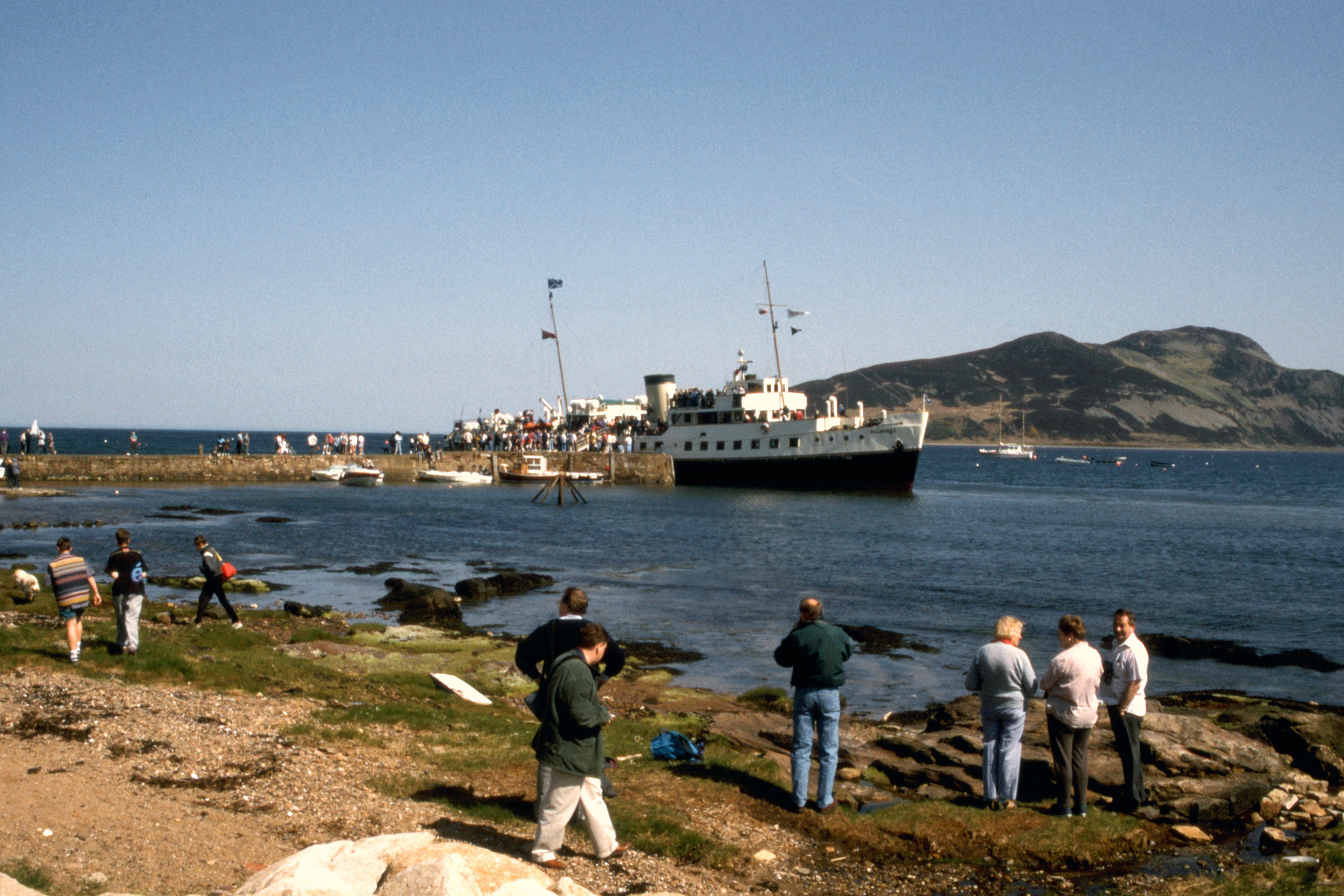 Balmoral at Lamlash Pier, Holy Isle beyond |