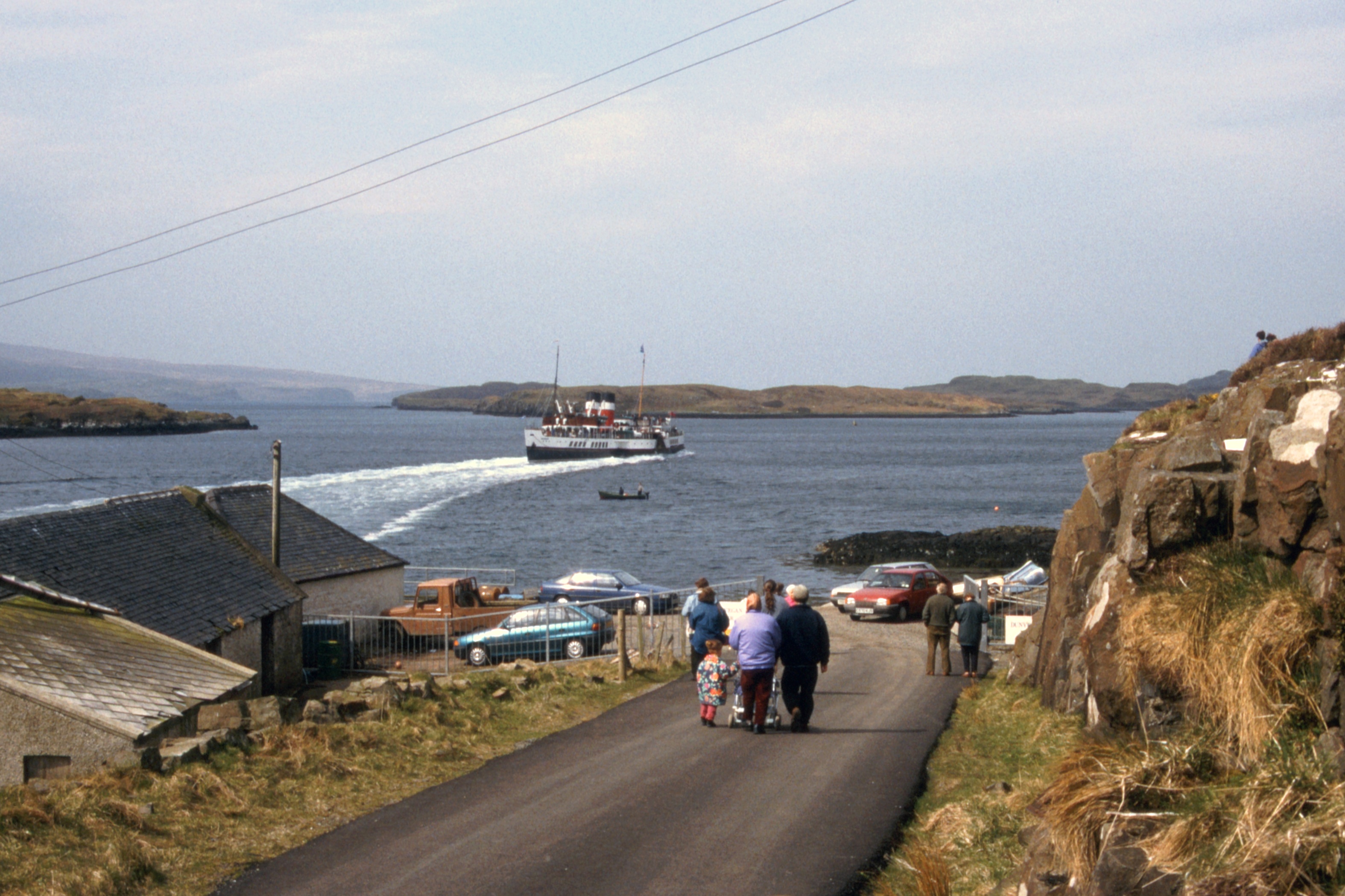 Day 2 - Saturday, April 22 Waverley sailed at 07:00, calling at Kyle of Lochalsh (12:00) and Broadford (13:00) followed by a cruise into Loch Carron, returning to Broadford (16:15) and Kyle (17:00) before heading for Portree, arriving there at 18:45. Dave and I booked into the Bosville Hotel for 5 nights B&B at �25 per night before joining Waverley again at 19:15 for an evening cruise to view the Crowlin Isles and Applecross, returning to Portree at 22:10. Again it had been a fine day and I know not why there are no photos.