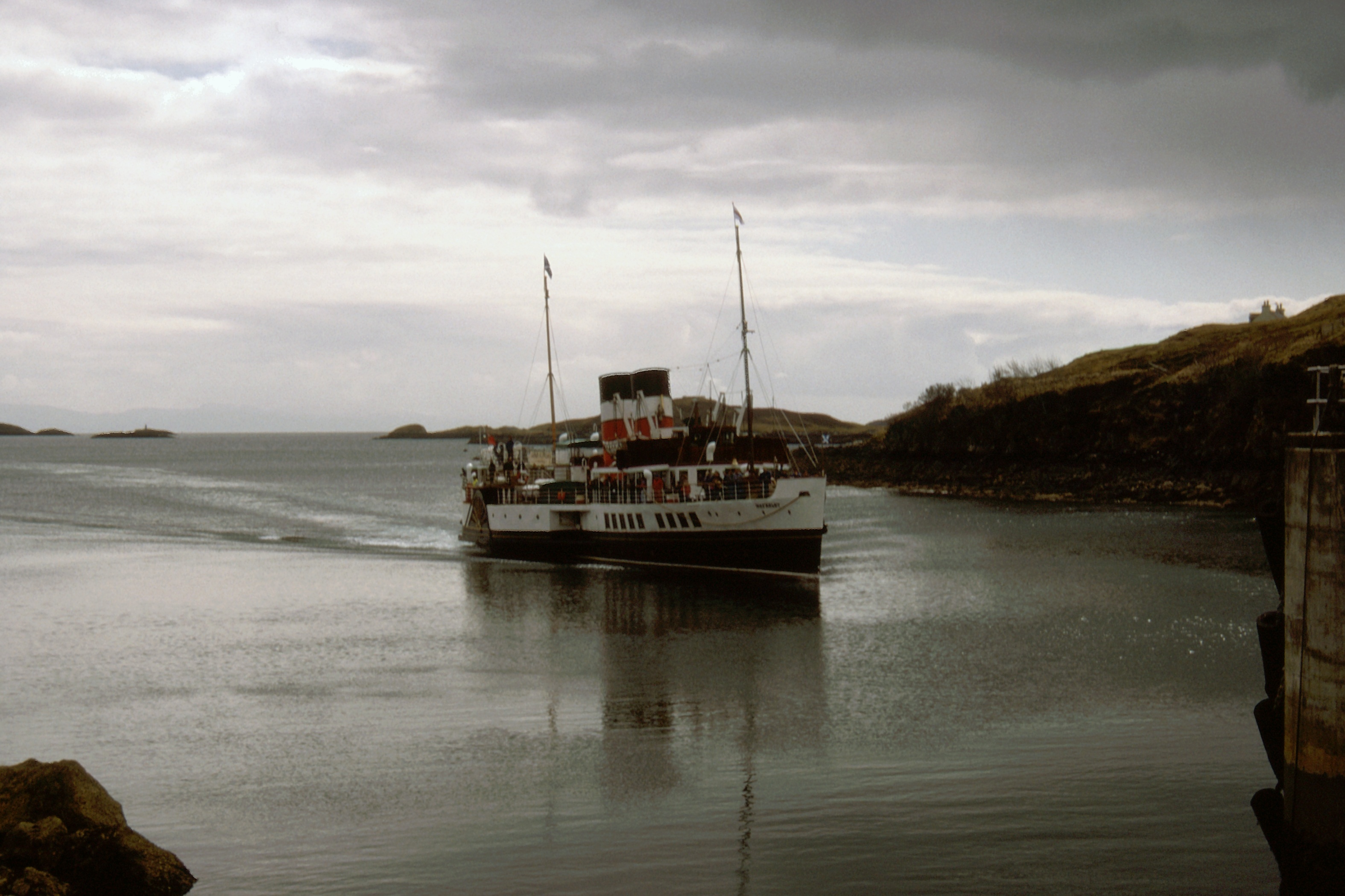 Day 1 - Friday, April 21 Waverley sailed from Glasgow at 08:15 calling at Largs (10:45), Campbeltown (13:45 - 14:30) and Crinan (19:38 - 20:00) before arriving at Oban ten minutes late at 21:40. There I headed off for one night in the Youth Hostel (�7.55 plus 60p for sheets). I don't know why I took no photos as it was a very fine clear day.