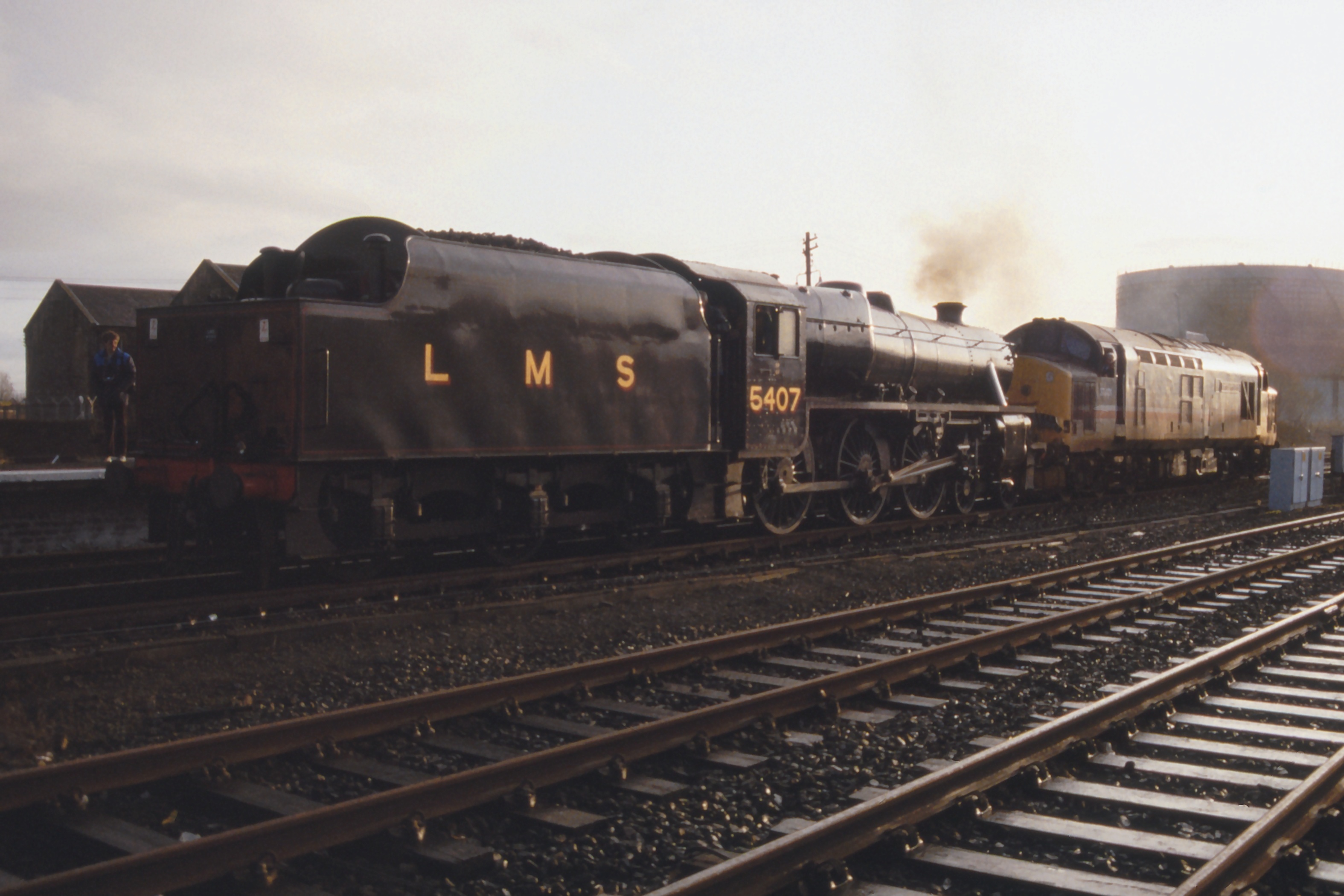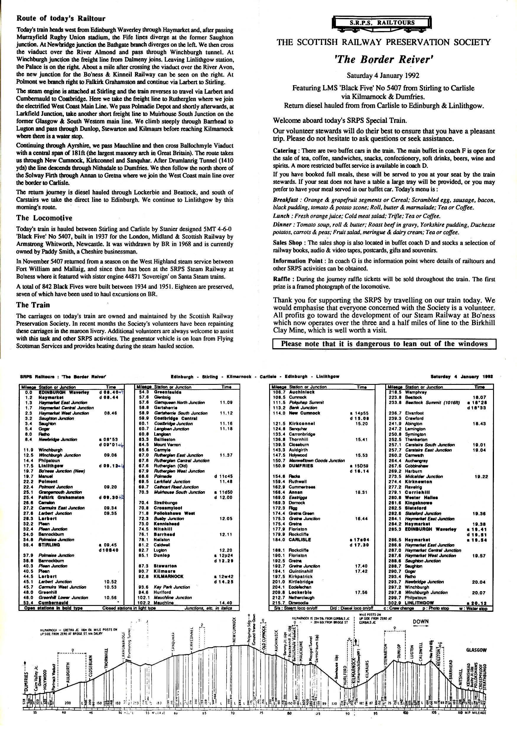 Depart from Edinburgh at 08:49 (I had been staying with Dave for the New Year) behind 37401 "Mary Queen of Scots" and travelled via Linlithgow and Larbert to Stirling (09:50 - 10:40) where 5407 was inserted behind the diesel. Then on via Cumbernauld and Carmyle before dropping 37401 near Strathbungo and steaming on to Kilmarnock (12:56 - 14:03) and Dumfries (16:00 - 16:15) where we picked up 47475 for the last leg into Carlisle (17:08 - 17:30) where 37401 awaited us for the return by the main line over Beatock, turn right at Carstairs and so to Waverley at 19:20 where I got off and caught the 21:30 to Glasgow.