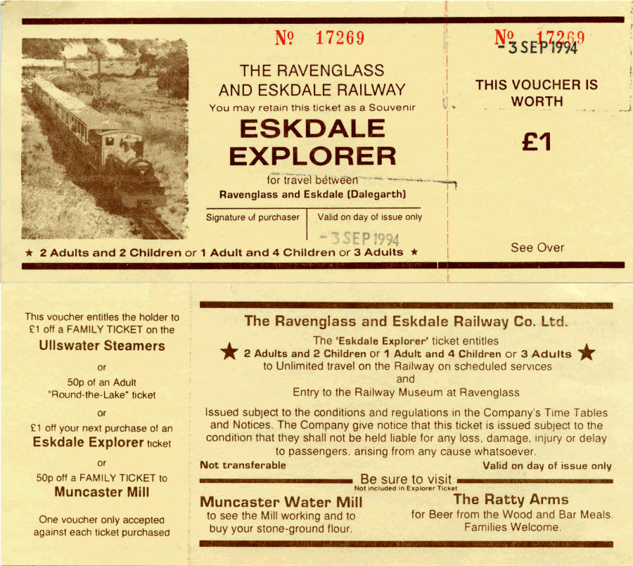 In the company of friends, I caught the 08:22 train (to Bournemouth I think - it was a 125) from Glasgow having paid �25 for a SuperSaver Return to Barrow in Furness, which allowed travel round the Cumbrian Coast route. Having arrived in Lancaster at 10:44, we had time for a small refreshment before catching the 12:01 to Barrow where we had 5 minutes to change trains for Ravenglass arriving there at 13:50.