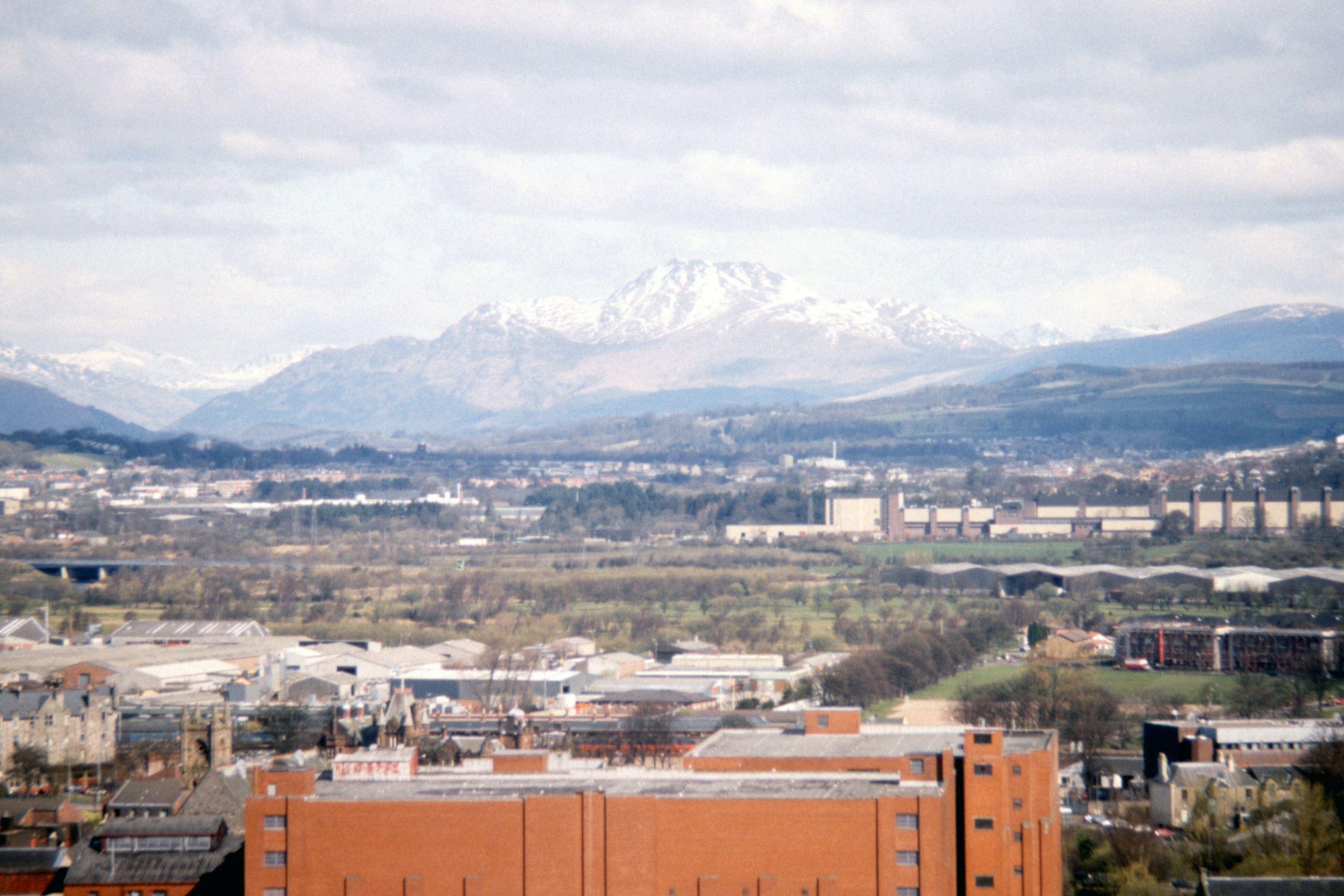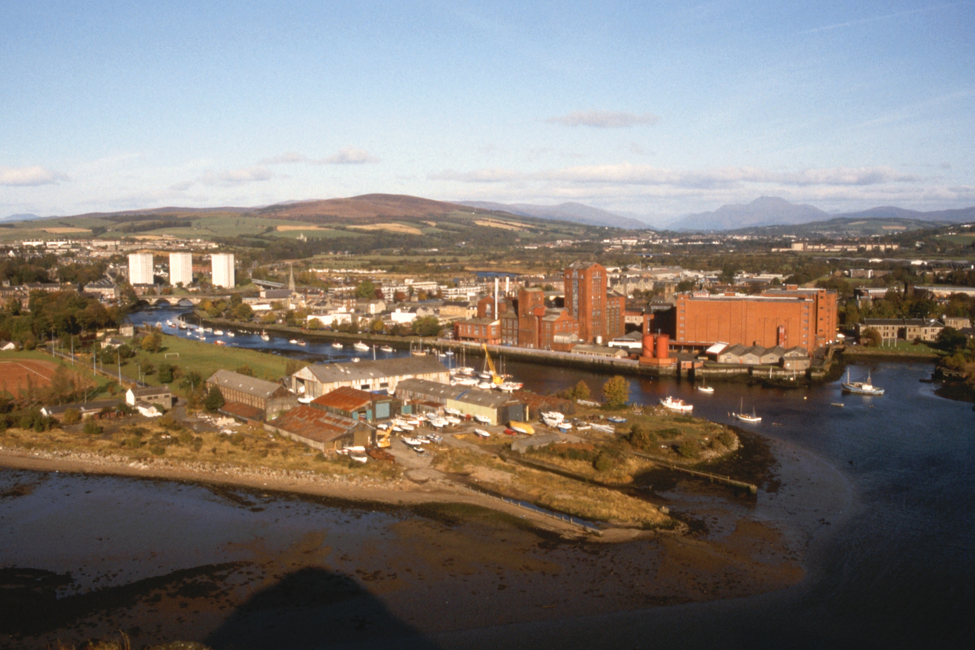 Downstream from Dumbarton Rock | The Leven Valley and Ben Lomond beyond the Hiram Walker Distillery |