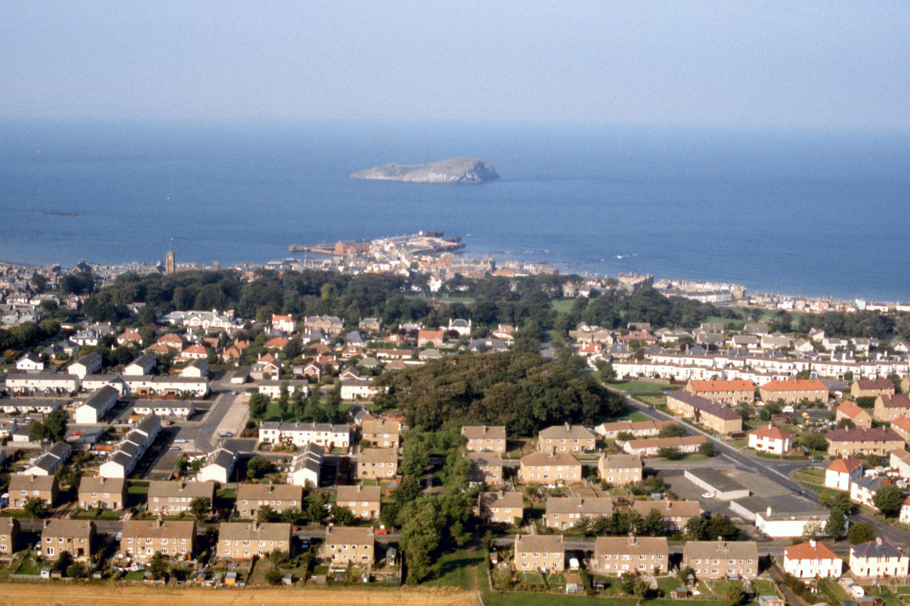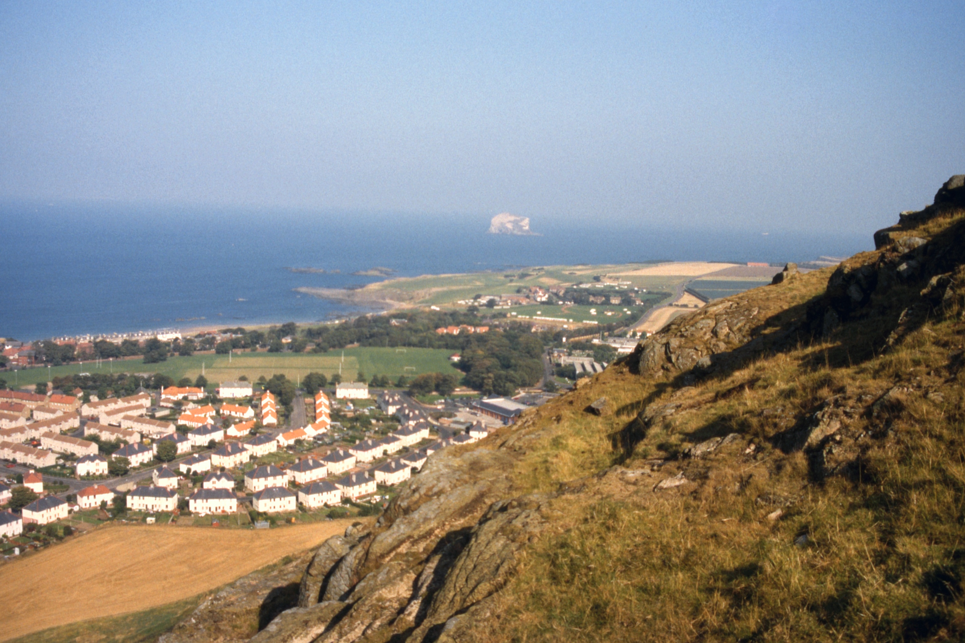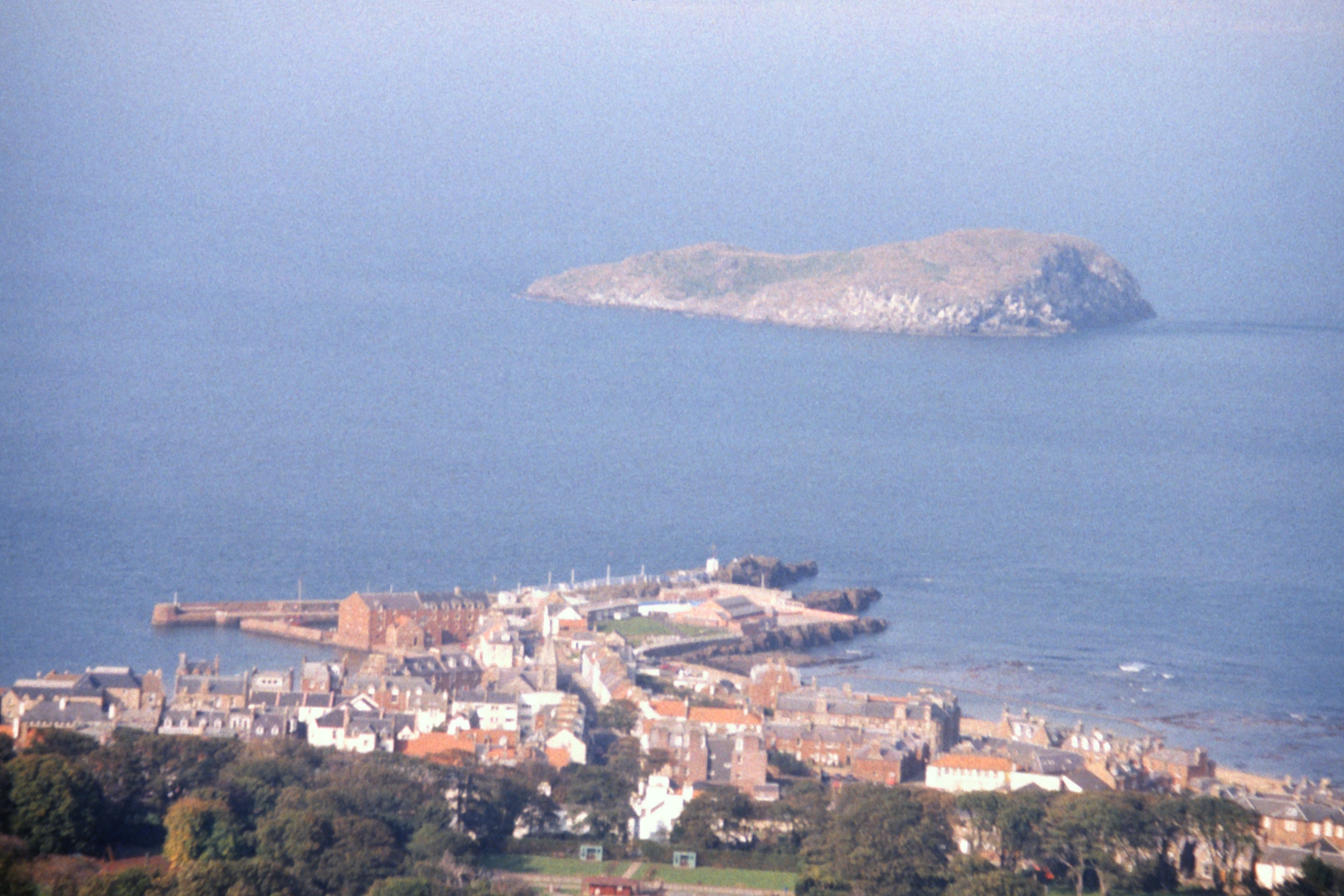 I caught the 09:30 Edinburgh train from Queen Street paying �11.50 for a cheap day return to North Berwick, changing at Edinburgh (10:13 - 10:47) to travel on 305502, one of several EMU sets acquired second-hand from down south when the North Berwick line was electrified as part of the East Coast Main Line electrification, and arrive in North Berwick at 11:12. I enquired at the Tourist Office about the possibility of following the shore out to Tantallon Castle and was advised against it as there was no path and at any time I could be cut off by the tide. So, having utilised the facilities of the local public convenience (recently voted best in Scotland, if not the UK) I set off at 11:45 for the three miles along the road arriving at the castle at 12:33. After an hour there, I returned to Berwick and ascended the Law from the east (30 minutes), took a few photos, and descended (12 minutes) into Berwick at 15:30.