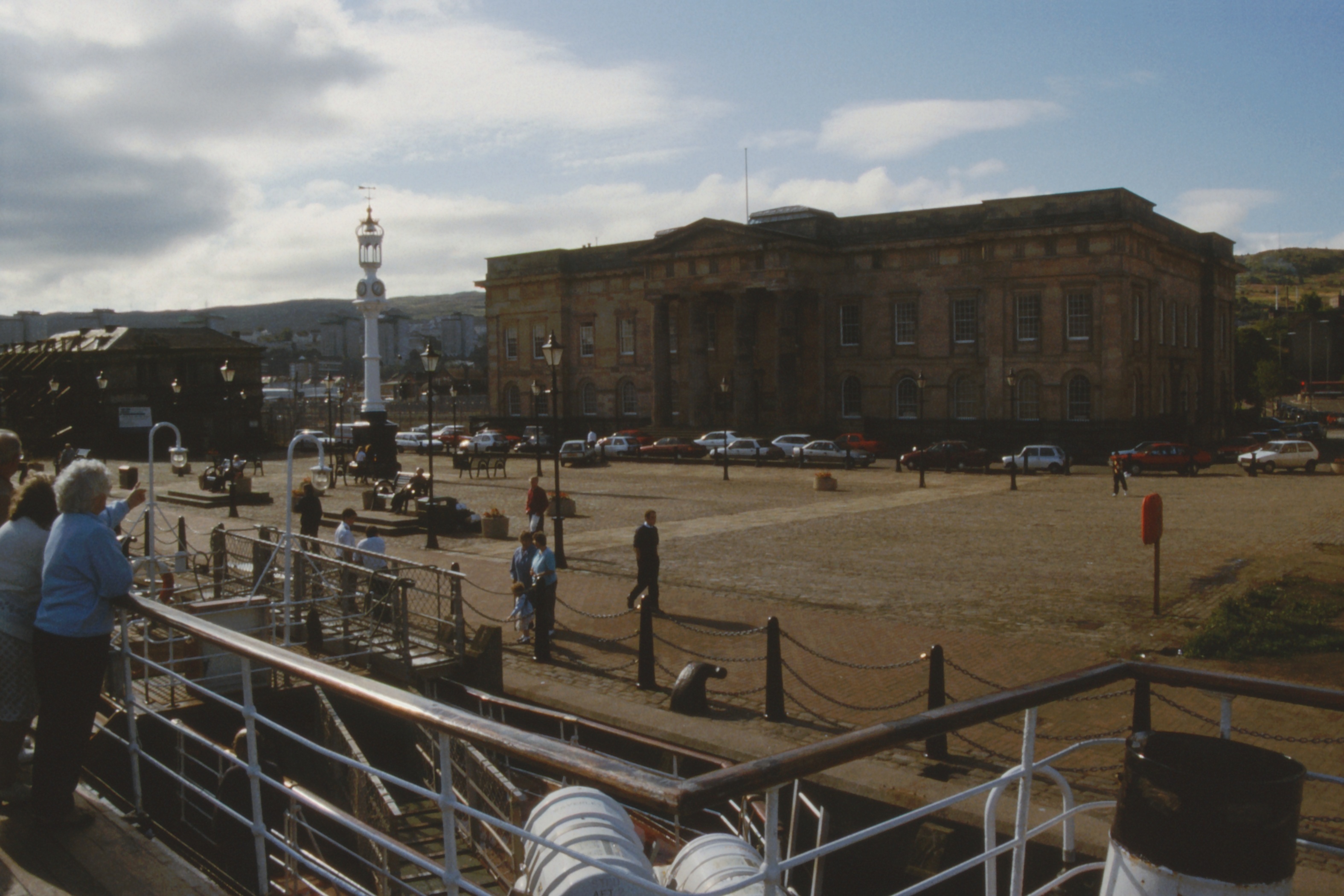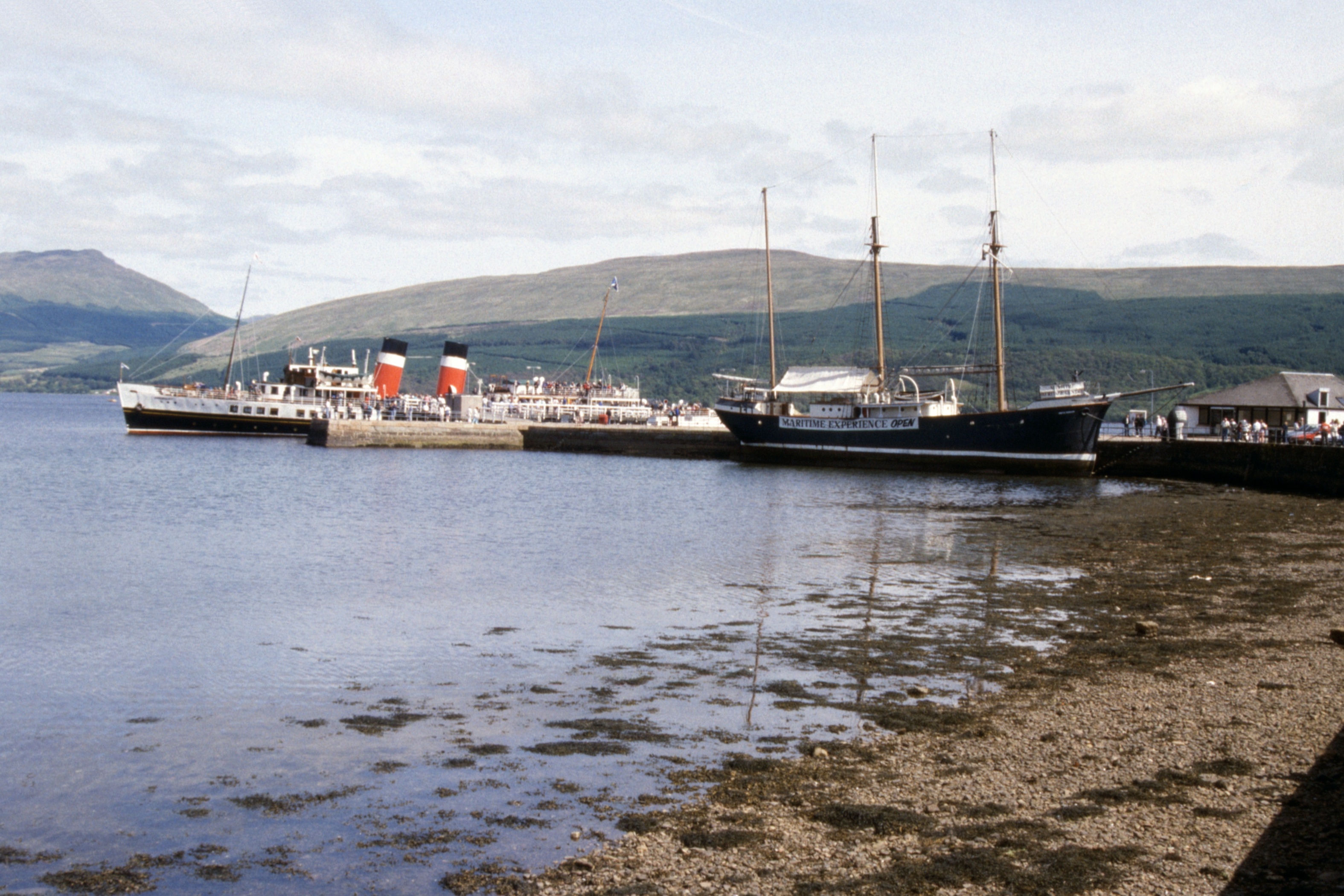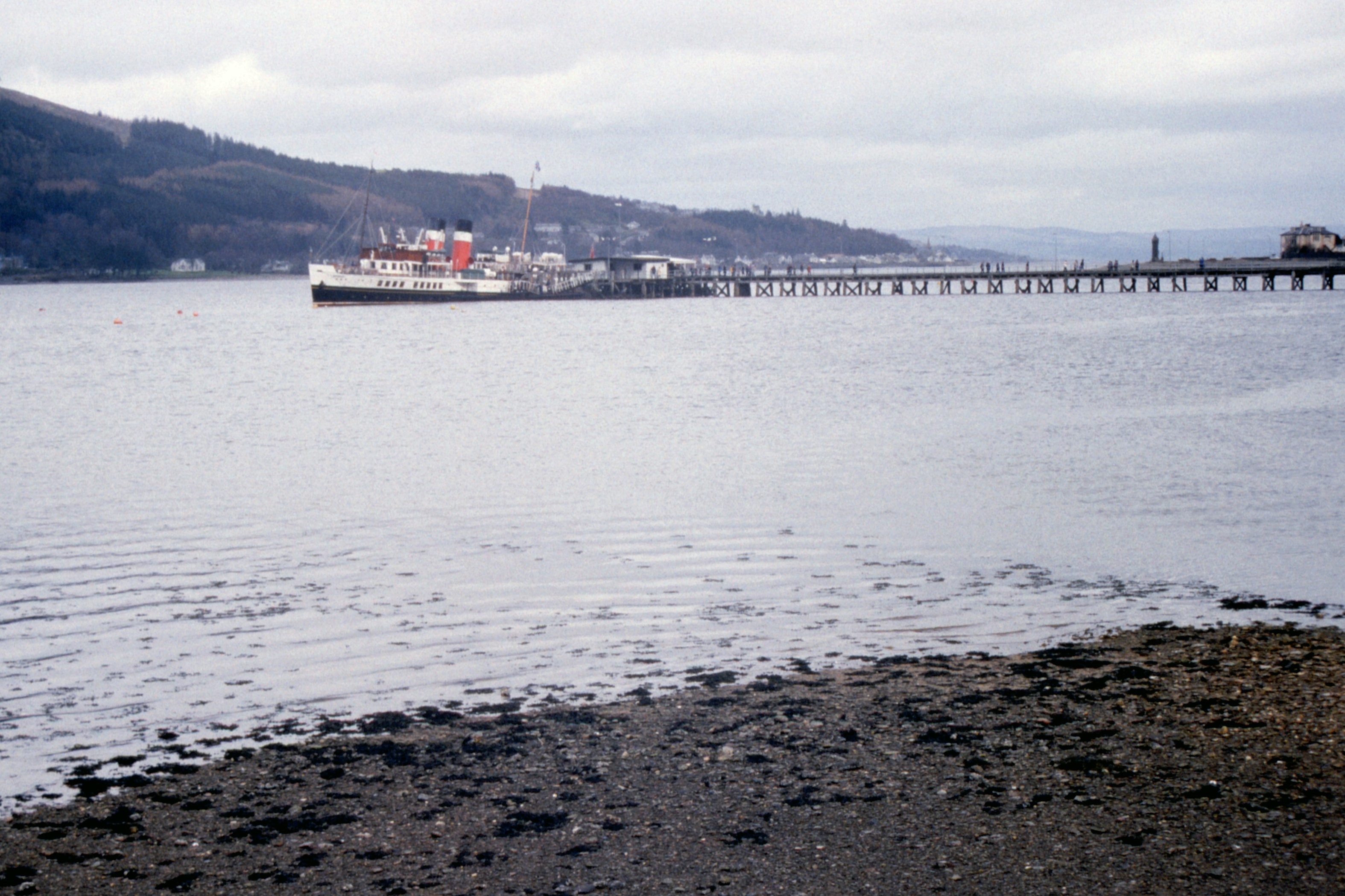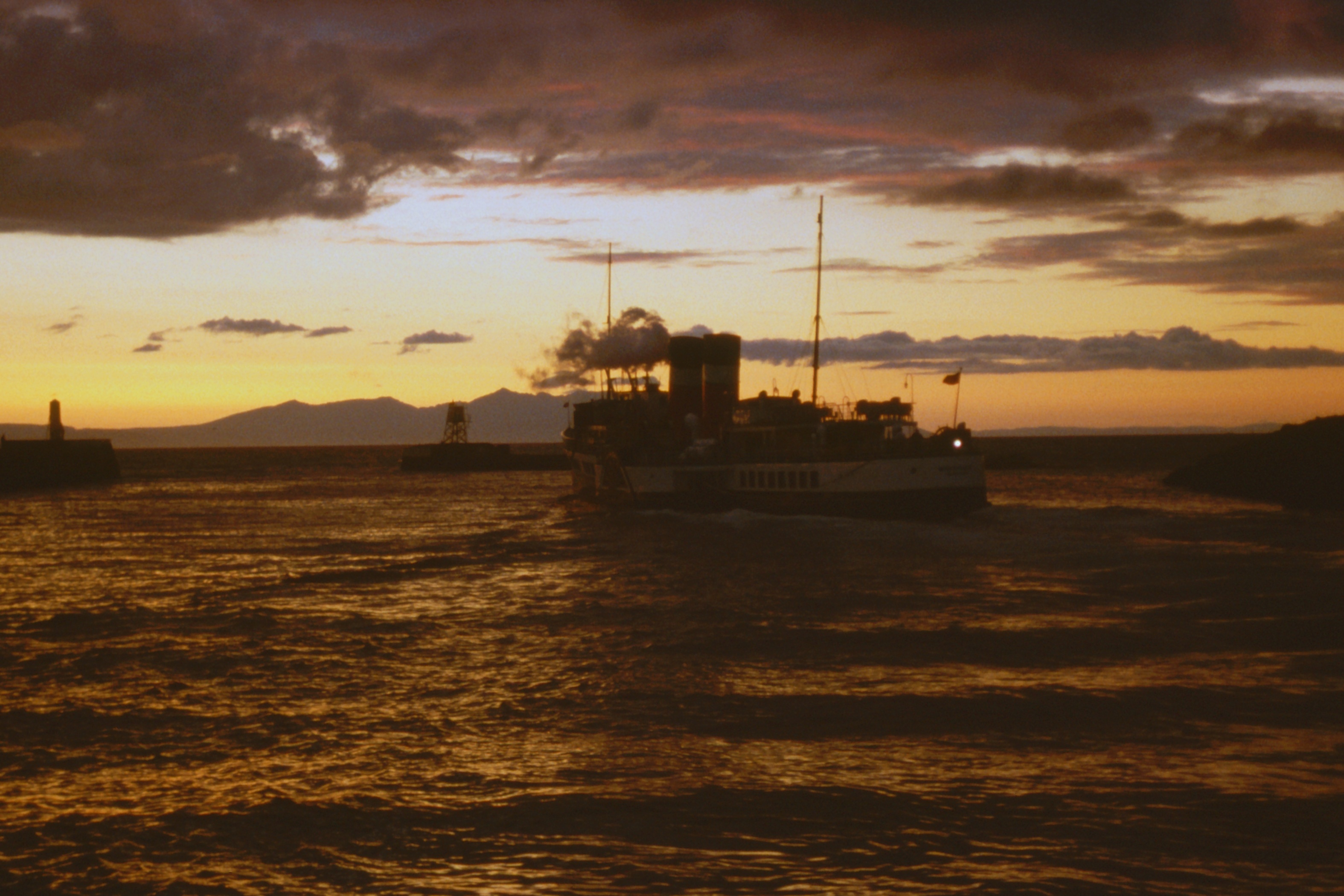 A solitary shot of Waverley arriving at Ayr for an unusual 11:00 departure calling at Troon (11:40), Millport (12:55), Largs (13:25), Rothesay (14:05) and Dunoon (14:50) followed by a cruise to Carrick Castle and Loch Long, returning to Dunoon (16:50), Rothesay (17:35), Largs (18:15), Millport (18:45) and Troon (19:55) before arriving back at Ayr at 20:40.