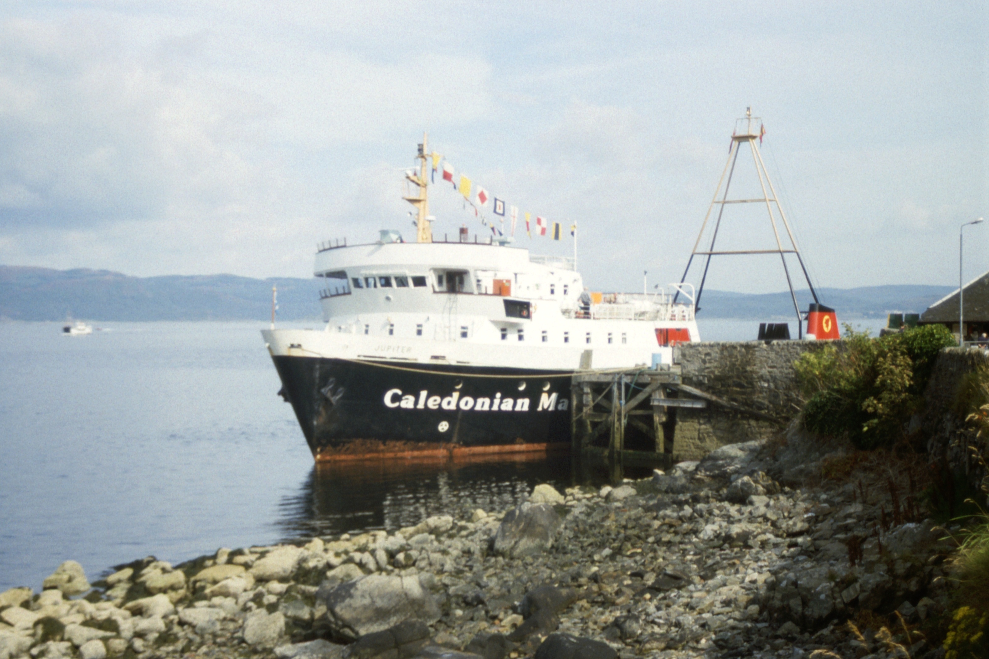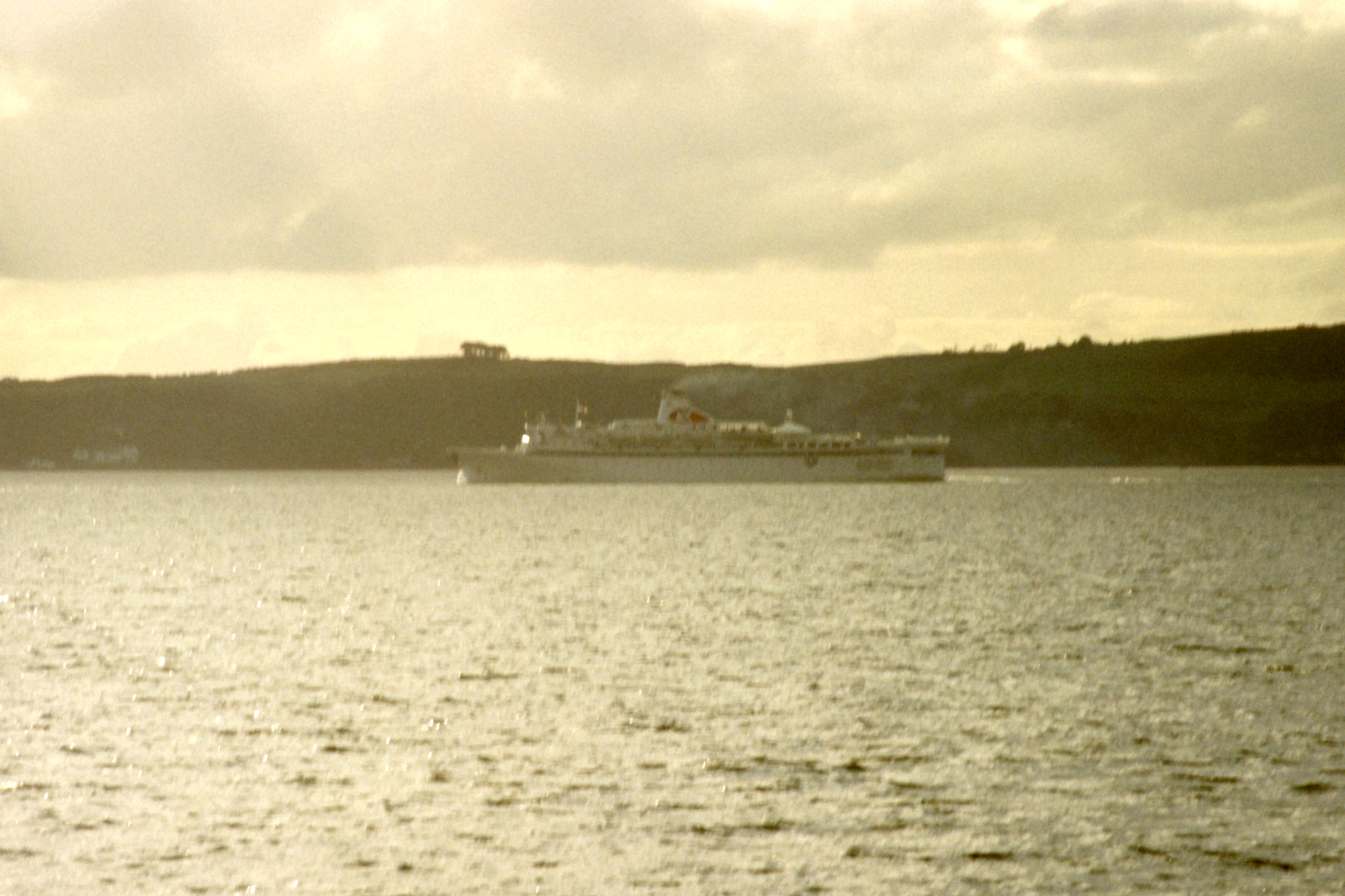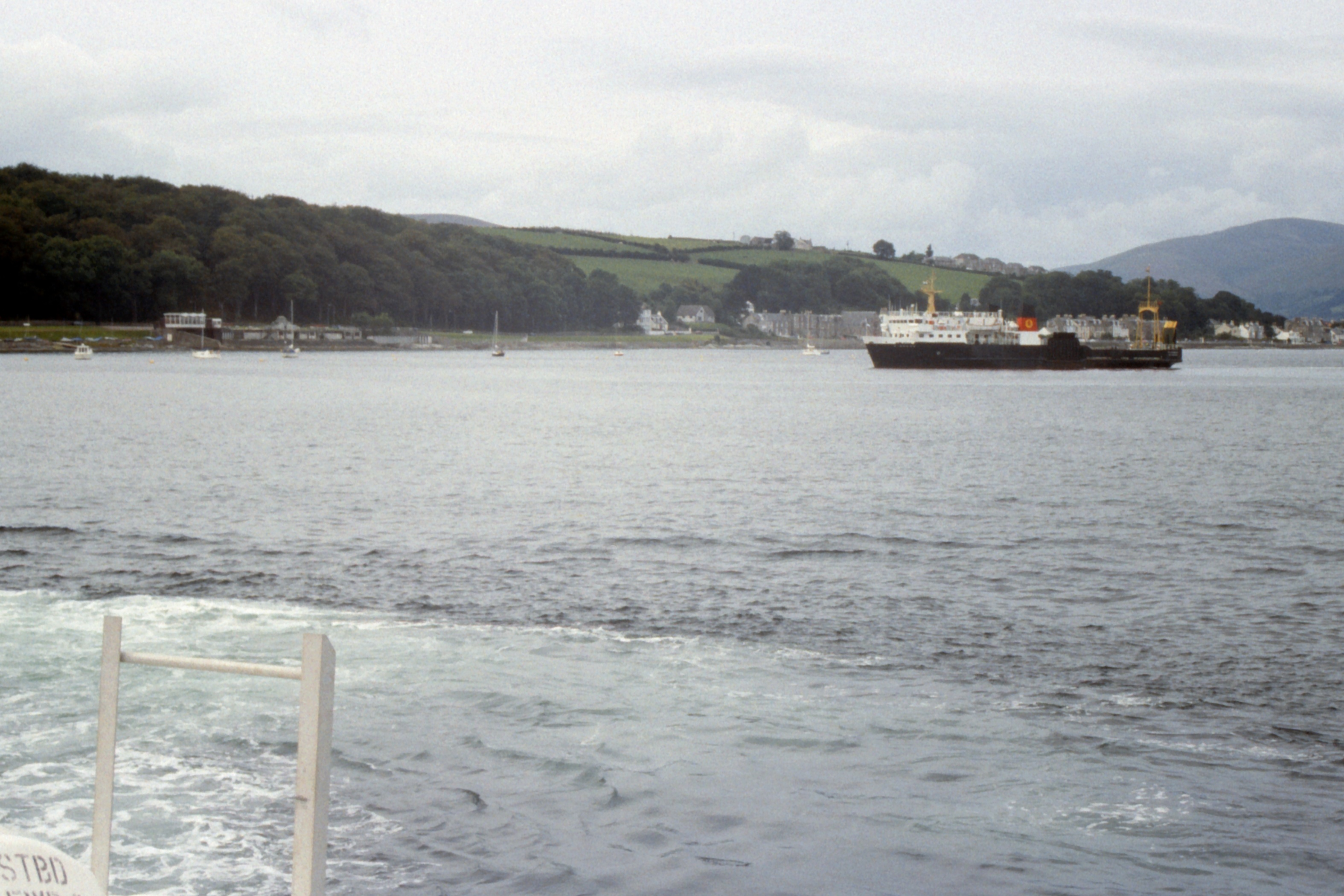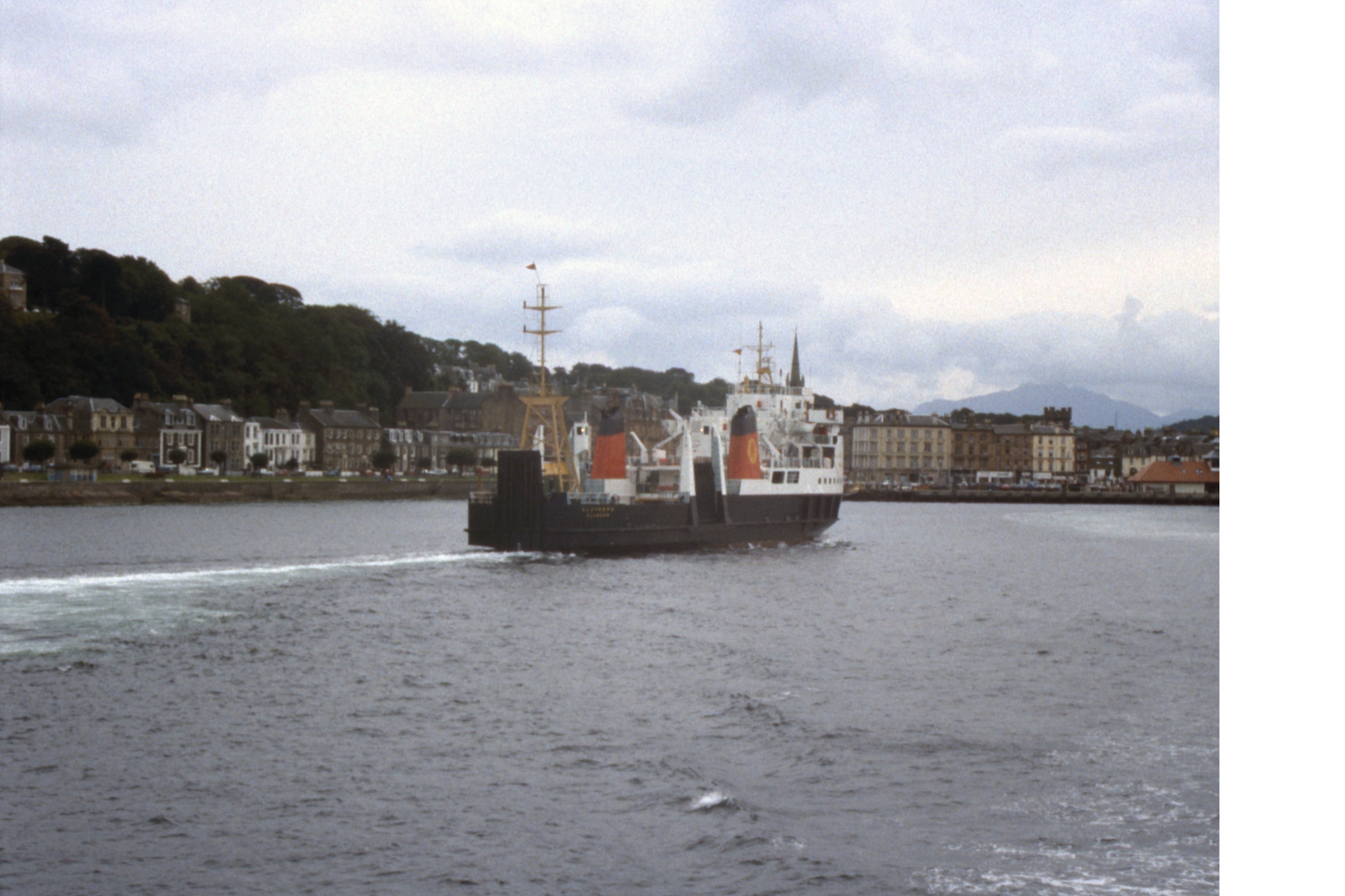 This should have been a standard Wednesday sail to Campbeltown but, presumably due to weather conditions (wind and waves), was diverted through the more sheltered waters between Brodick and Tarbert affording a rare (in those days) opportunity to view the north coast of Arran, hence the photograph of Lochranza.
