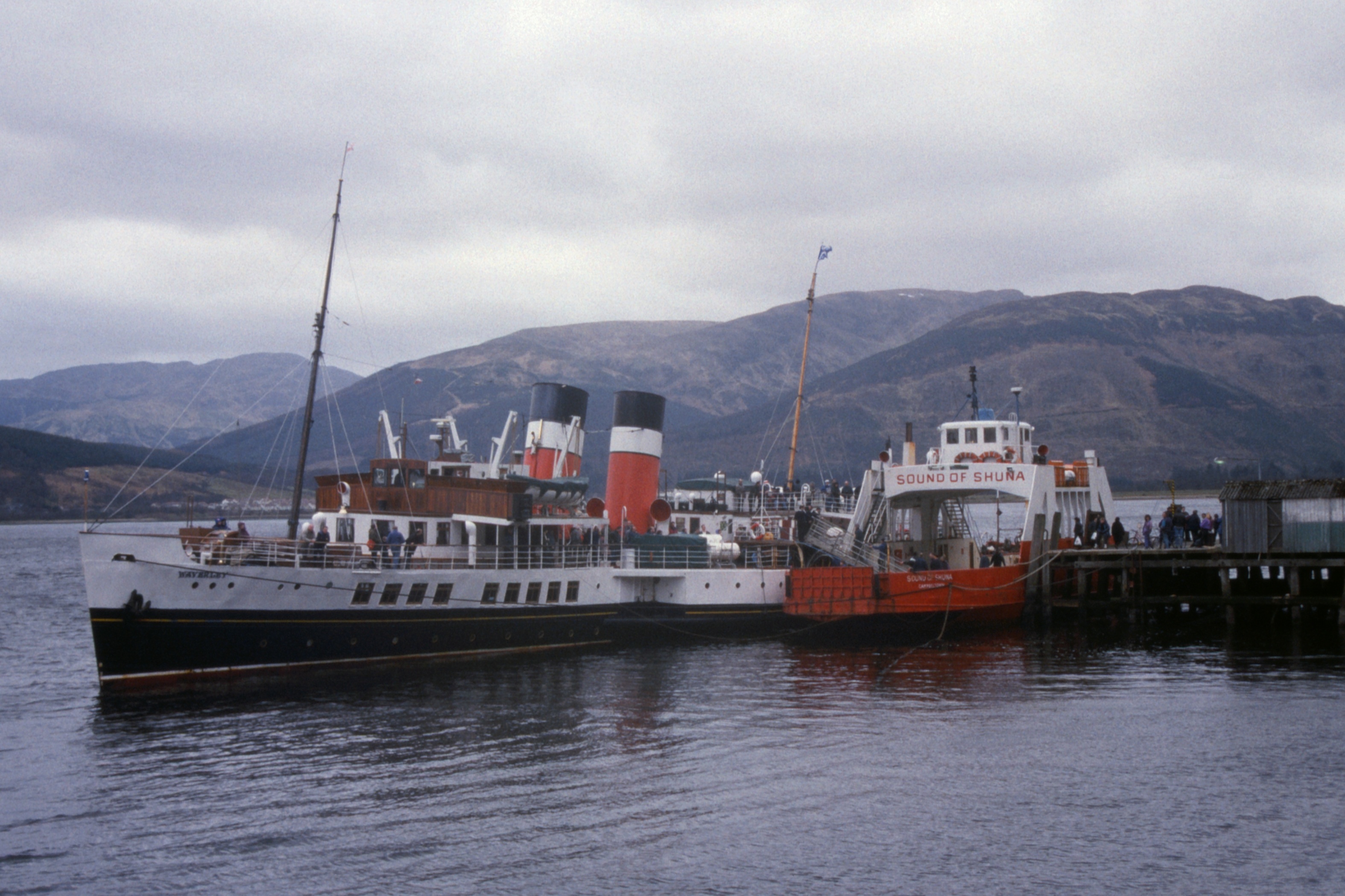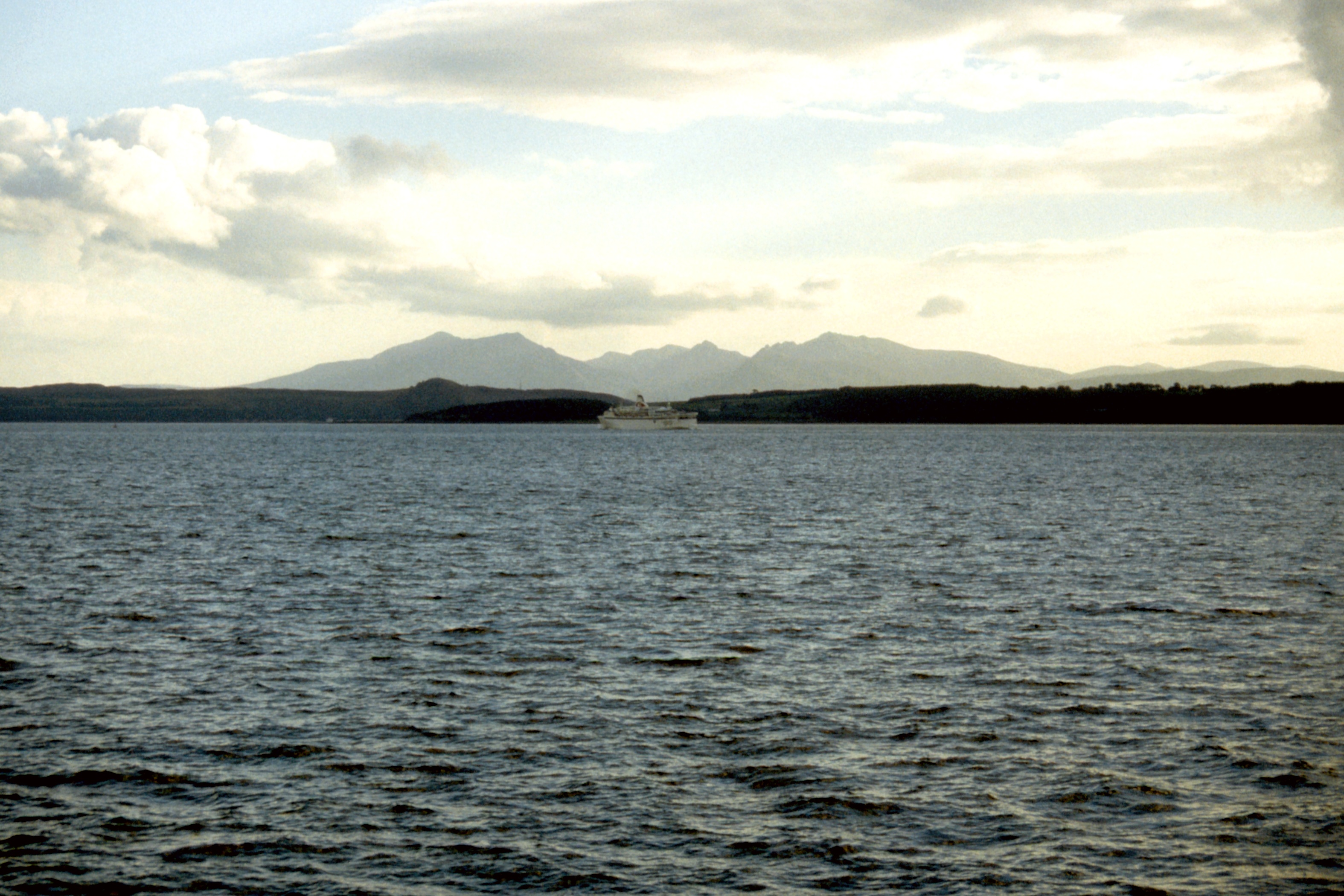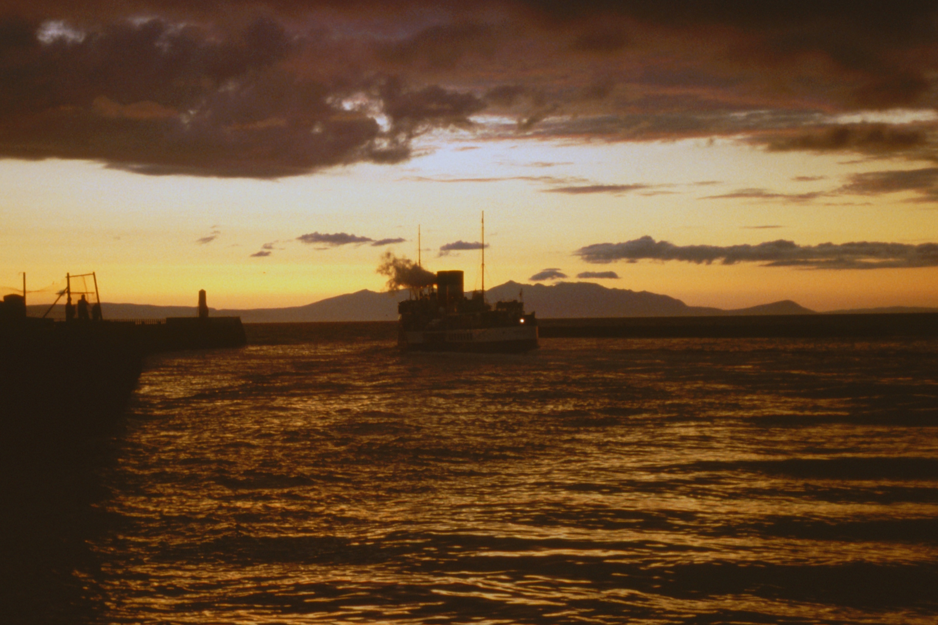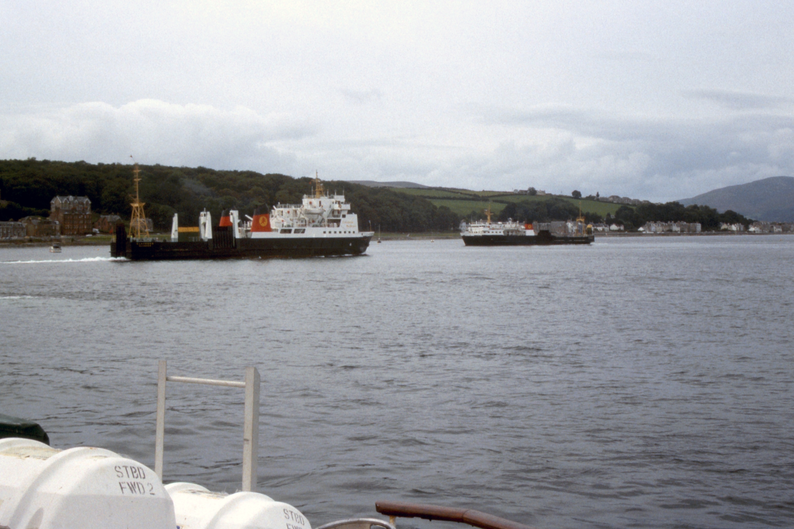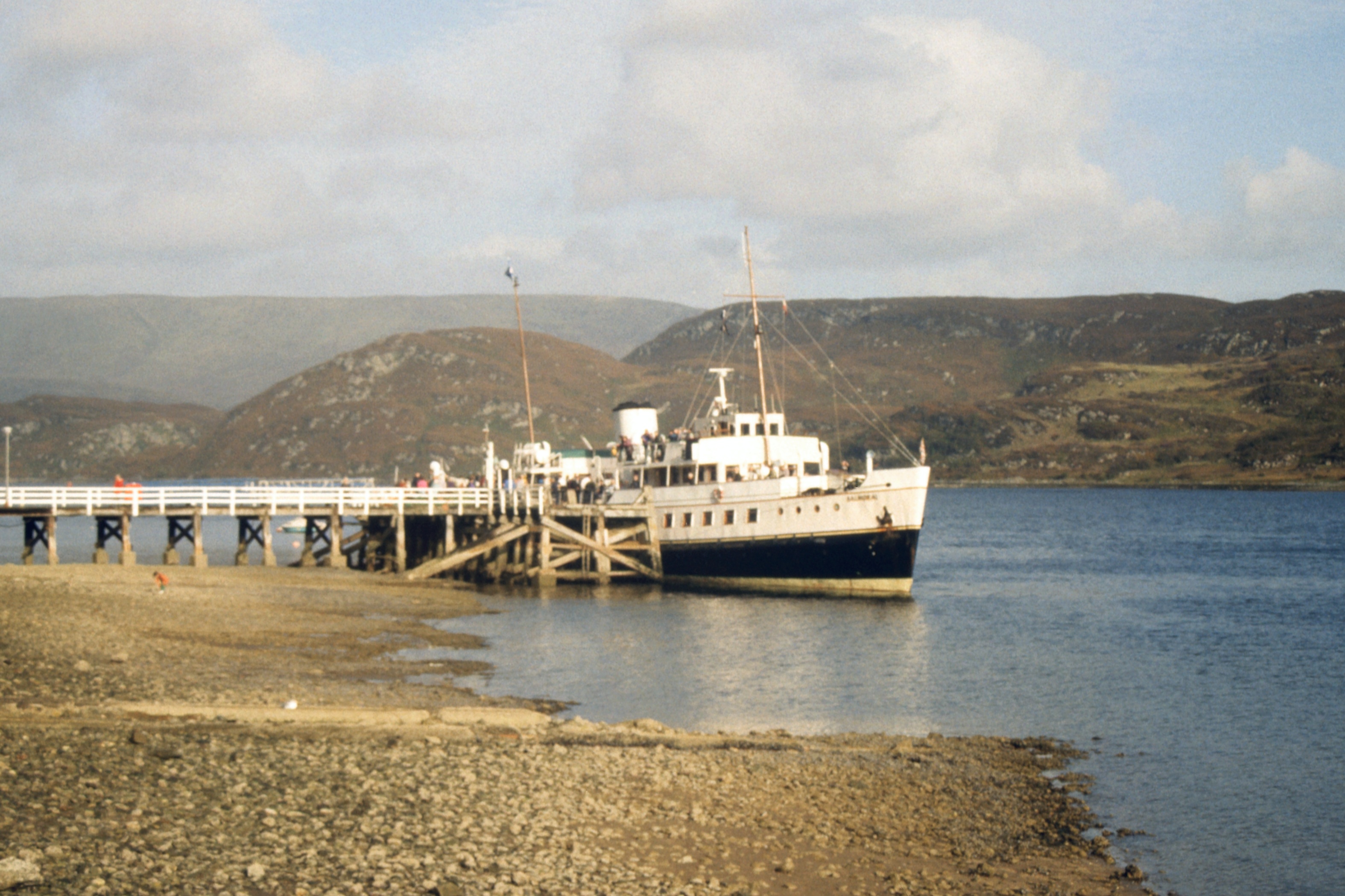 This should have been a standard Wednesday sail to Campbeltown but, presumably due to weather conditions (wind and waves), was diverted through the more sheltered waters between Brodick and Tarbert affording a rare (in those days) opportunity to view the north coast of Arran, hence the photograph of Lochranza.