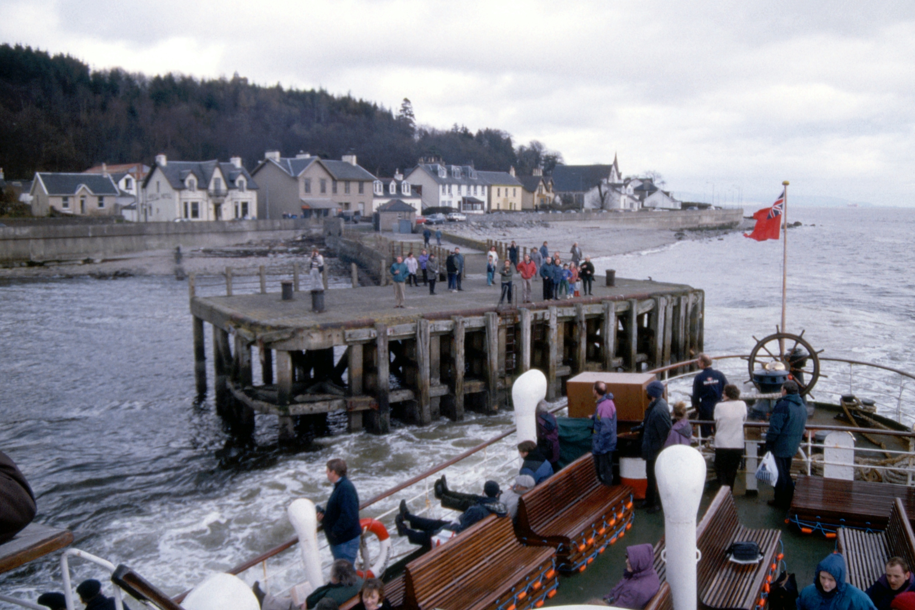 The last of the September Weekend cruises by Balmoral called at Largs instead of Greenock, leaving Glasgow at 10:00 and calling at Helensburgh (12:00), Dunoon (12:40), Largs (13:35) and Rothesay (14:15) before arriving at Tighnabruaich at 15:05. The return sailing should have departed at 16:15 for Rothesay (17:05), Largs (17:45), Dunoon (18:35) and Helensburgh (19:15) before reaching Glasgow at 21:00.