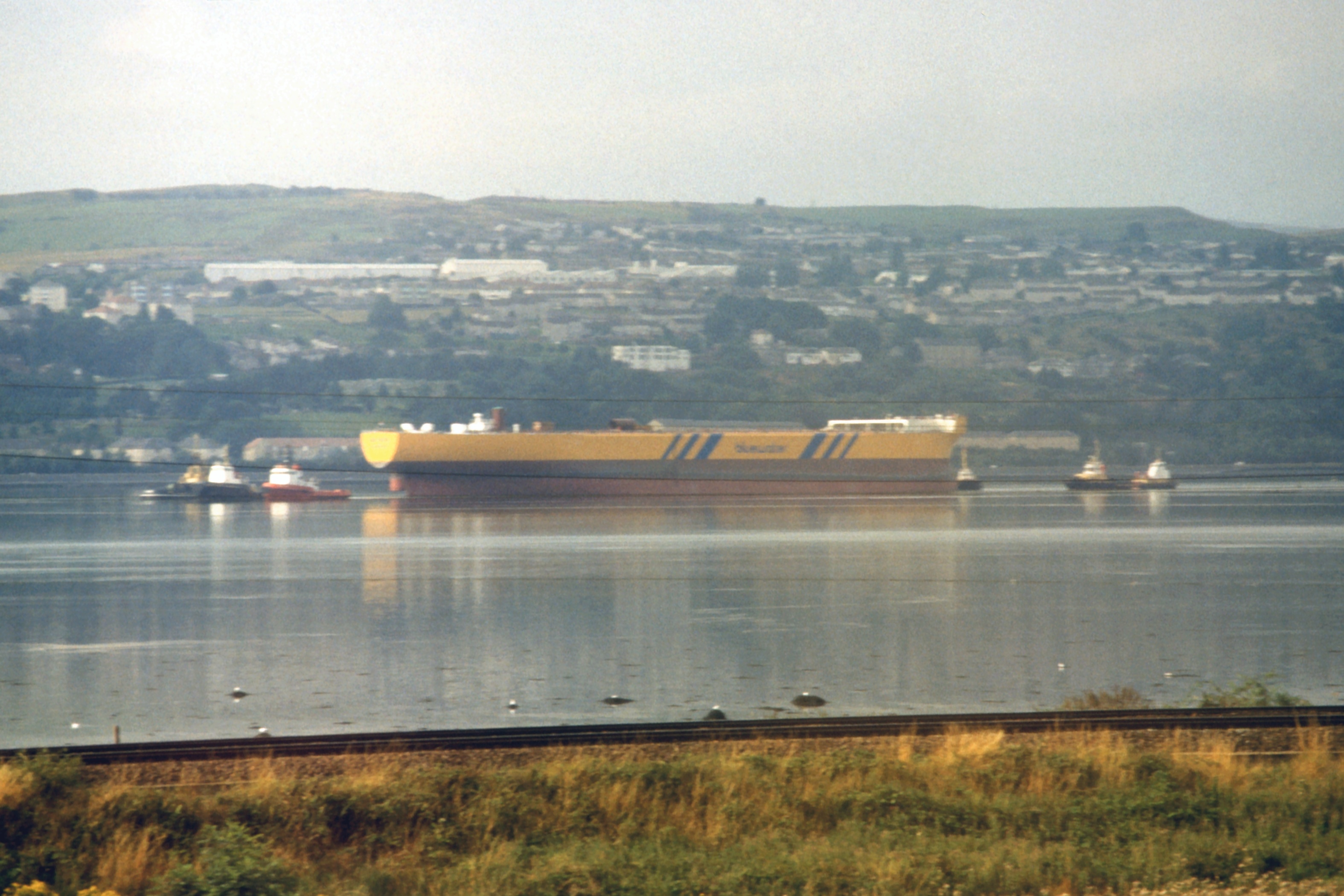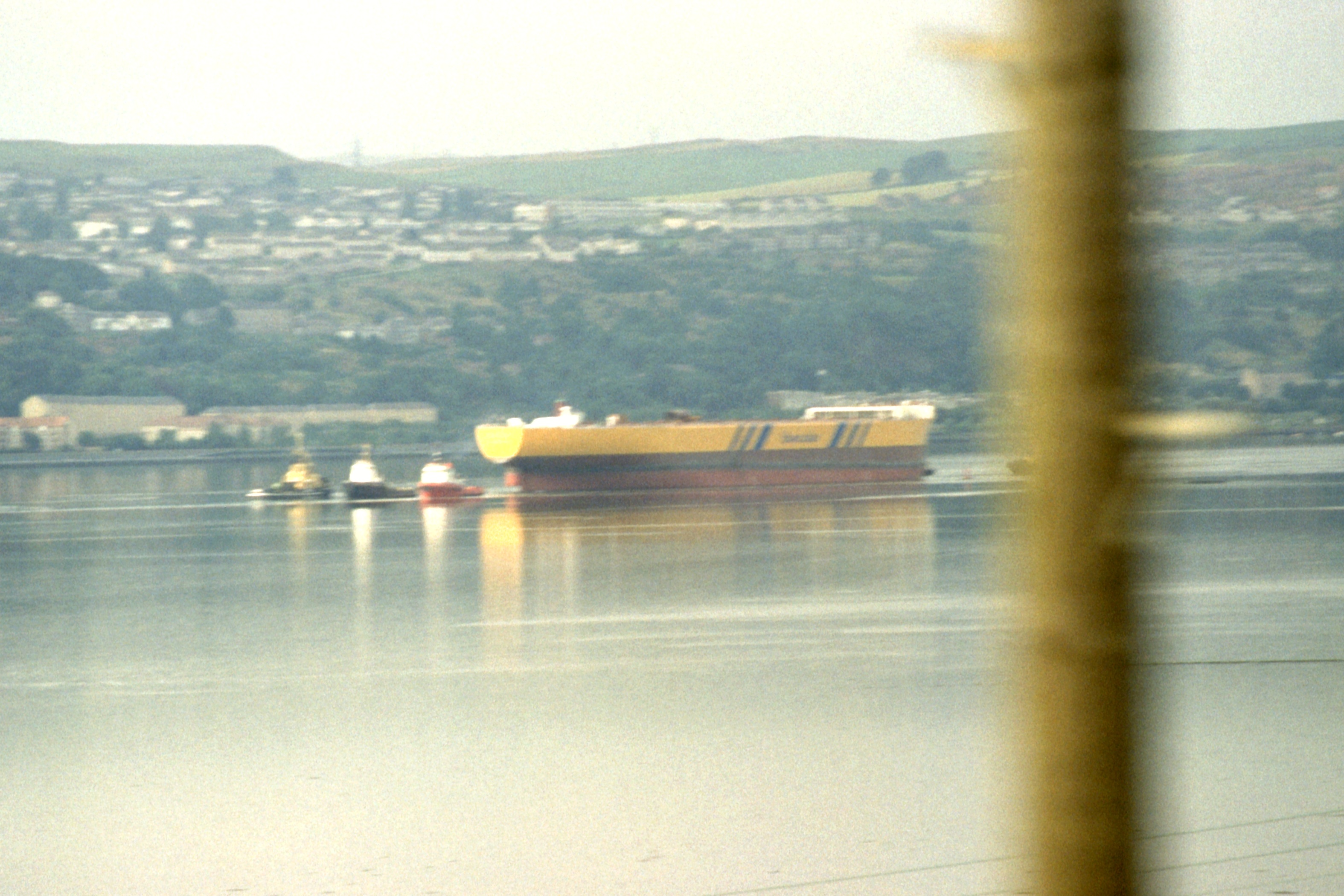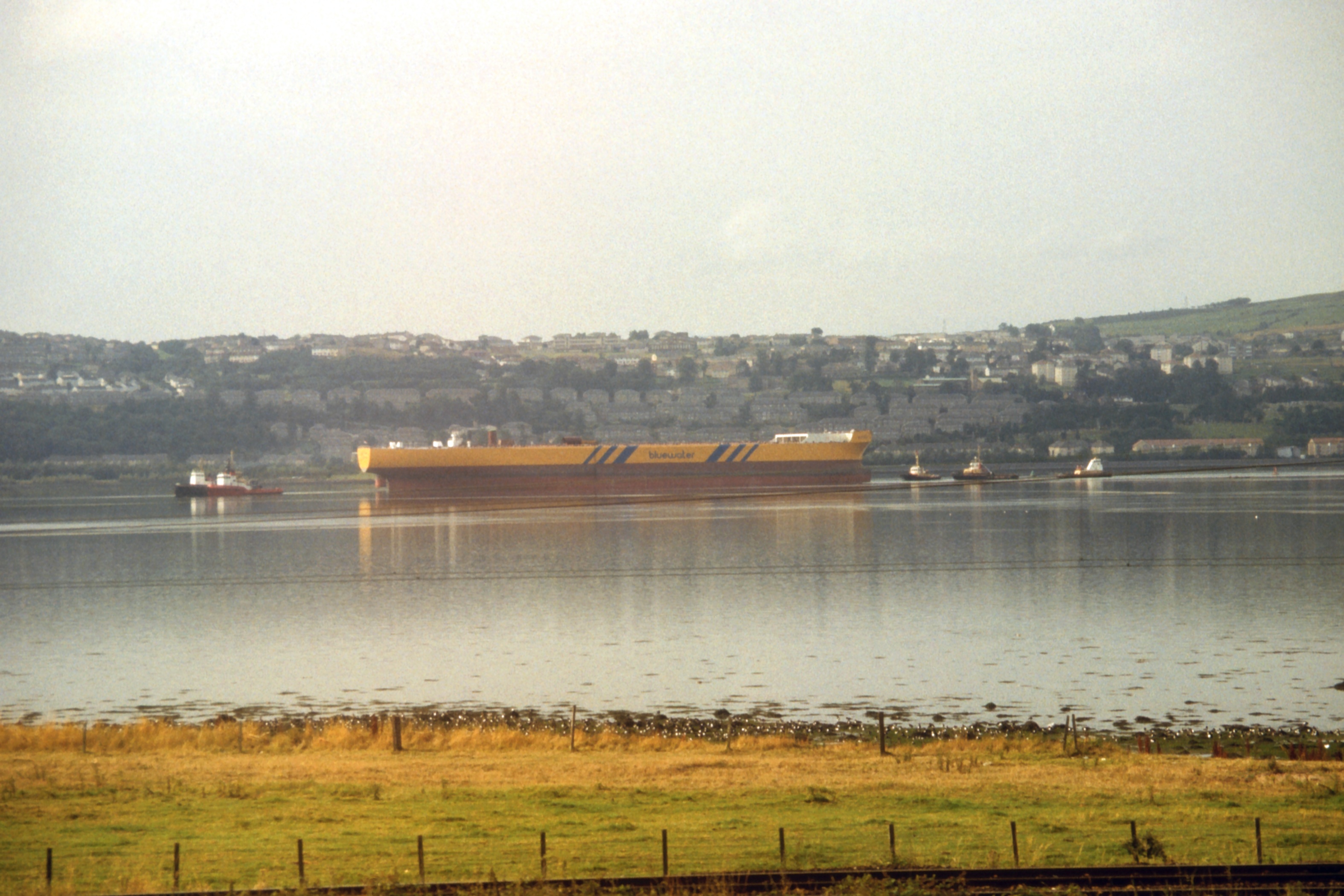 FPU Bleo Holm has almost reached Dumbarton on her way up river for fitting out at UIE, Clydebank |