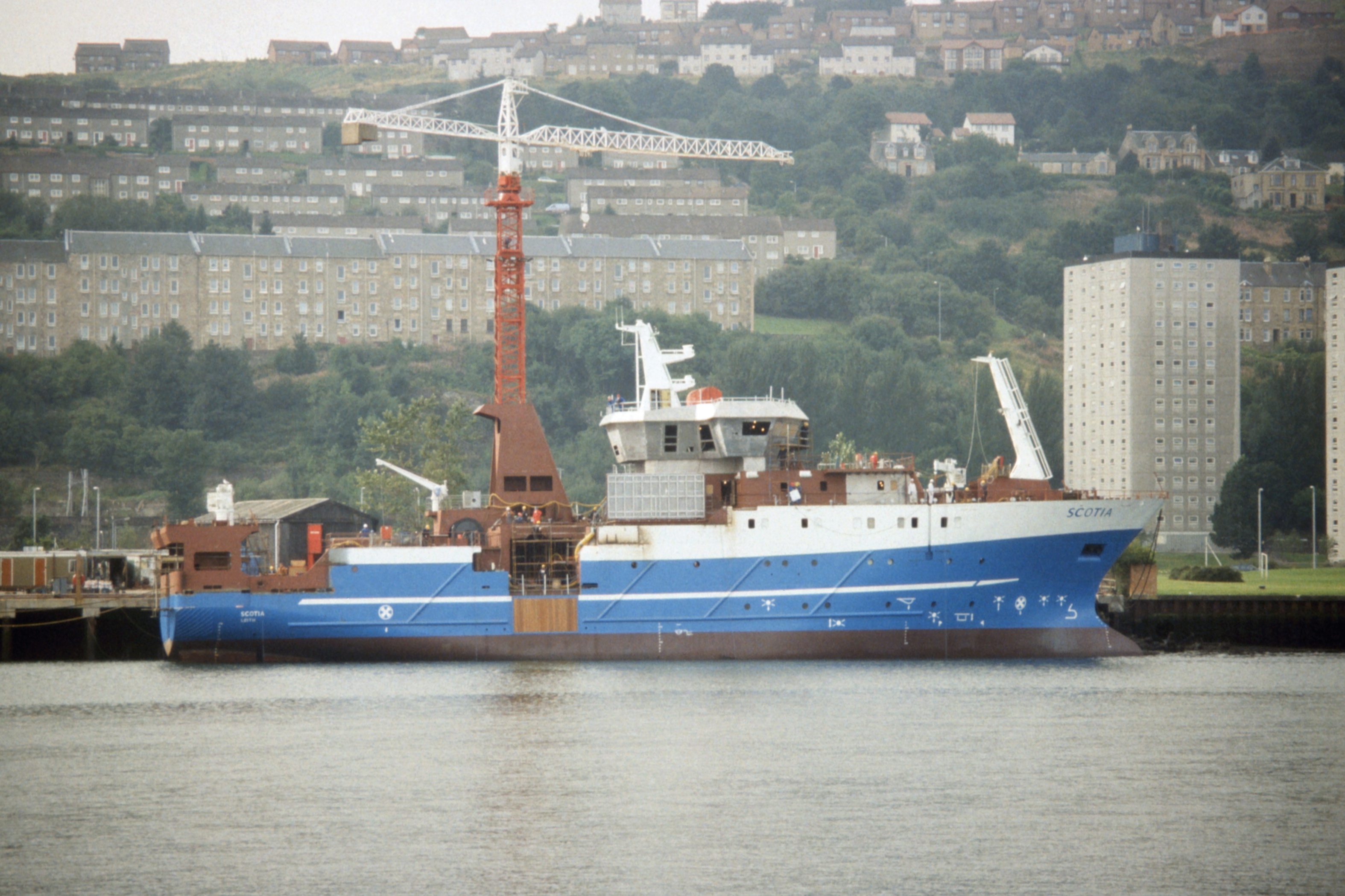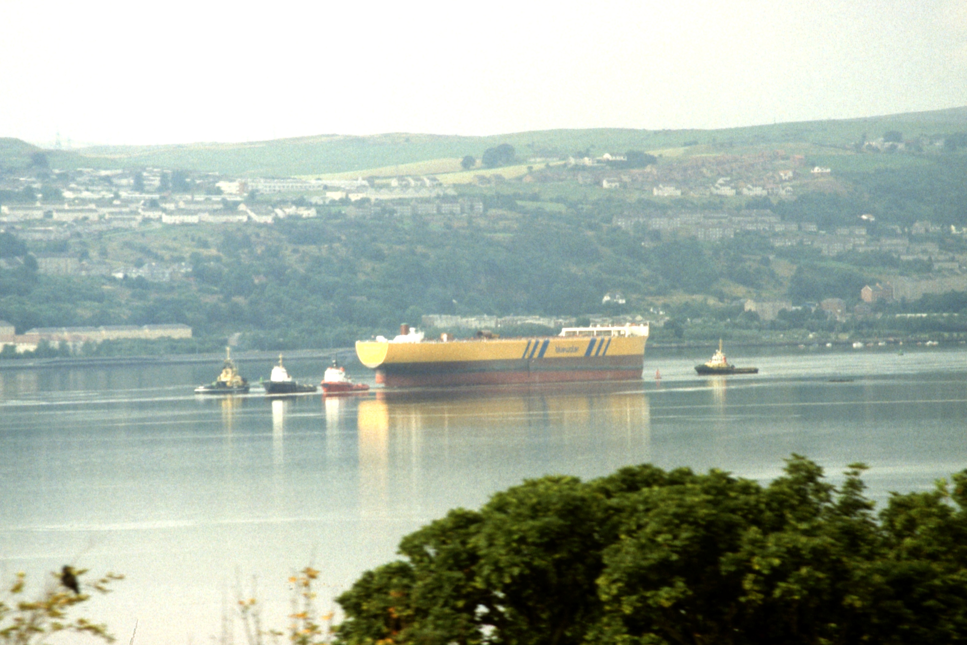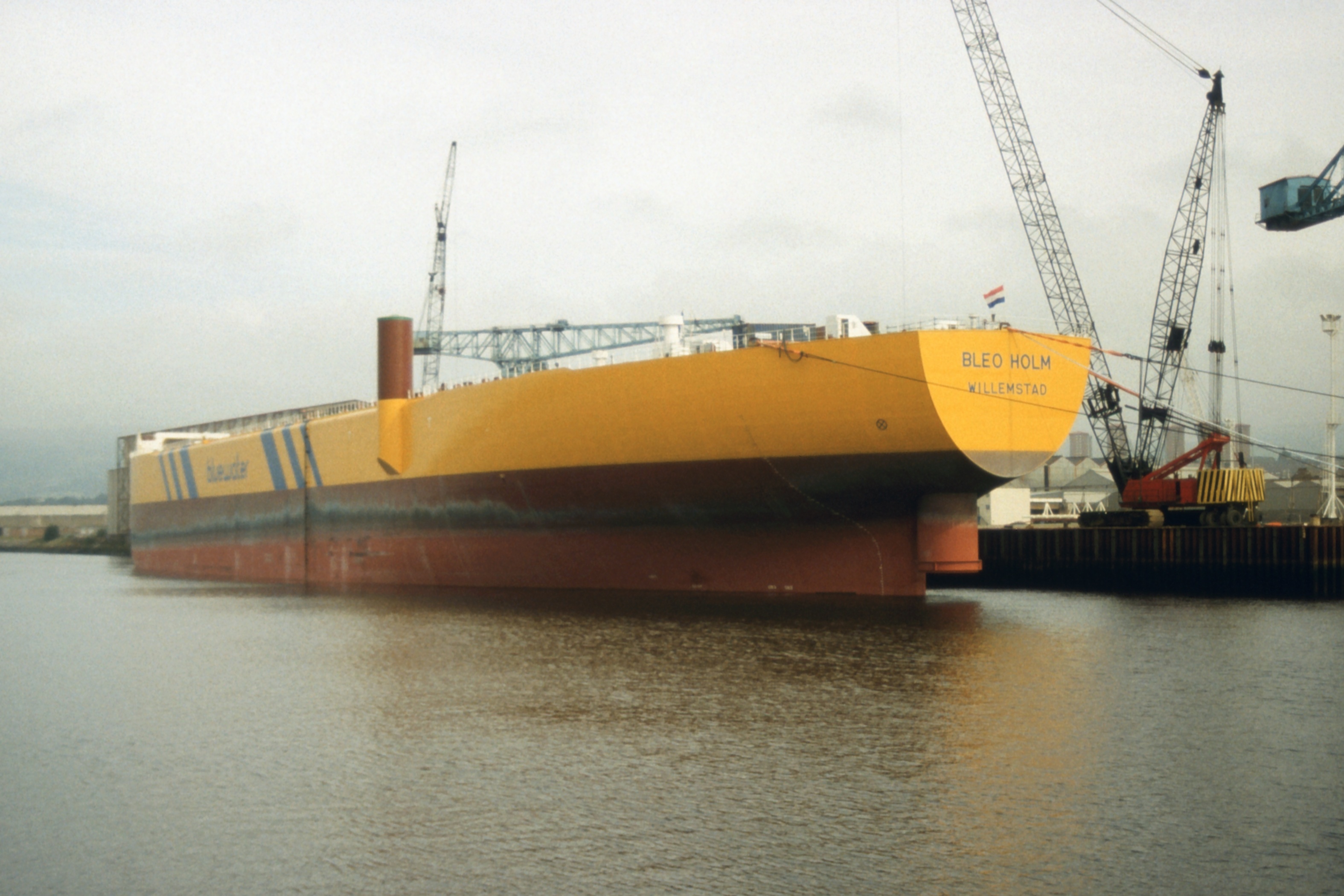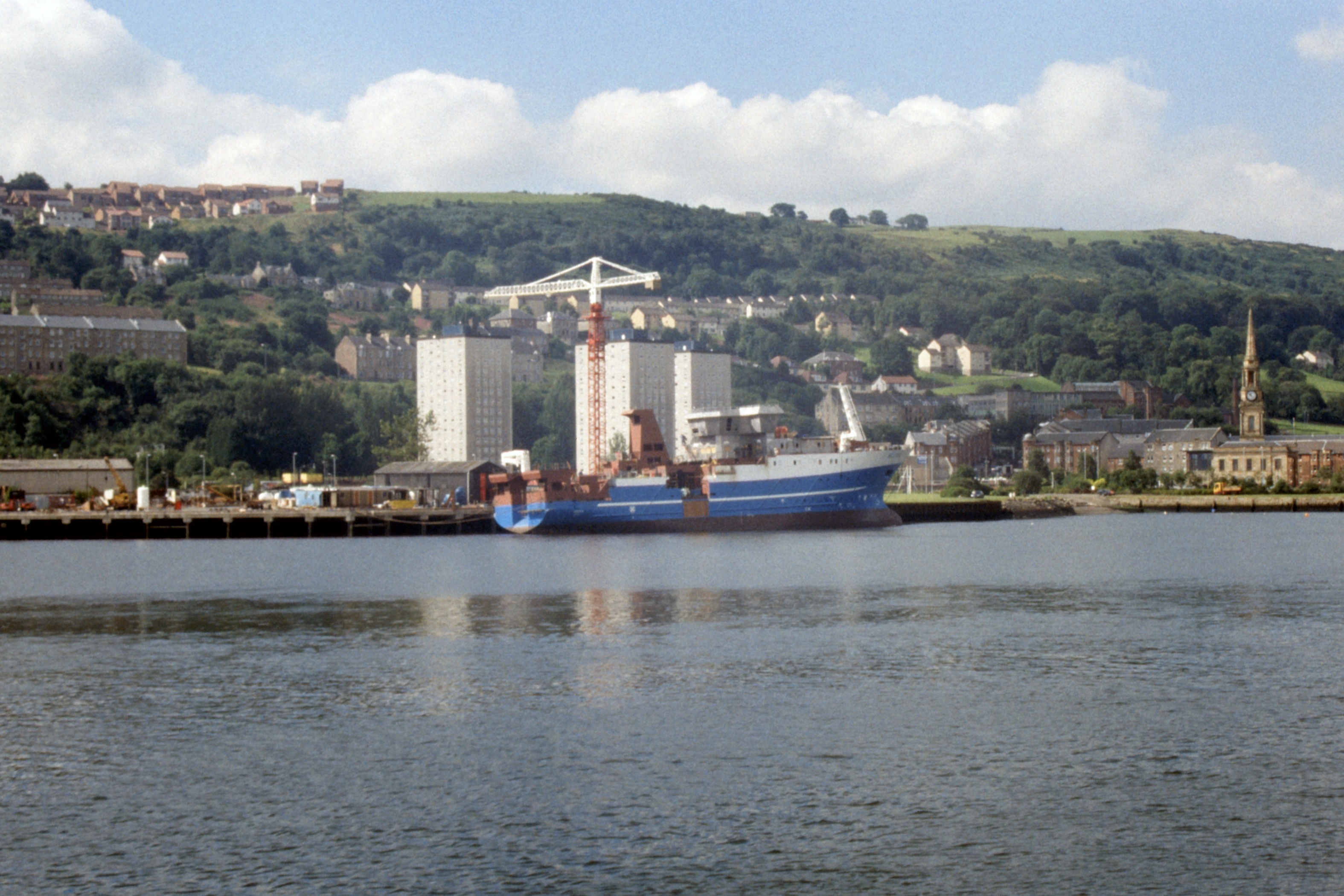 FPU Bleo Holm has almost reached Dumbarton on her way up river for fitting out at UIE, Clydebank |