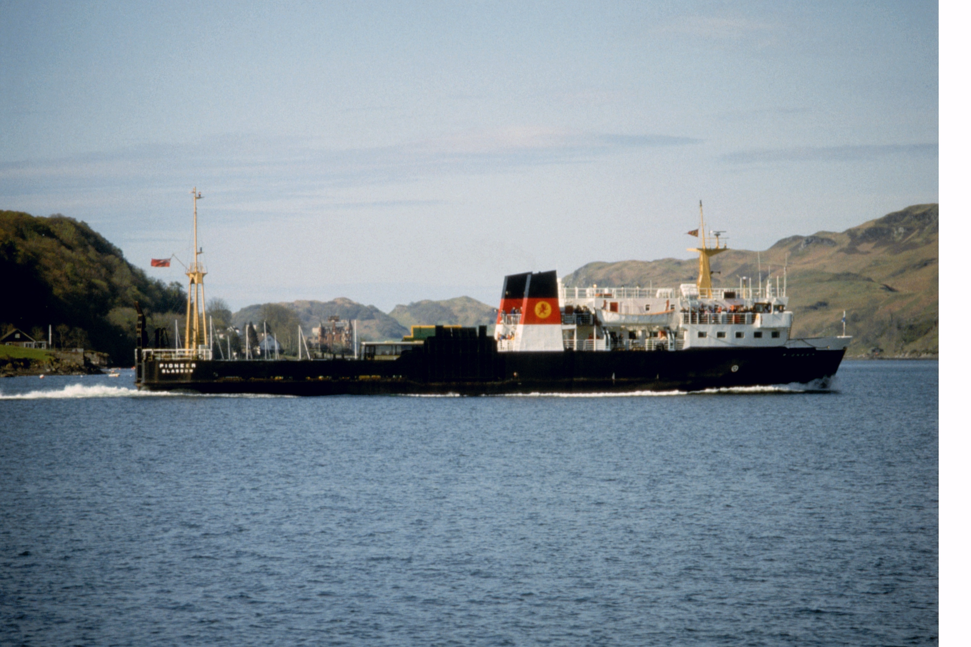 of Mull near Tobermory and crossing the mouth of Loch Sunnart on its way to Castlebay and Lochboisdale |