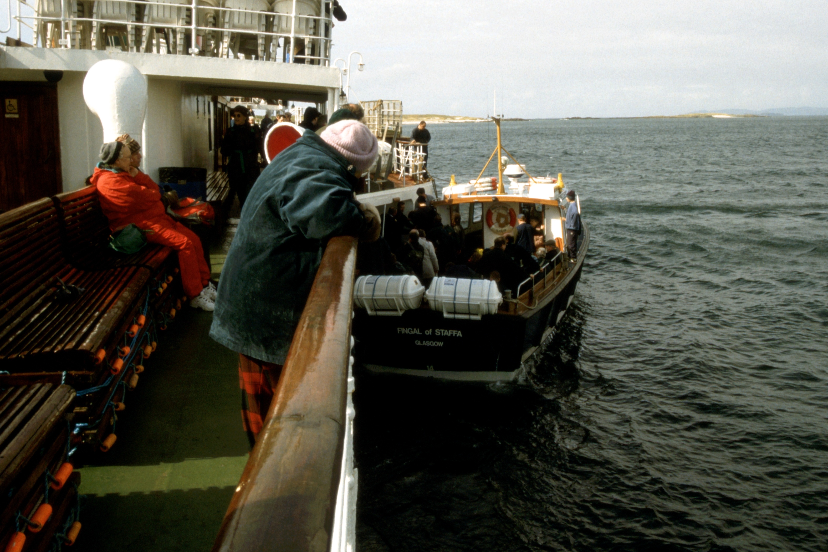I sailed from Oban, we anchored off Iona at 14:10 and I waited 40 minutes for my turn on the small boat, Fingal of Staffa, for the 5 minute trip to the island where I spent an hour before returning to the ship. Anchor aweigh at 17:00 and we were back at Oban 19:50 where I dined on trout etc (�23 in total).