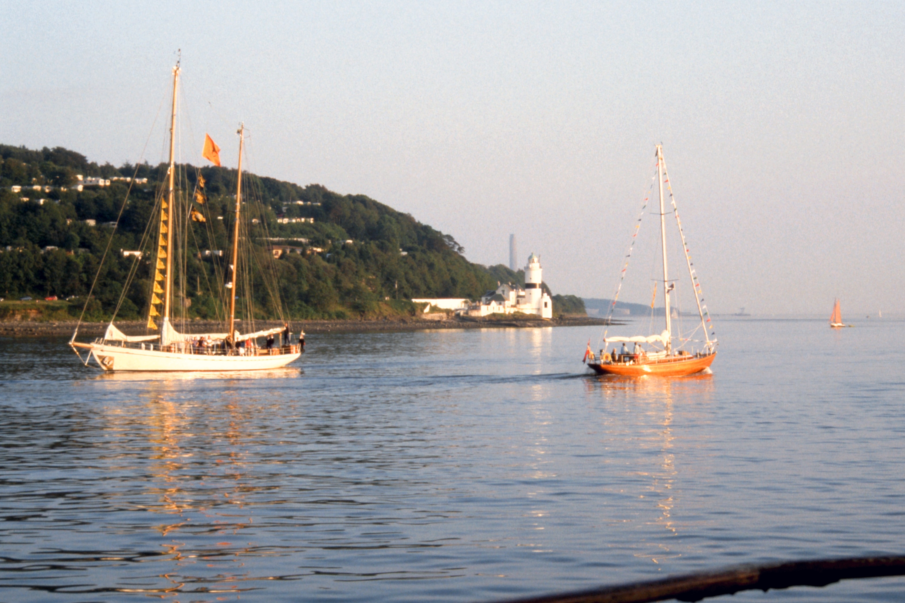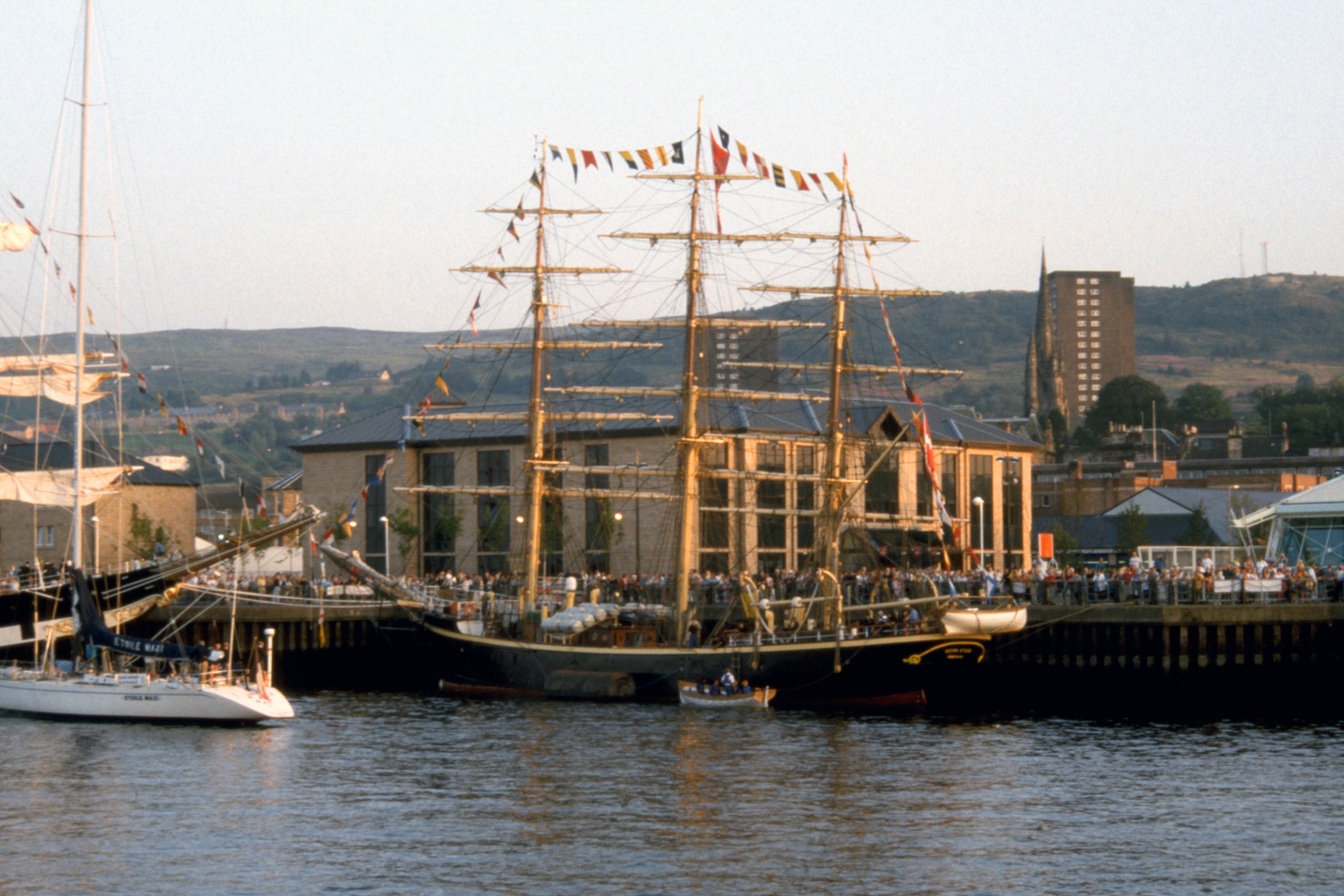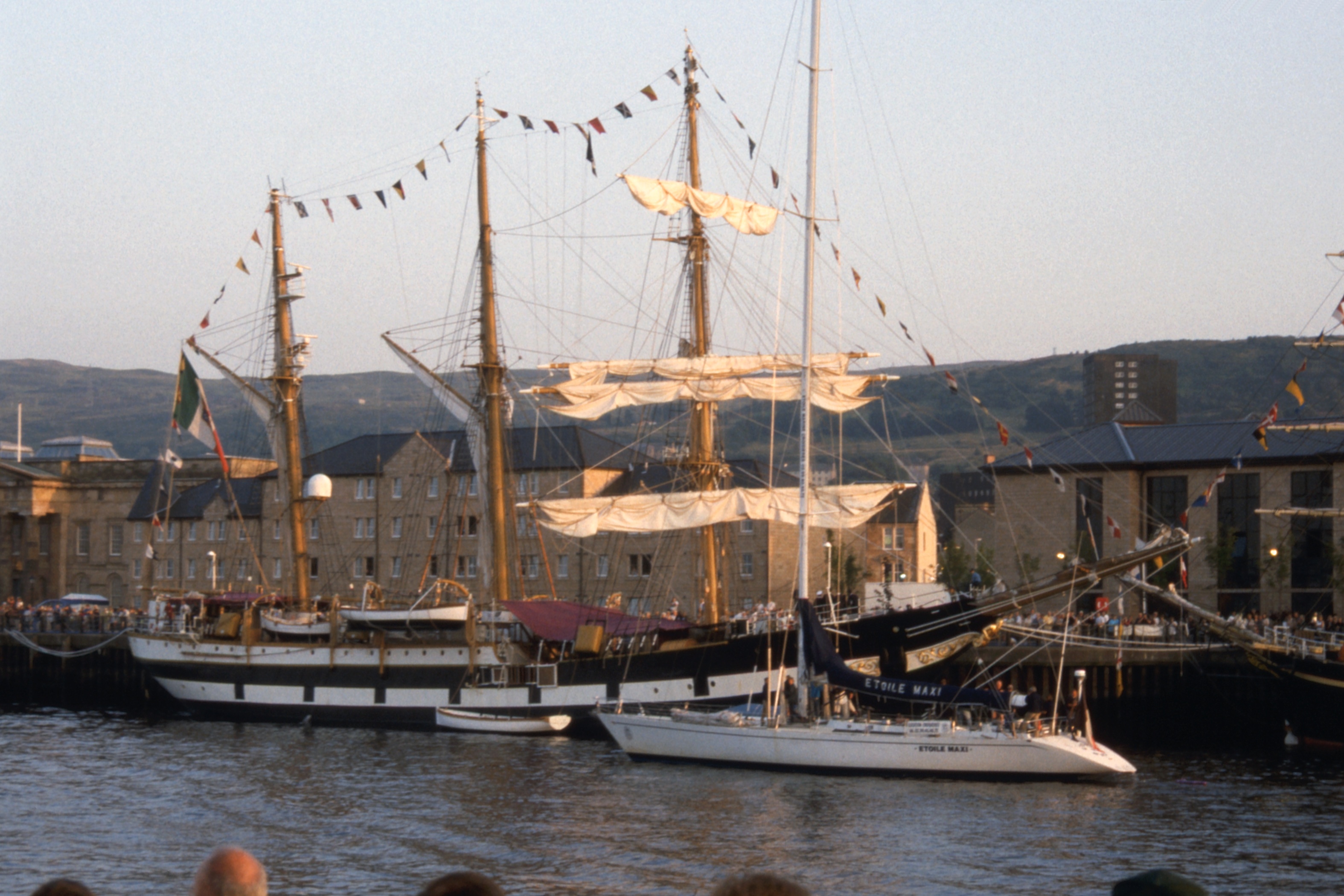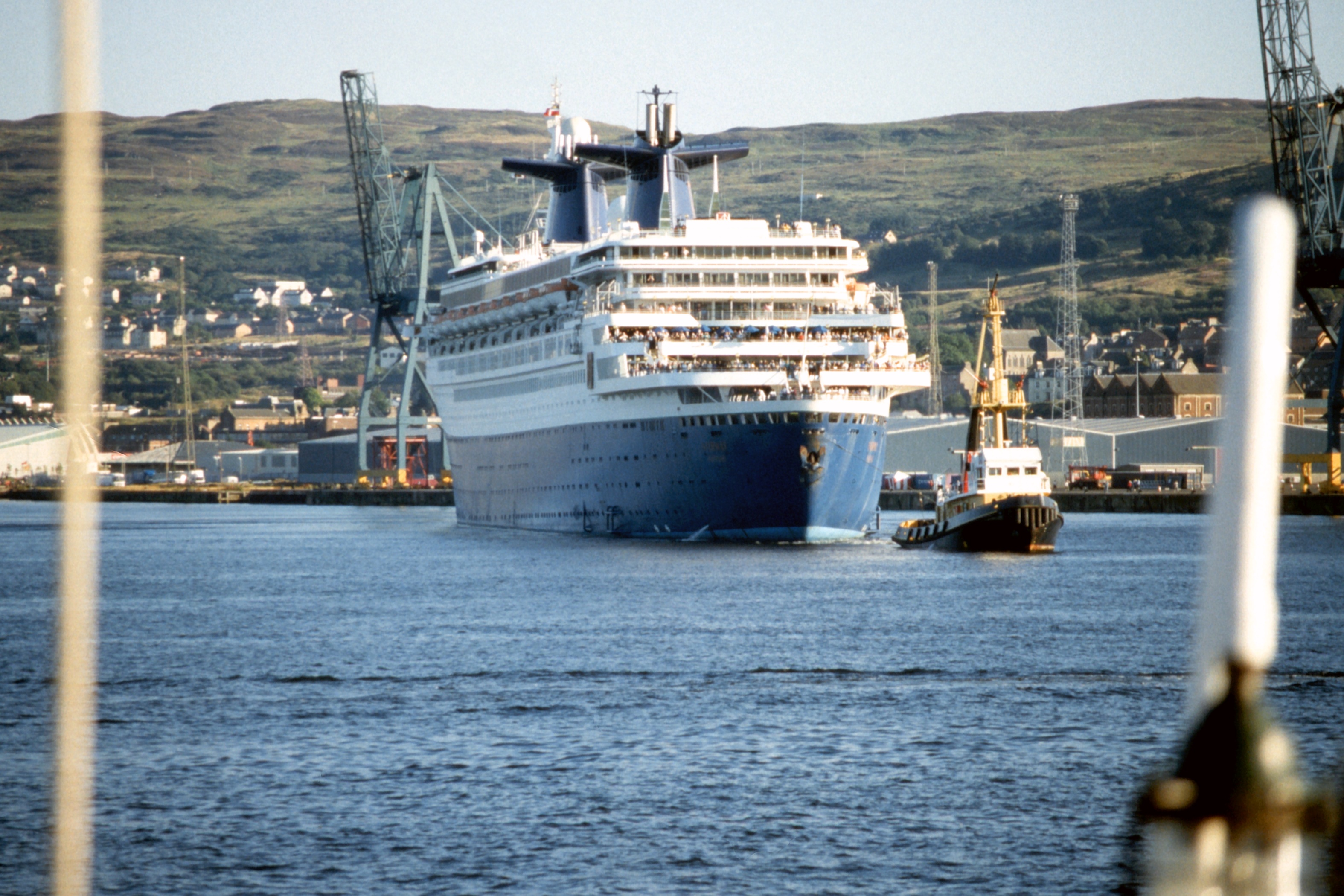 To capitalise on the interest in the Tall Ships at Greenock, Waverley operated an amended schedule for 5 days, starting on the Thursday. Instead of the usual Greenock - Brodick cruise, she sailed from Ayr at 10:00 calling at Millport (11:40), Largs (12:10) and Rothesay (12:50) then cruising the wider waters of the firth to greet whatever turned up. She returned to Rothesay (17:30), Millport (18:15) and Largs (18:45) whence there was a coach return to Ayr (19:45) while Waverley viewed more Tall Ships on the way up to Glasgow to arrive at 21:45 with a coach return to Largs (22:45).
