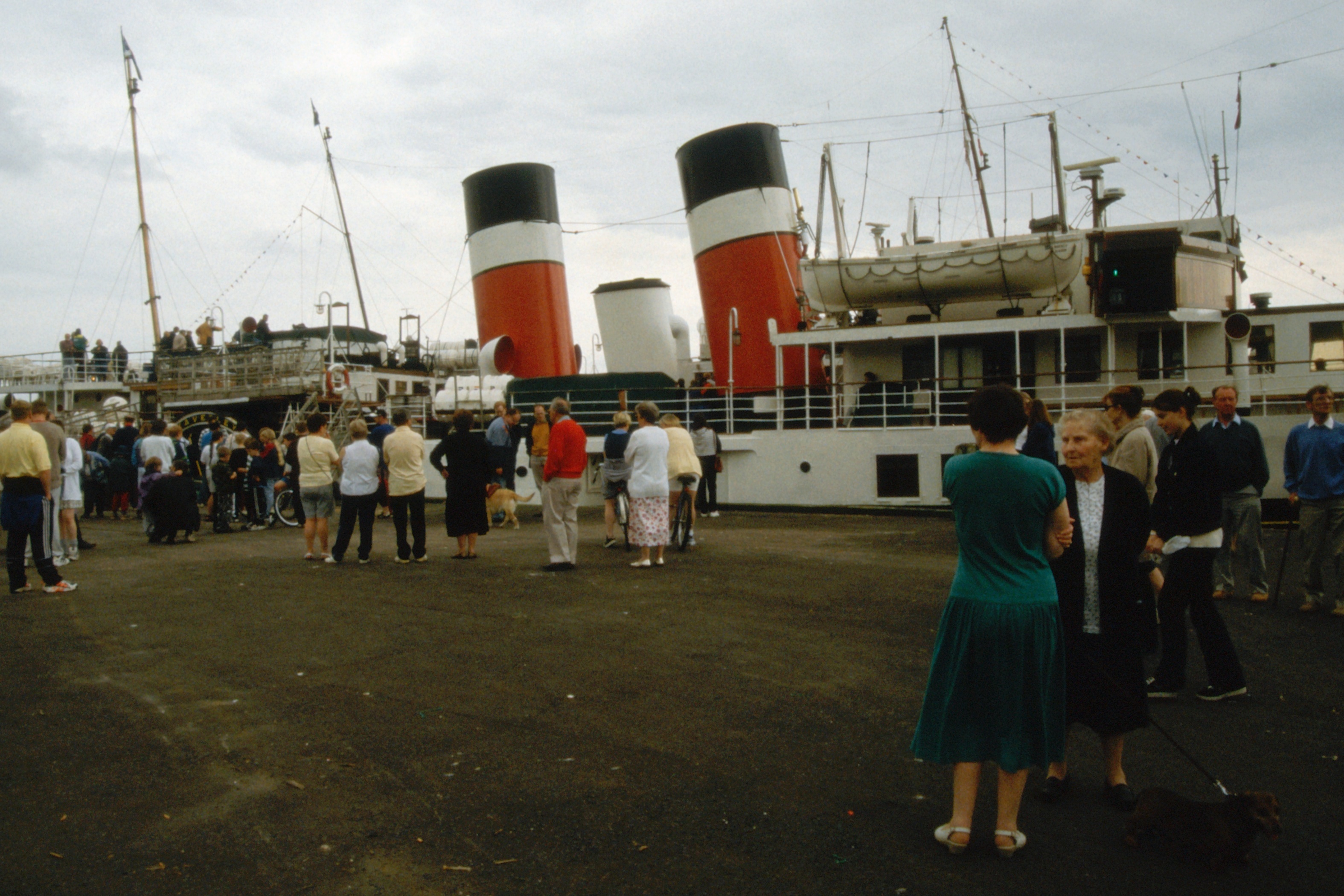 Because of the presence of so many vessels, Waverley used an unaccustomed berth on the quay between the East India and Victoria Harbours and passengers were carefully ushered through a warehouse.