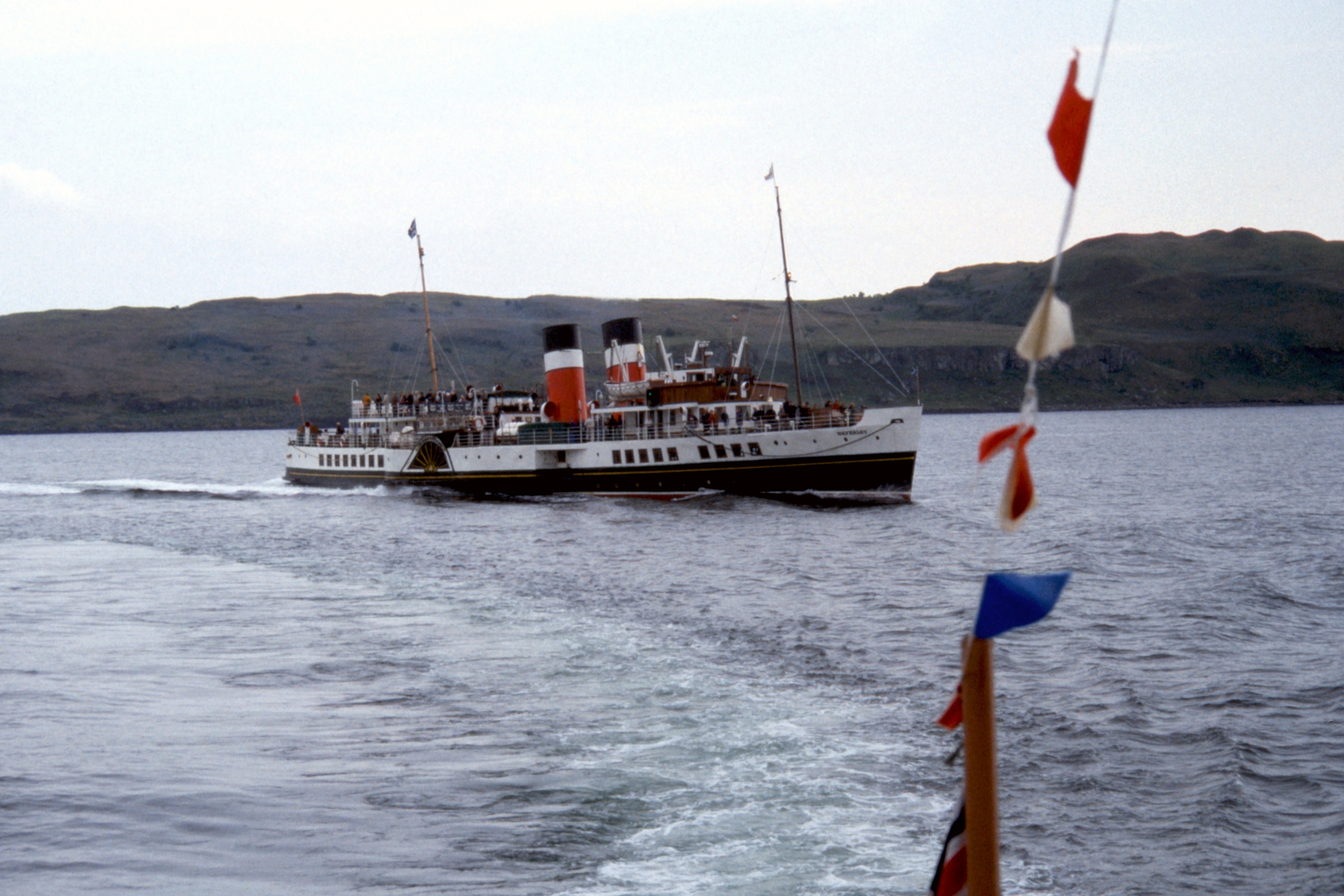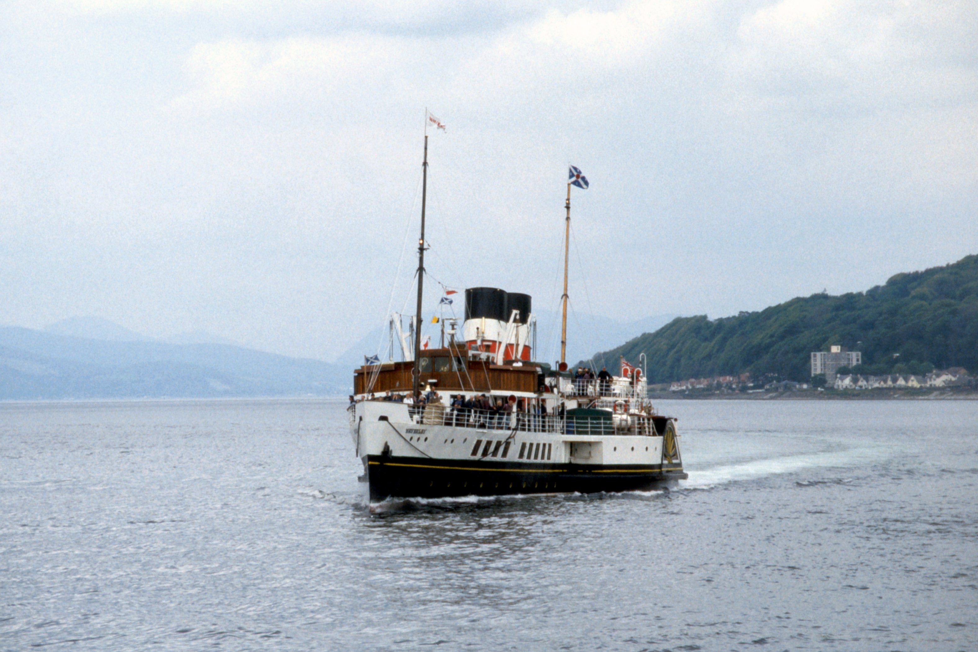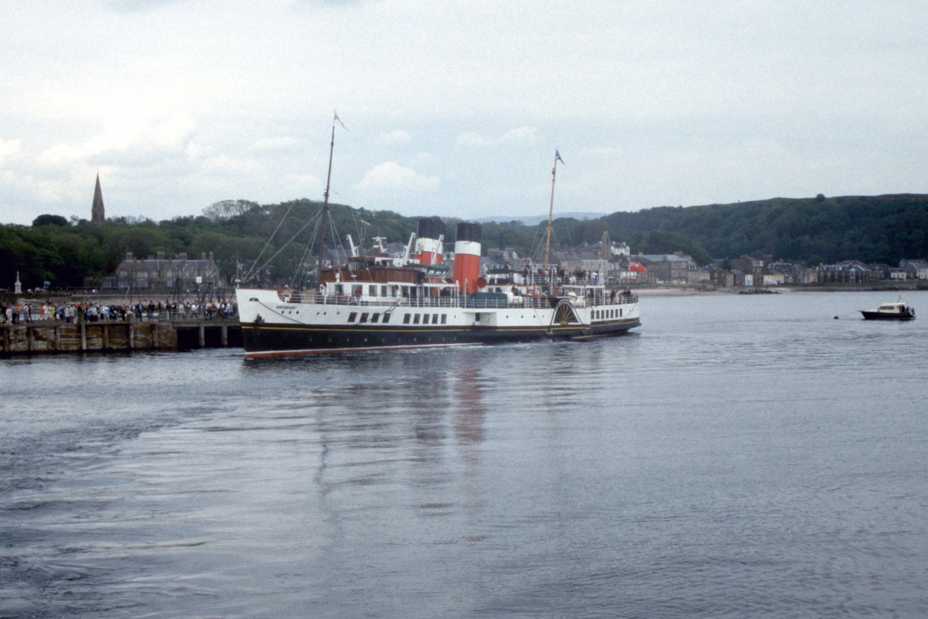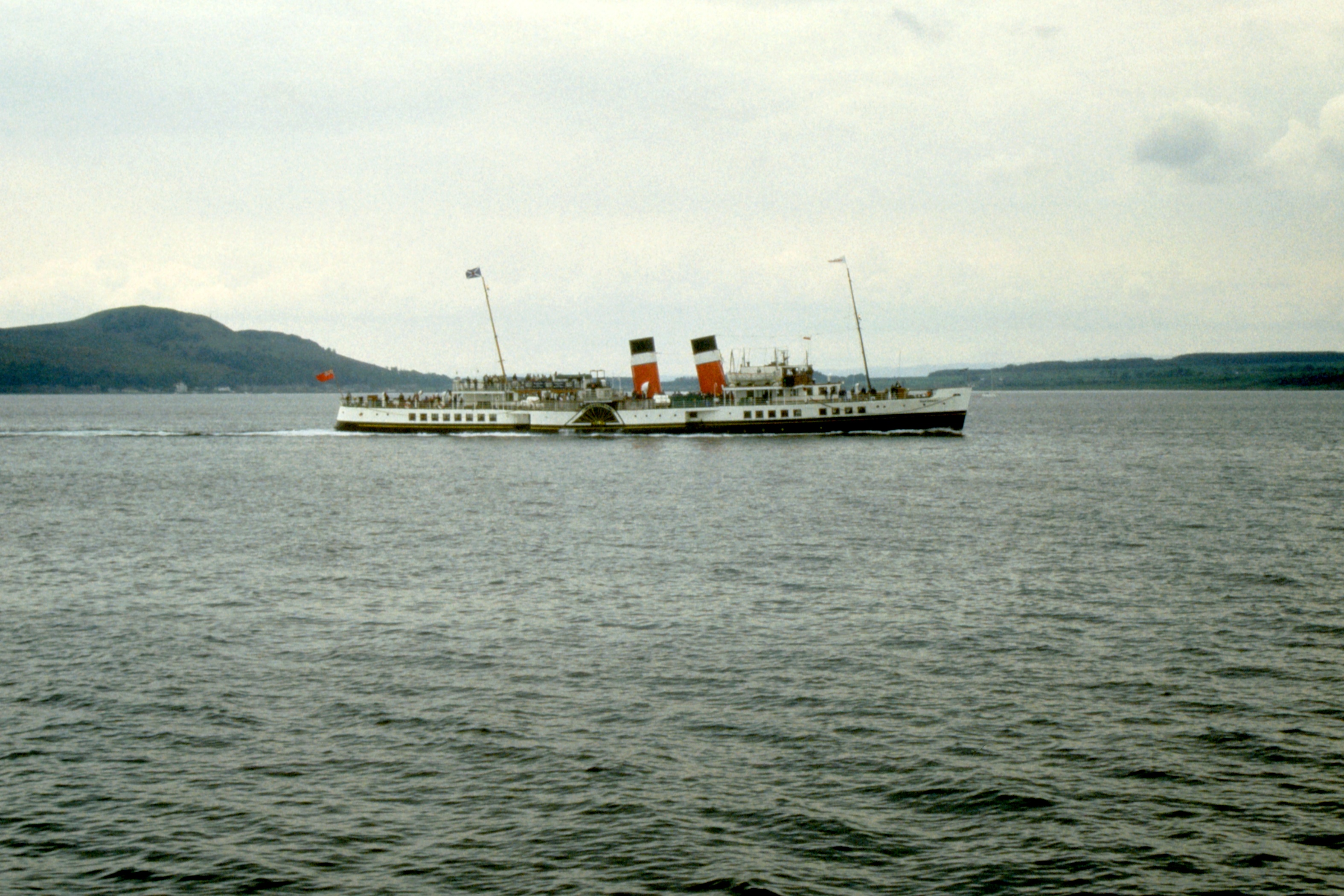 Waverley left Glasgow at 10:00 calling at Greenock (11:40), Helensburgh (12:05), Dunoon (12:45), Largs (13:35) and Rothesay (14:15) for a cruise on Loch Striven, returning from Rothesay at 16:15 and calling at Largs (16:55), Dunoon (17:45), Helensburgh (18:25) and Greenock (18:50) to arrive back in Glasgow at 20:30.