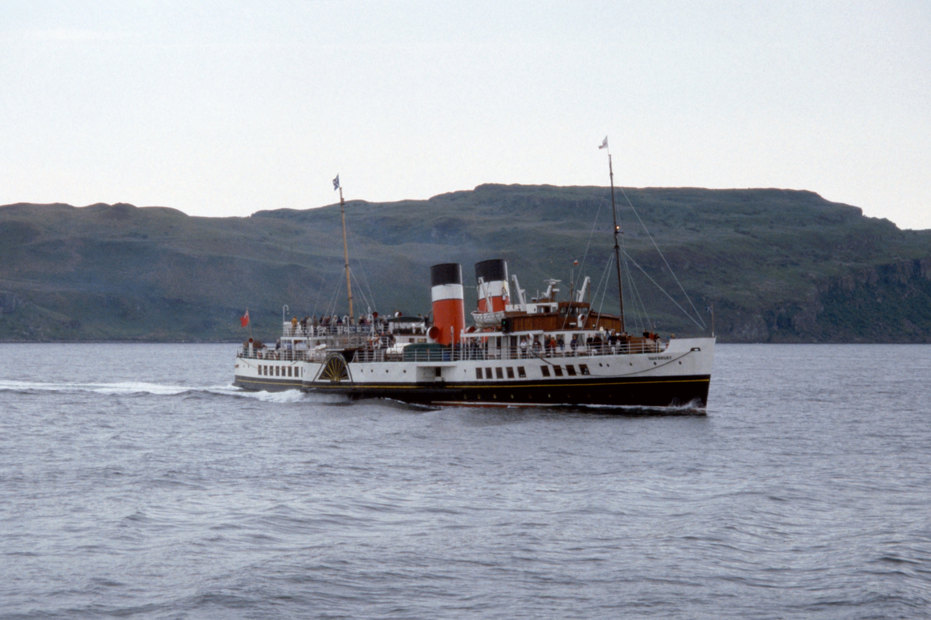 Day 2 - Sunday, May 3 Waverley started from Fort William at 10:00 and called at Oban at 12:15 for the traditional Four Loch's and Corryvreckan Whirlpool cruise returning to Oban at 17:30 and Fort William at 19:45 with a coach return to Oban at 21:30.