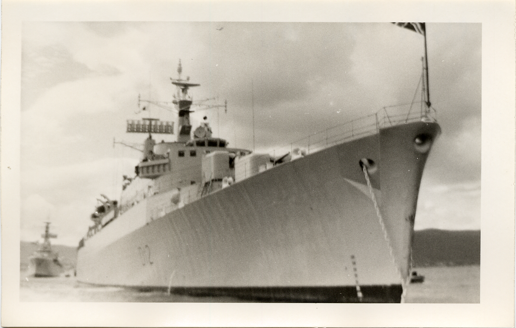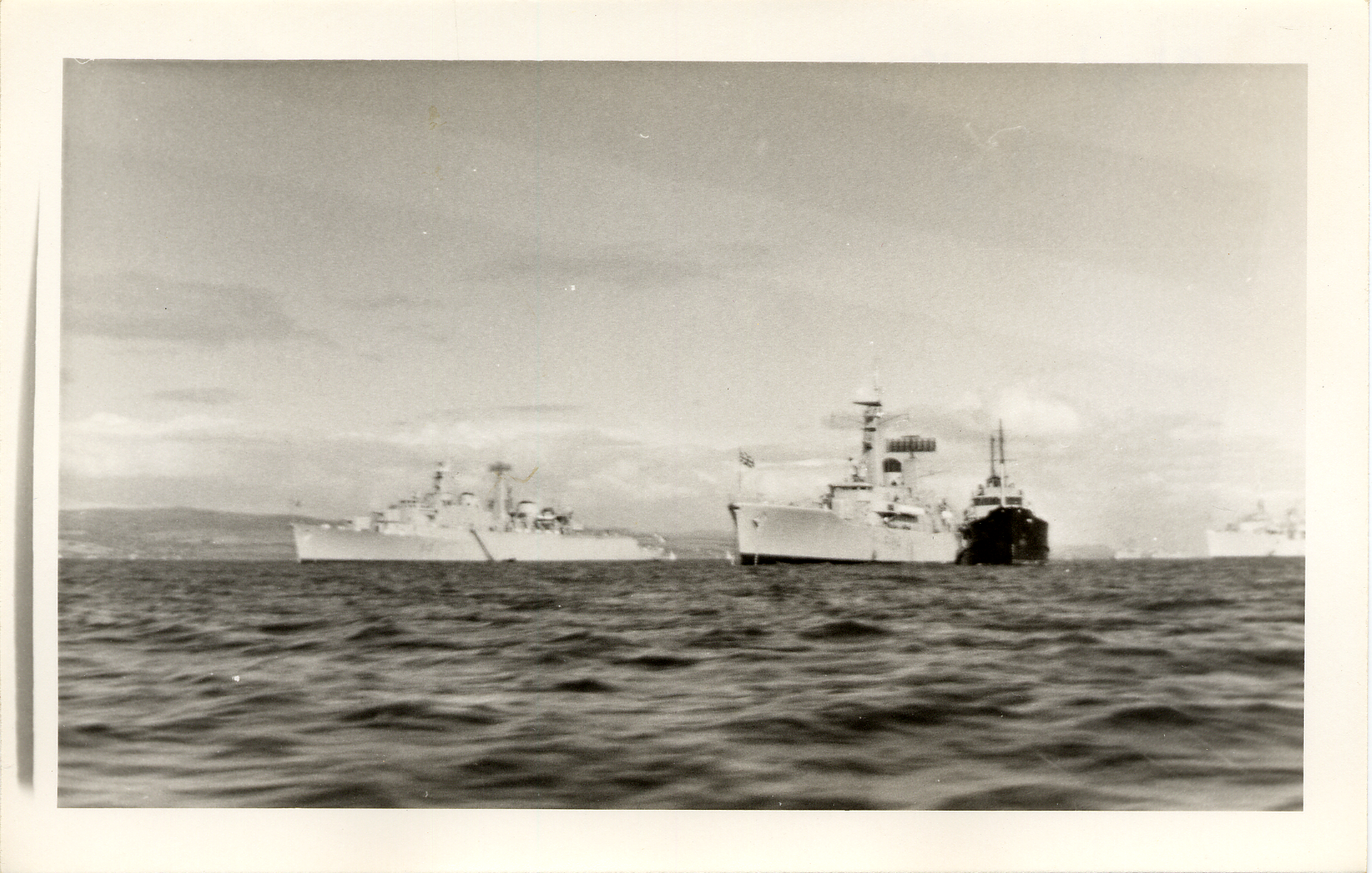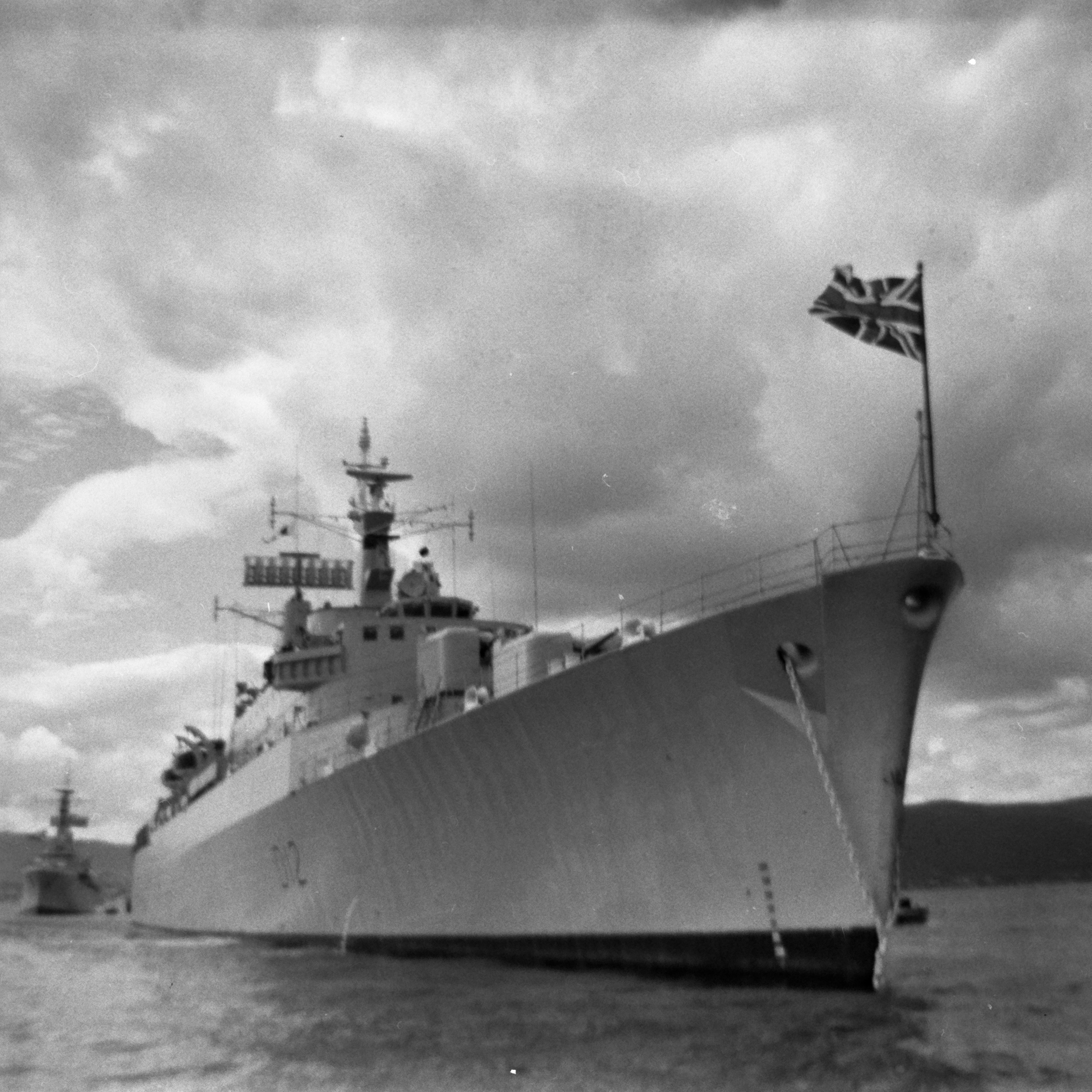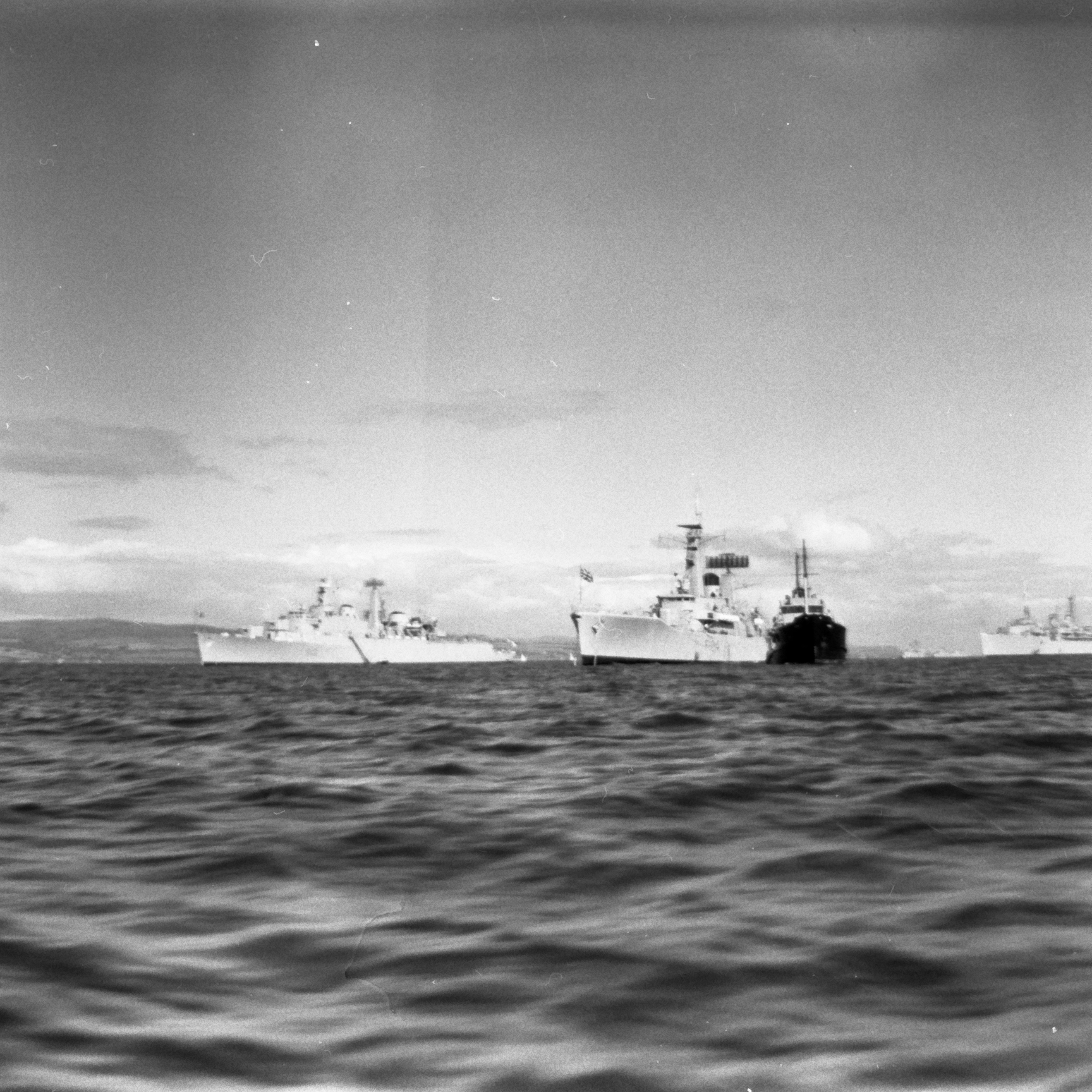 HMS Kent (D12) far left, HMS Naiad (F39) (view print) |