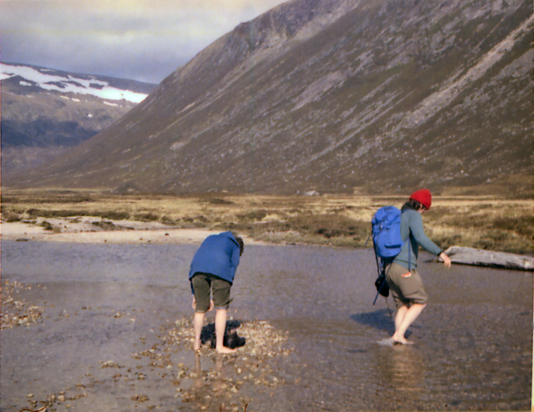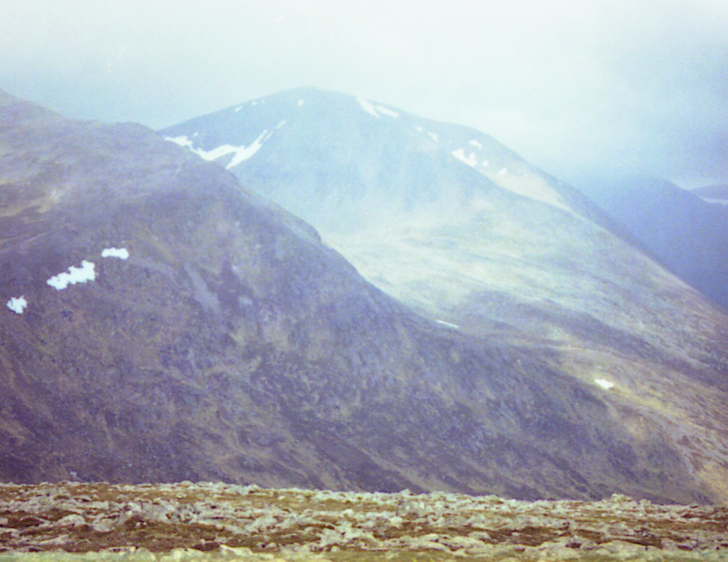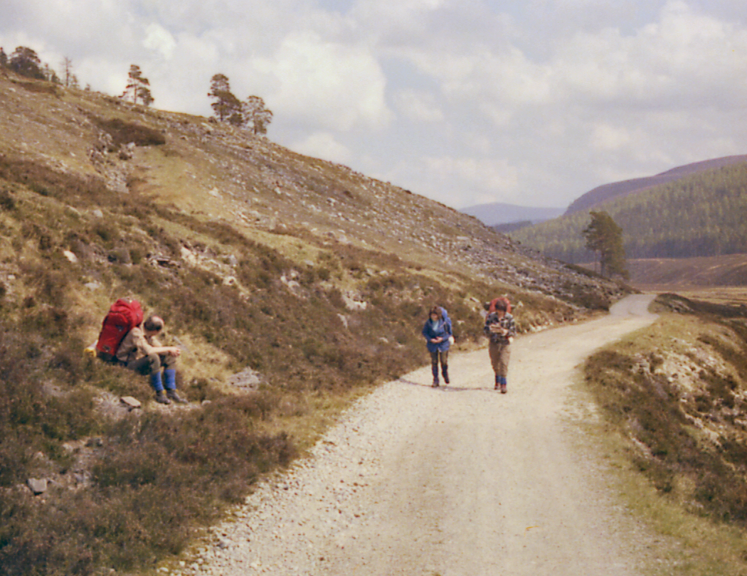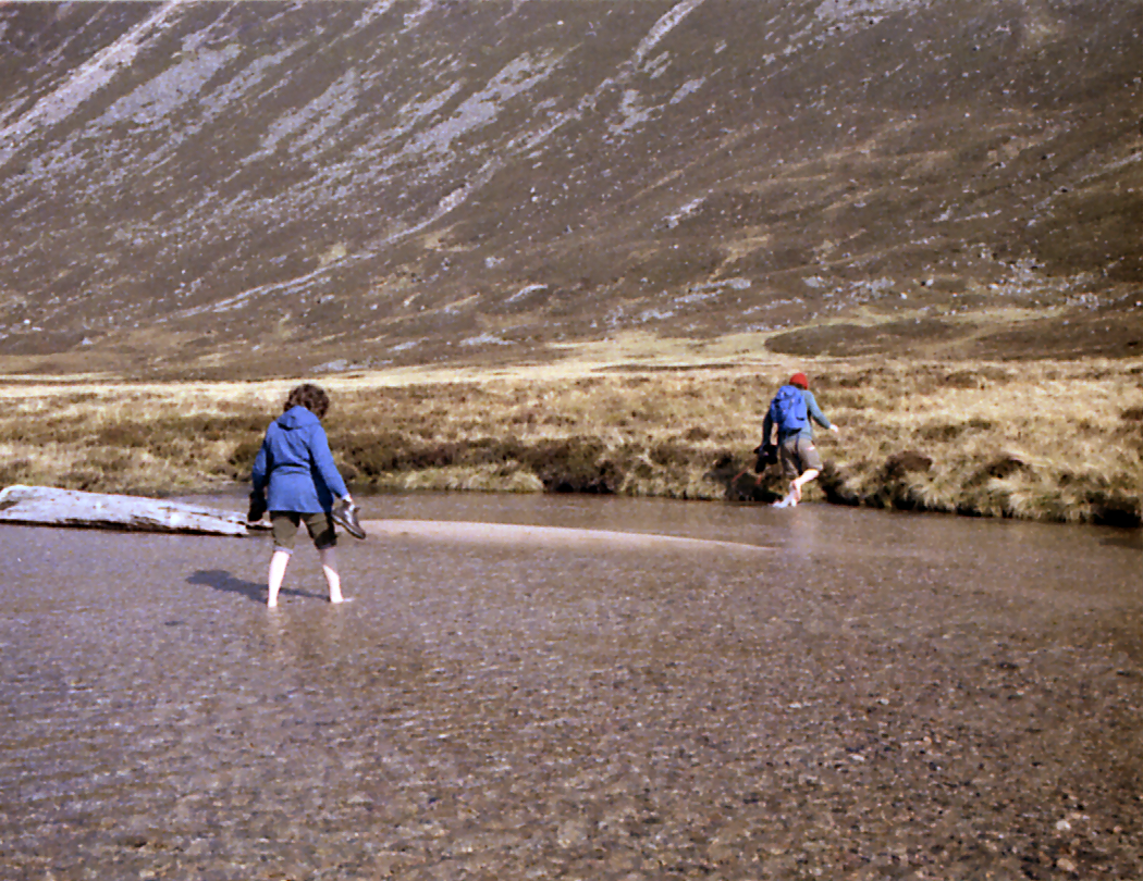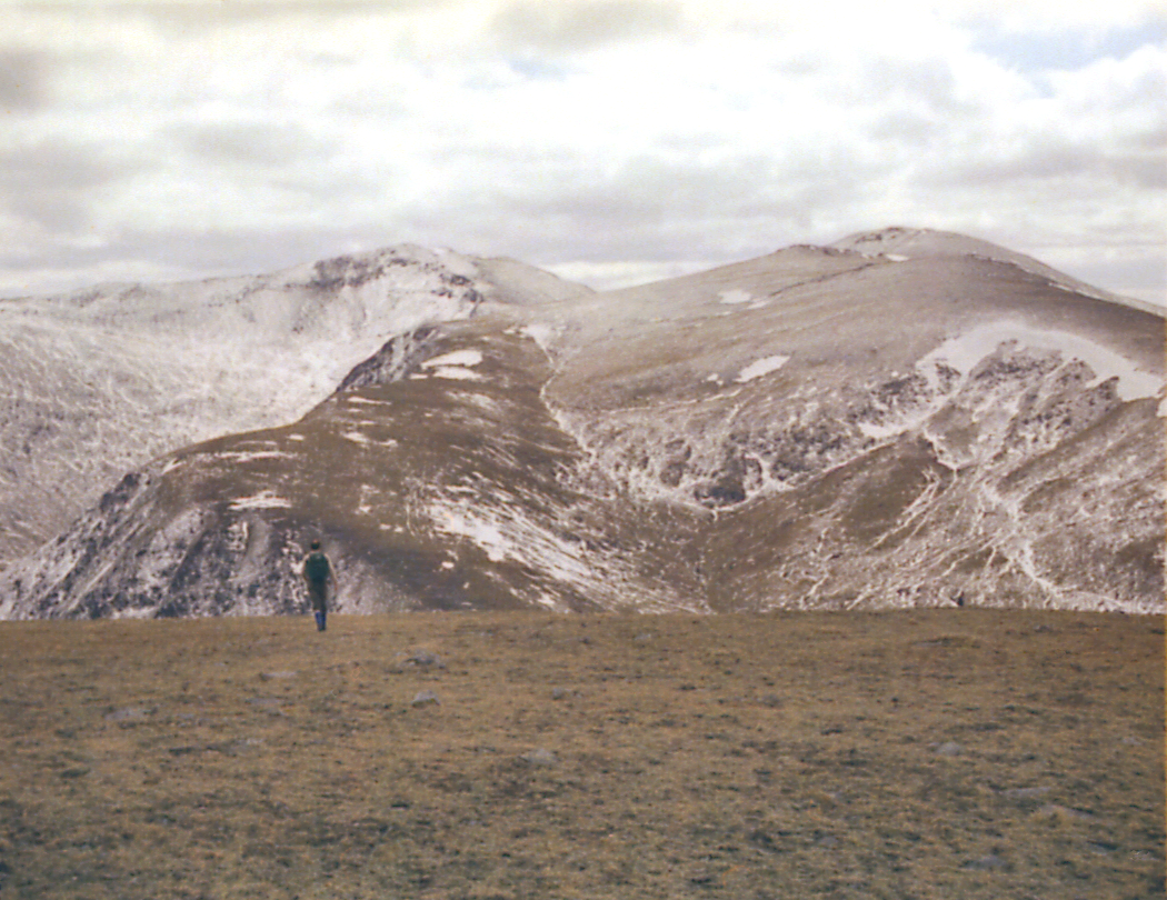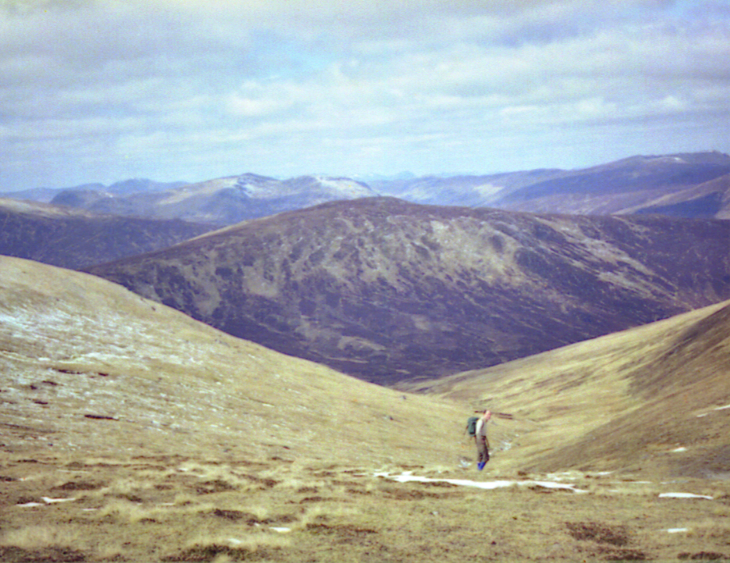 with Richard, Dave and Joyce in late May or early June, 1981. Walk in from Linn of Dee, camp at the junction of Glen Dee and Glen Geusachan, first day up Devil's Point and Cairn Toul (did we do Braeriach too?), second day might have been Beinn Bhrotain.