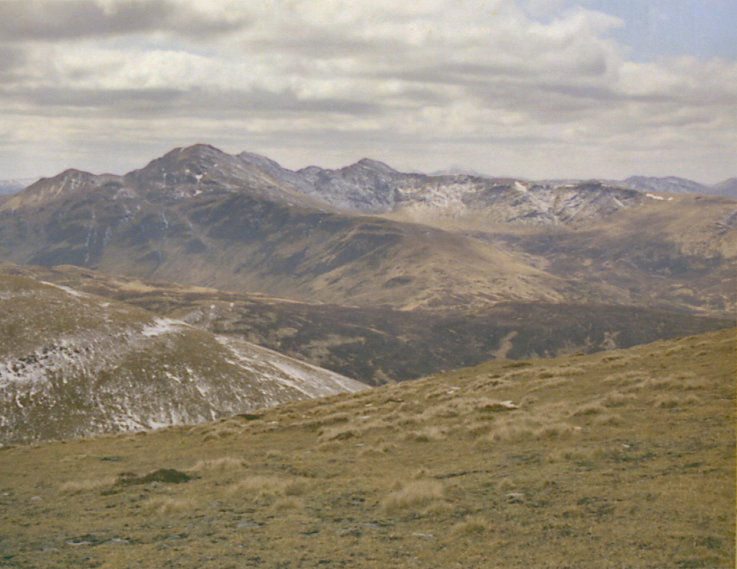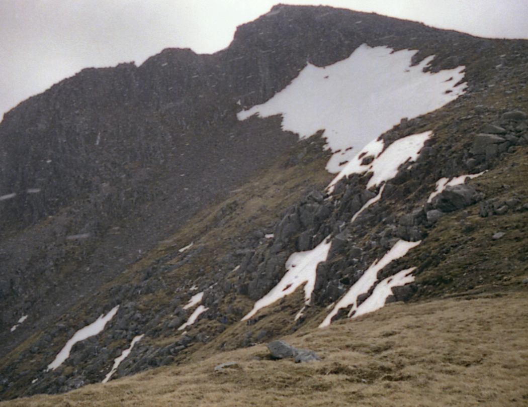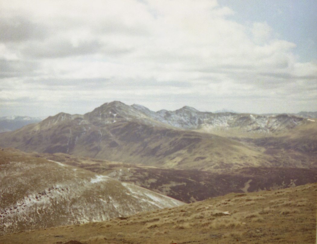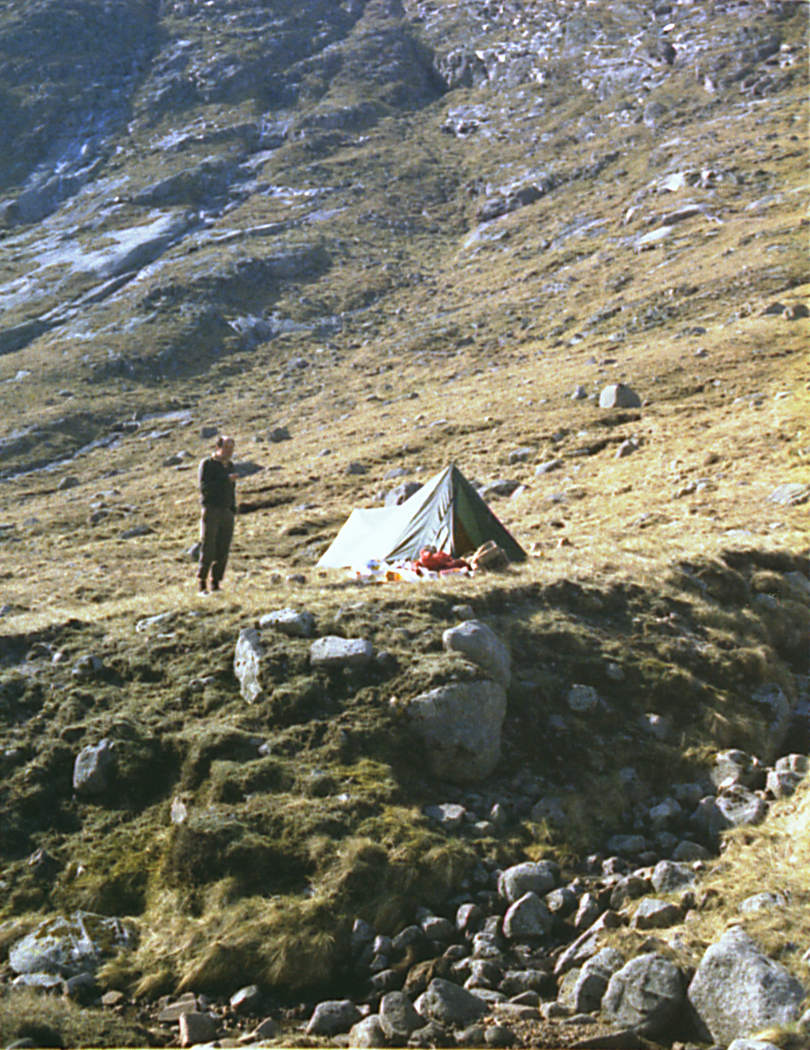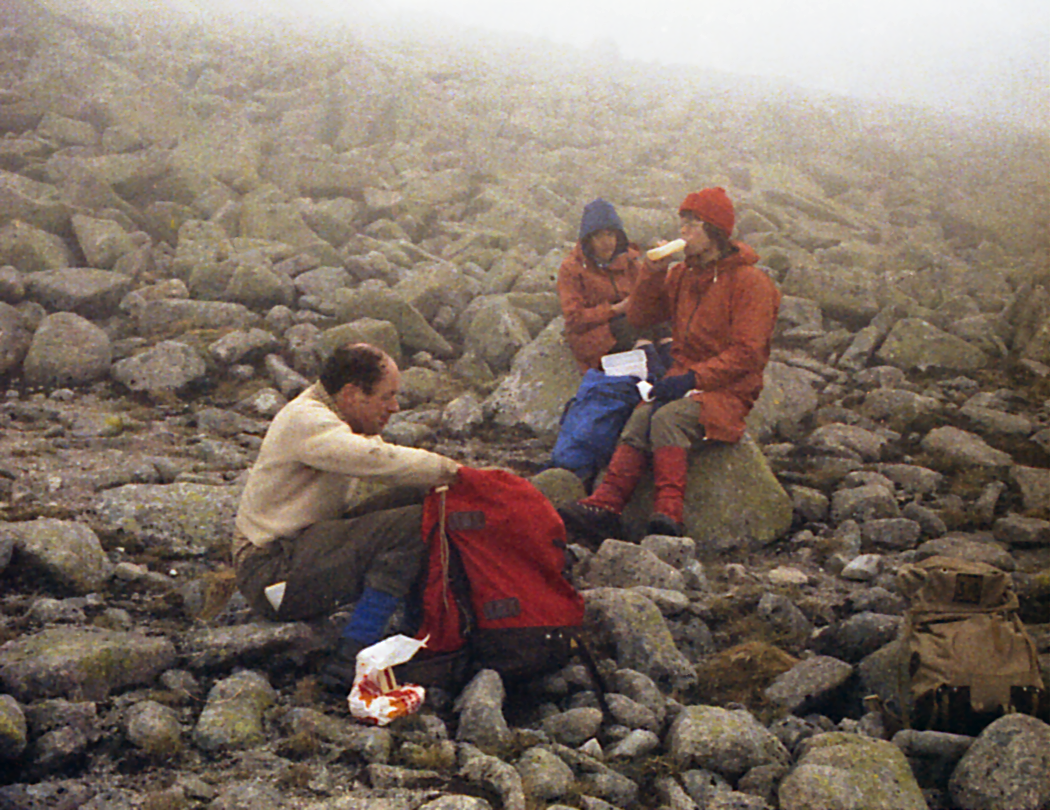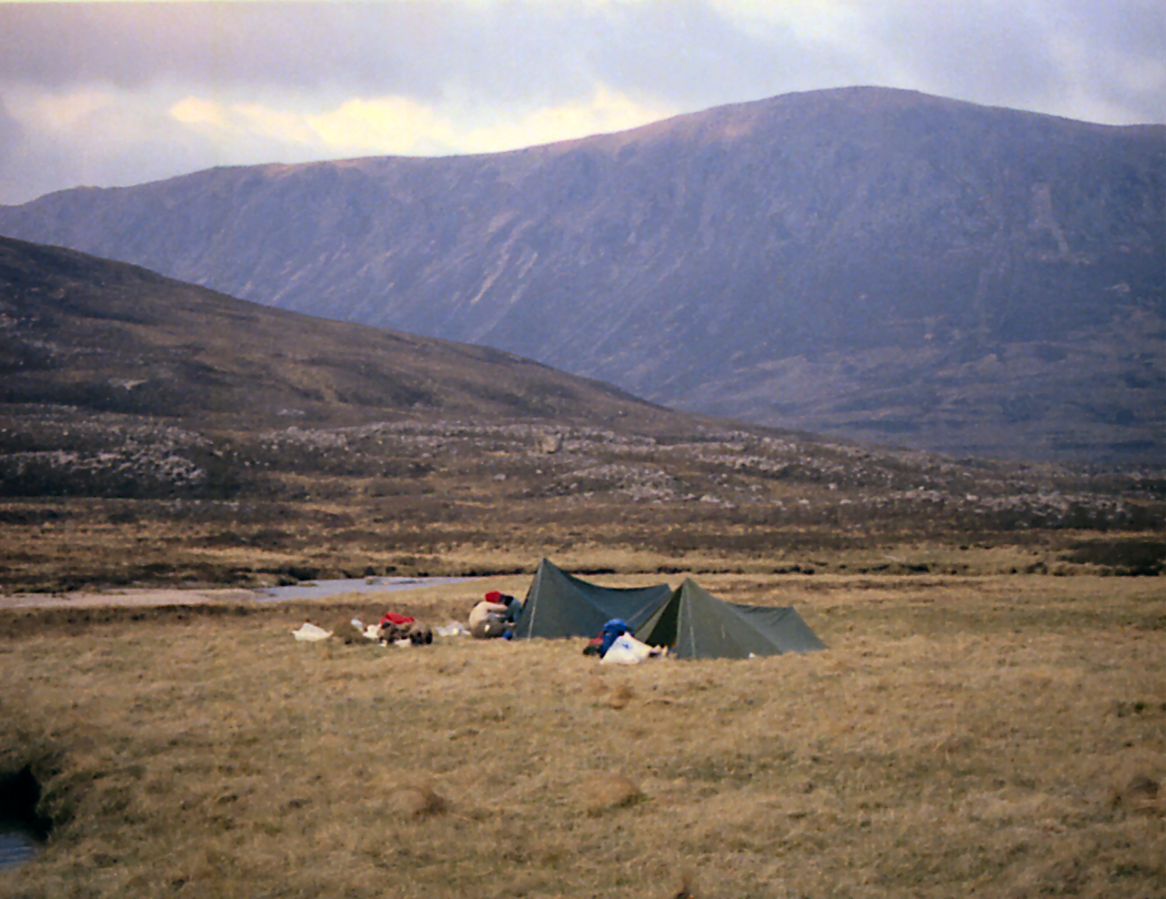 with Richard, Dave and Joyce in late May or early June, 1981. Walk in from Linn of Dee, camp at the junction of Glen Dee and Glen Geusachan, first day up Devil's Point and Cairn Toul (did we do Braeriach too?), second day might have been Beinn Bhrotain.