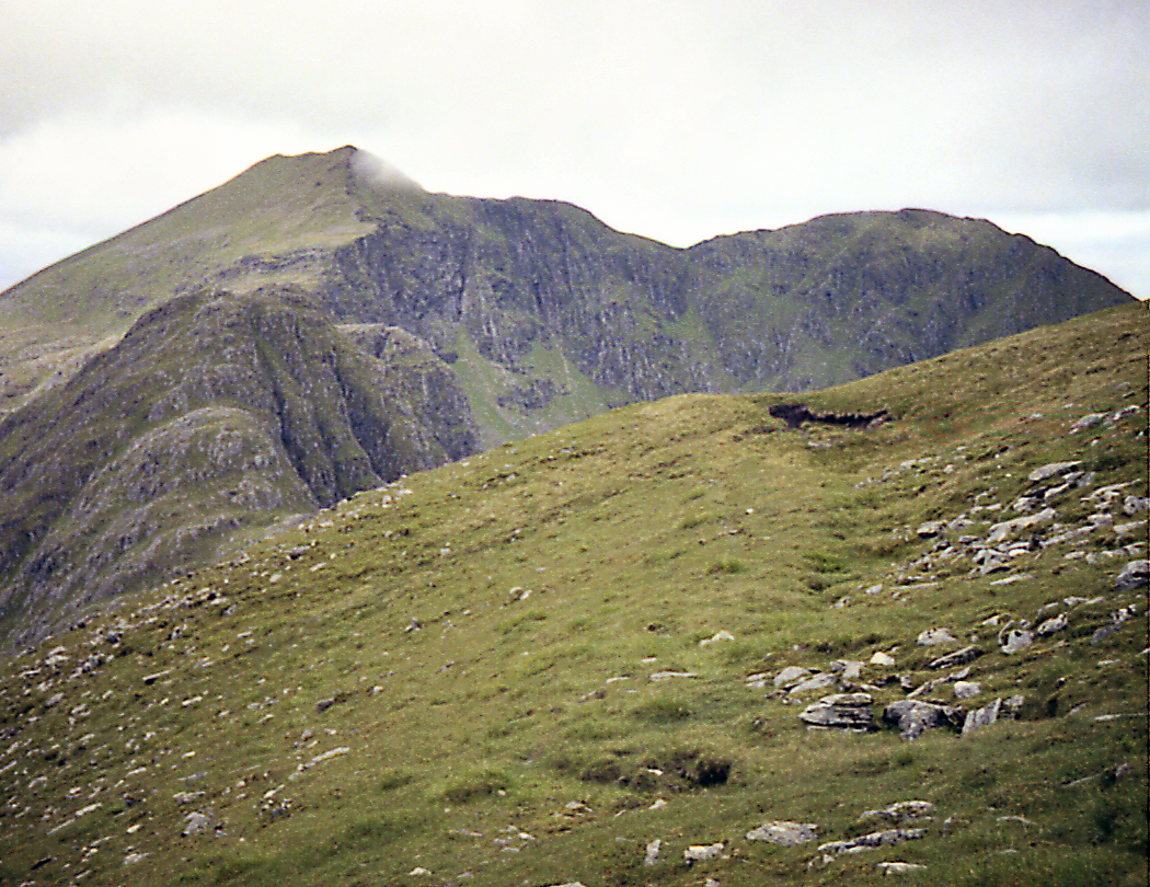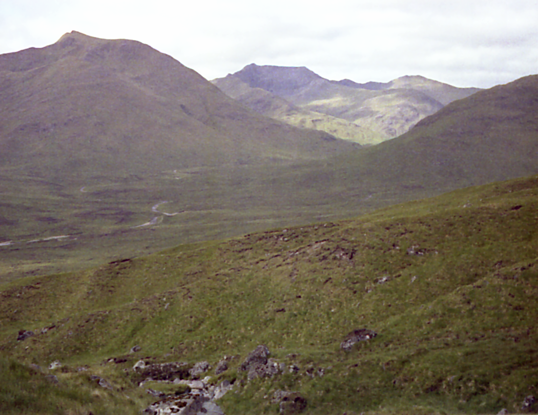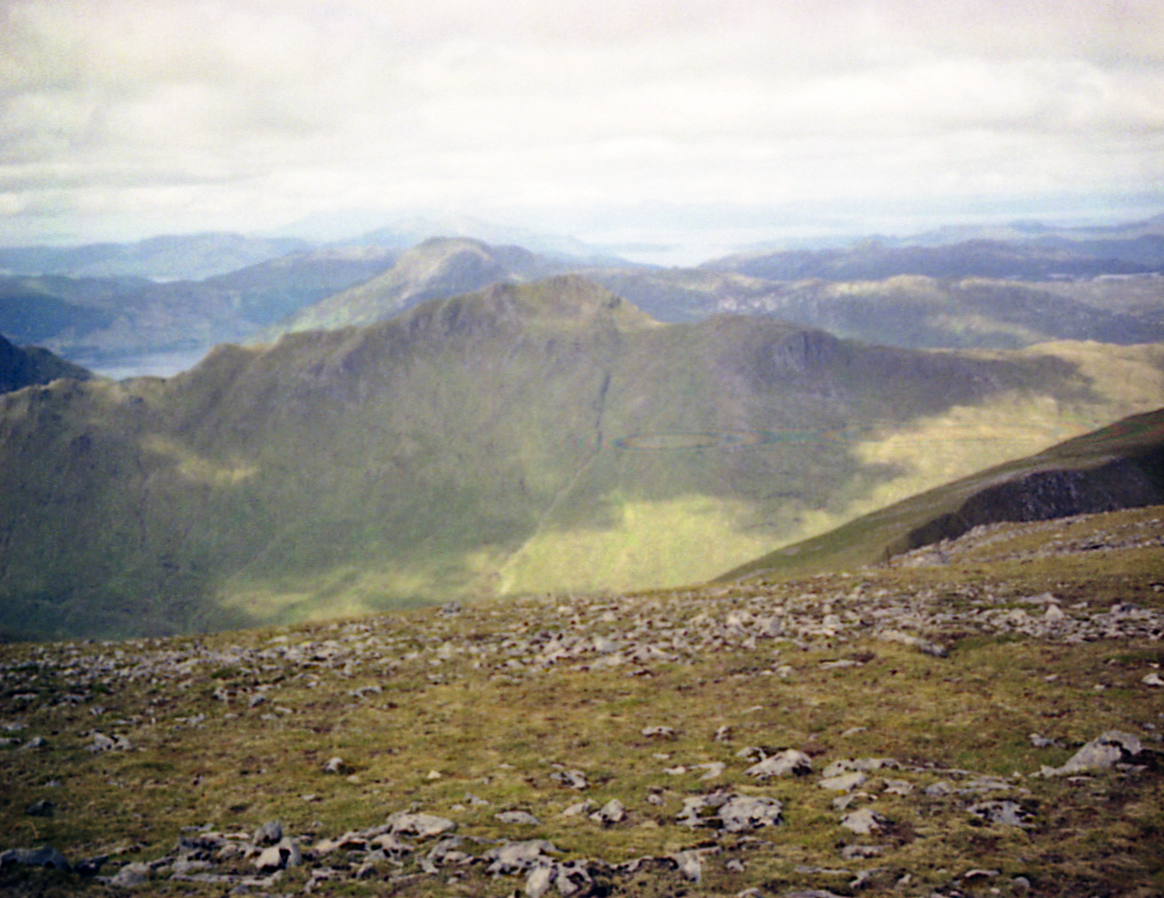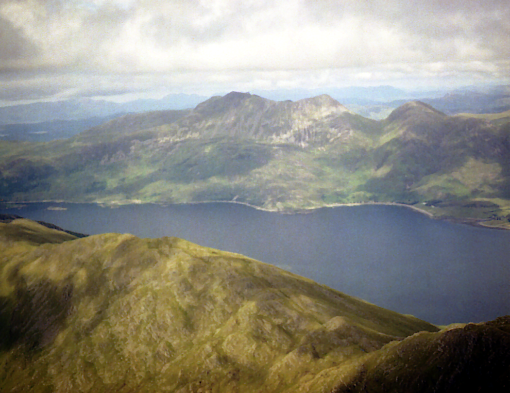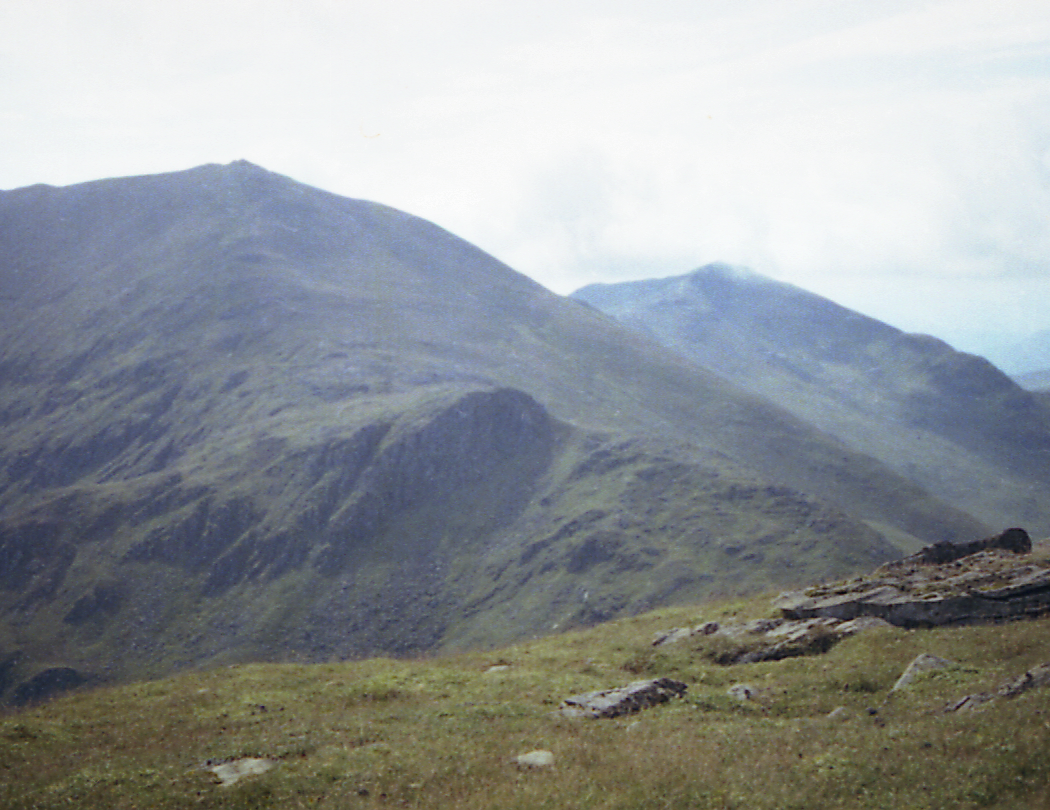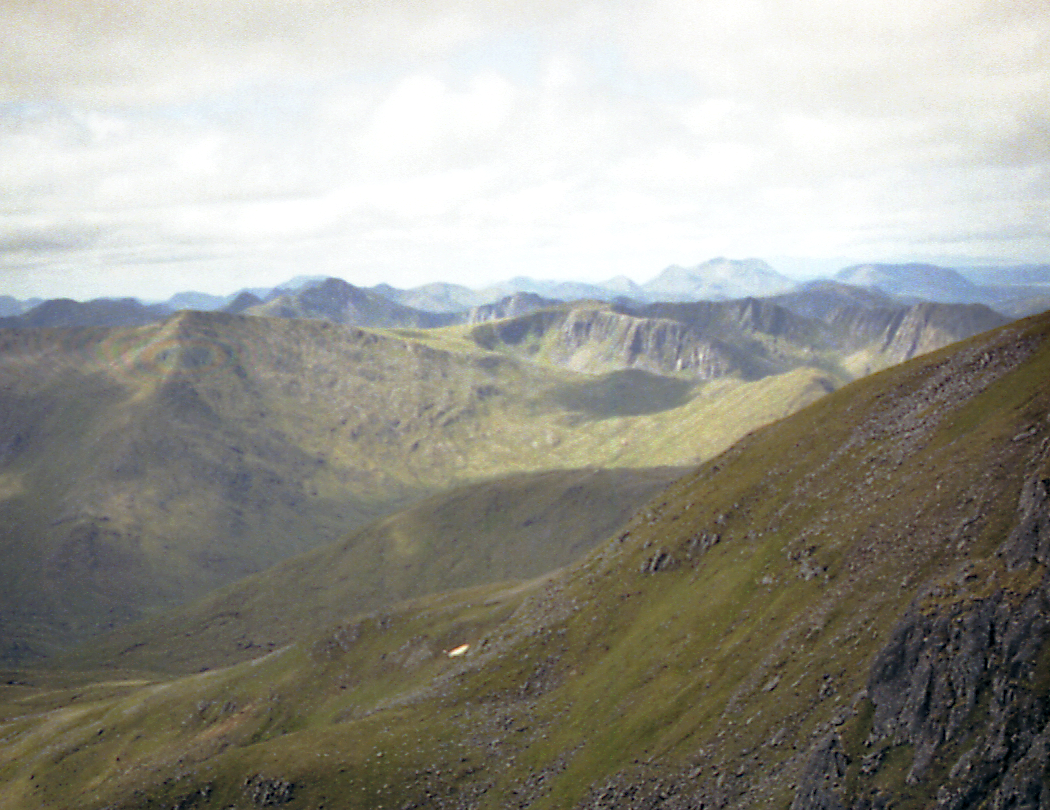 On Thursday, June 25, Dave, Joyce, Richard and I drove up to Loch Lochy YH for the night. Next day, we crossed Carn Ghluasaid, Sgurr nan Conbhairean and Tigh Mor na Seilge on way in to Glen Affric YH. On the Saturday, we climbed Sgurr nan Ceathreamhnan and Creag a'Choire Aird. On Sunday, we went over Ciste Dubh on the way out. Which picture is which hill I do not remember.