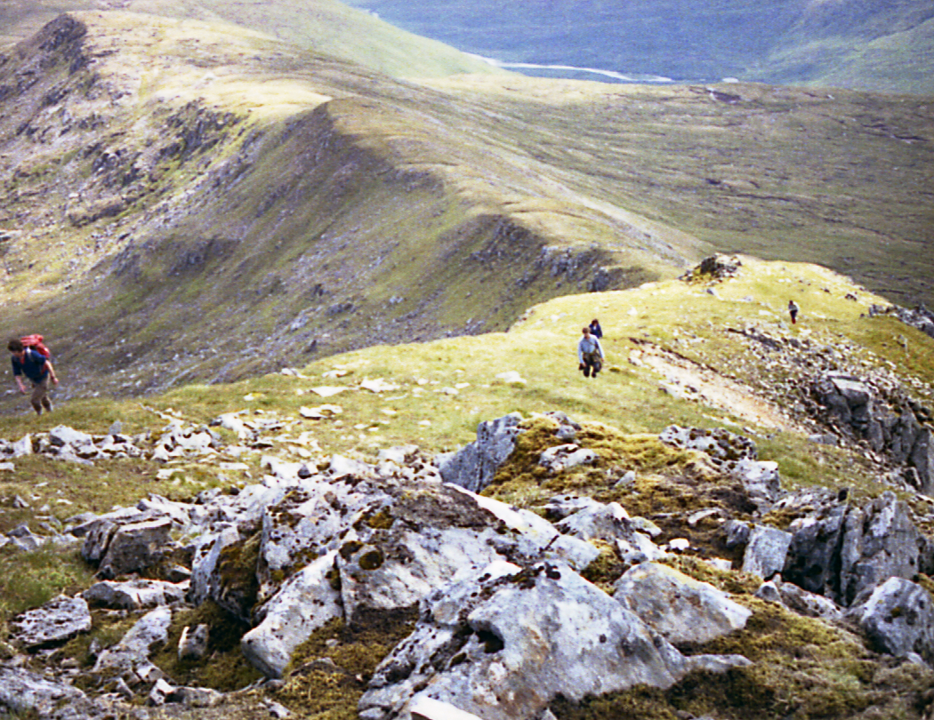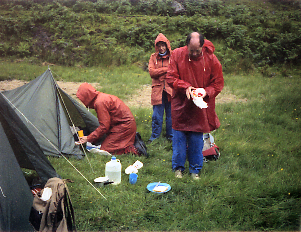 On Thursday, July 16, Dave, Joyce, Richard and I drove up to Glencoe YH for the night. Next day, we travelled on to Mallaig, took Bruce Watt's ferry into Inverie and camped by a lochan (which rose alarmingly on Sunday night). On Saturday, Ladhar Bheinn and on Sunday, Luinne Bheinn. Back to Dalkeith on Monday.